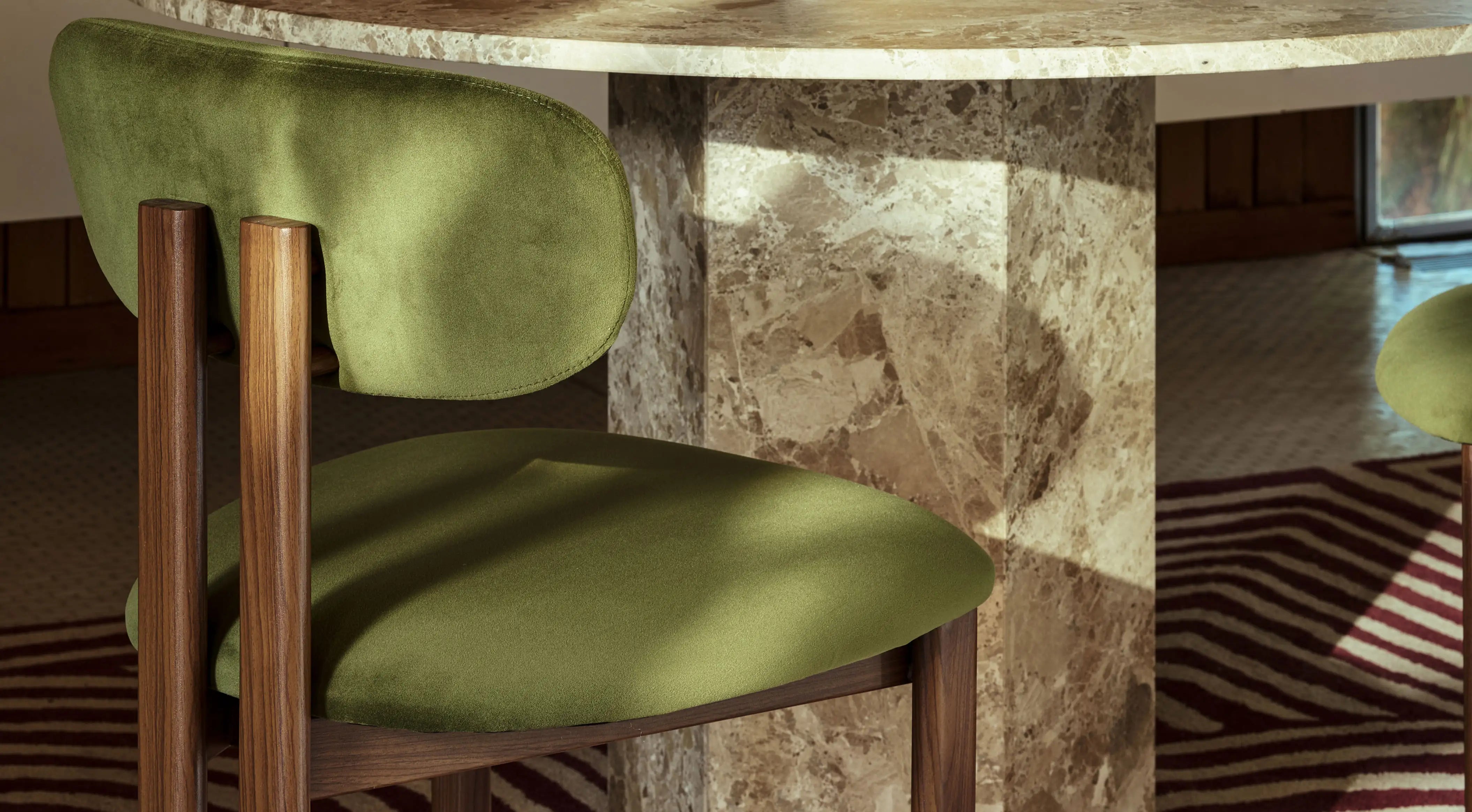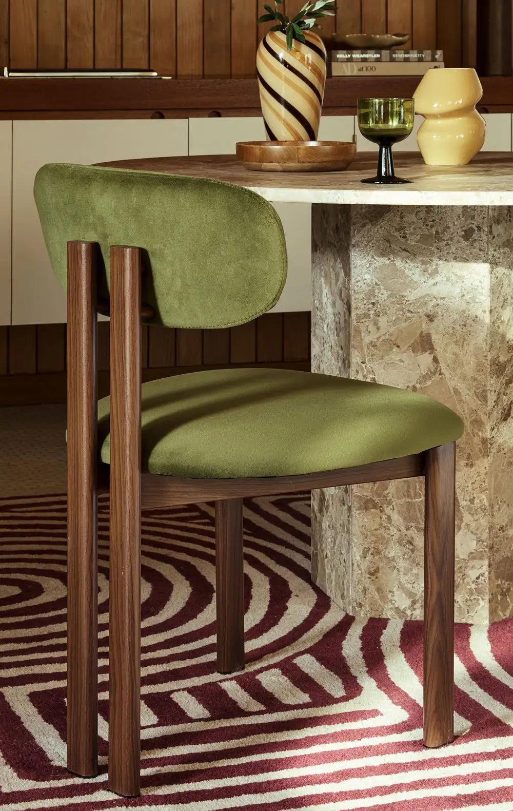 Olive Green Sustainable Velvet & Walnut