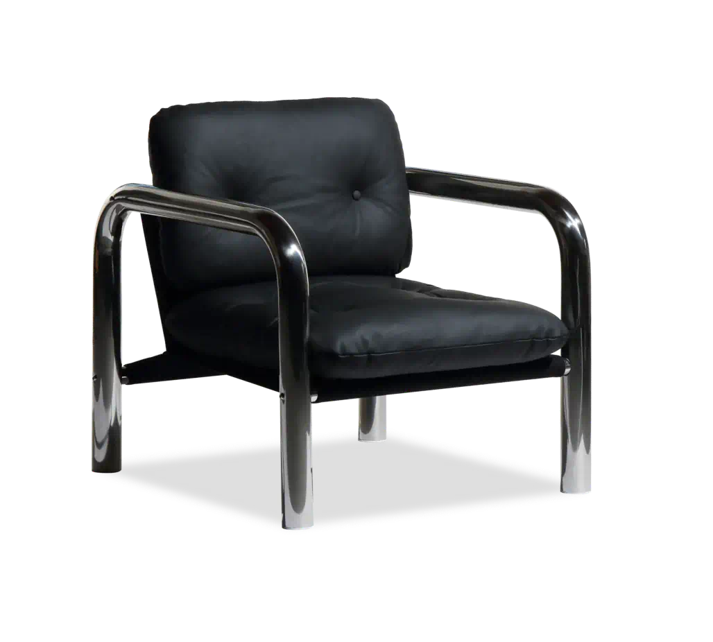 £795Introducing…The ultimate statement piece. For a laidback slouchy style, there's an undeniable retro feel to the Rudolph Leather Chair. Only the finest materials are used in 70’s inspired hand-crafted design from the polished stainless steel frame to semi-aniline leather upholstery.