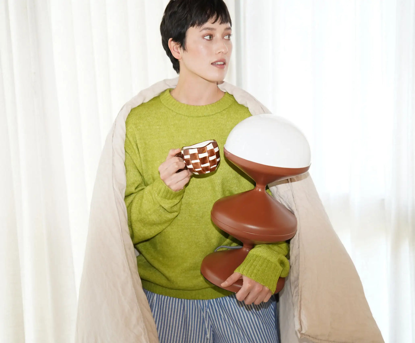 For Studio 54 Style, look no further than the Brandon Lighting Range. It's playful waved base in a matte rust red makes for a true statement piece, oozing 60s style. With curved opaque shade and a dimmer switch, you can easily set the mood in style...