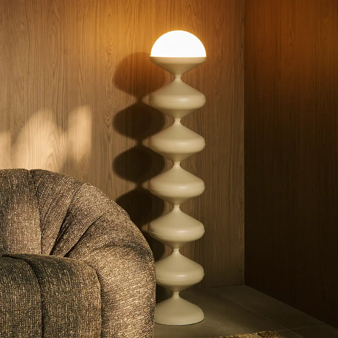 For Studio 54 Style, look no further than the Brandon Lighting Range. That dynamic wave base in a matte taupe makes for a true statement piece, oozing 60s style. With a curved opaque shade and a dimmer switch, you can easily set the mood with this striking floor lamp.