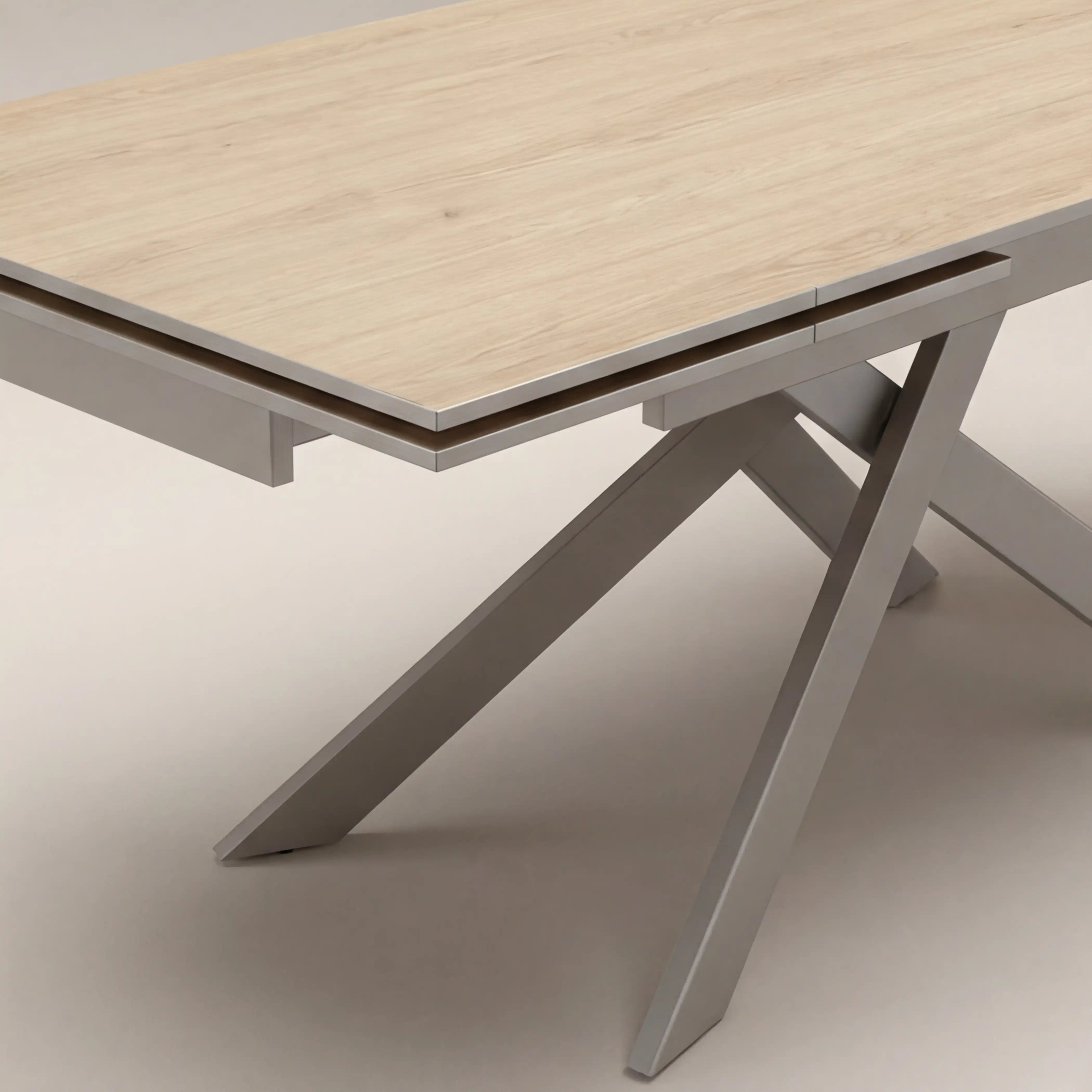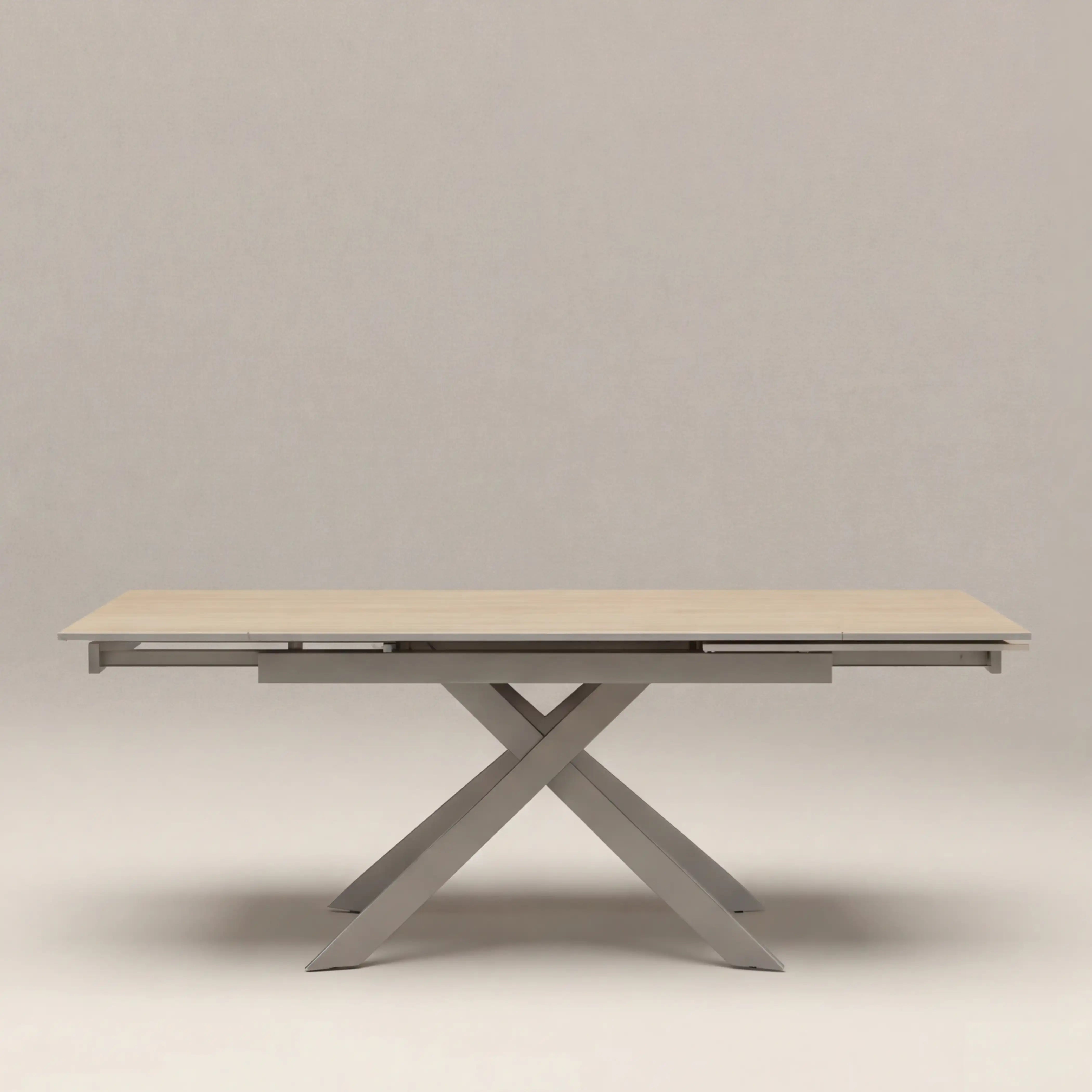 The Adele 6 Seater Extending Dining Table is Industrial Design Excellence. The sintered stone top has a travertine style effect, and is temperature resistant, stainproof and non-porous for the ultimate low-maintenance industrial dining table. It is also easily extendable from 6-10 people with pull out mechanism on each end. Meanwhile, the starburst legs offer stability and ample legroom whilst incorporating a sculptural element to the proceedings. A stone dining table that blends minimalist ideas with refined premium materials, making for a striking piece at the centre of any dining room.
