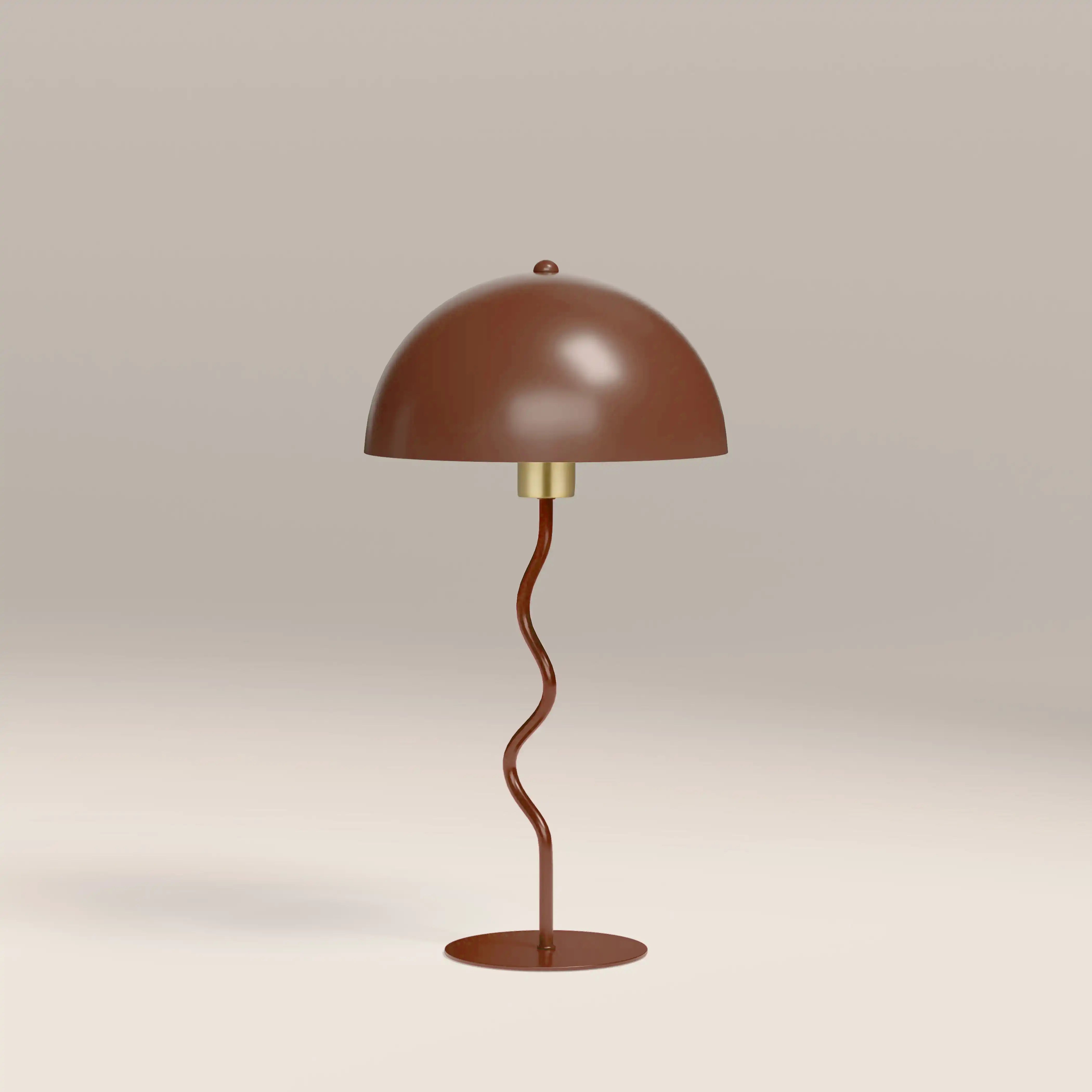 Let your lighting do the talking - the Alani Lamp is modern and fresh with refined details. In a versatile rust red finish made from durable iron, the large domed shade diffuses soft lighting perfectly. For further modernist vibes, the wavy stem and hint of brass accent offer subtle nods to modernist design. This metal table lamp is ideal for contemporary bedrooms and living rooms looking for an instant uplift. With dimmer switch and black and white zig-zag cord.