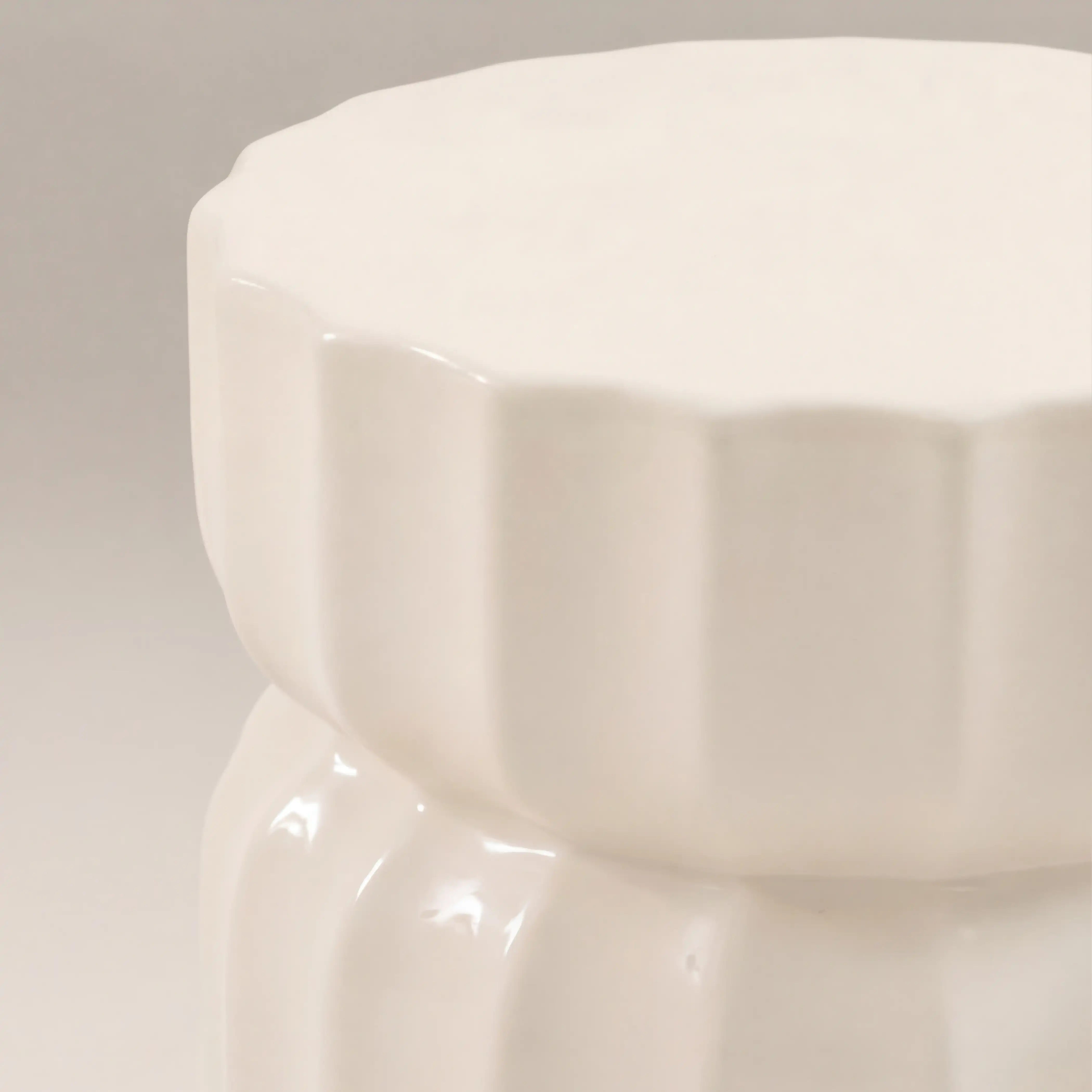Designed to stand out, the Amara Cream Side Table brings bold style to any space, from living rooms to patios. A sculptural ridge pattern, sectioned top, and porcelain cream glazed finish give it striking texture and depth—perfect for adding character to a contemporary interior.