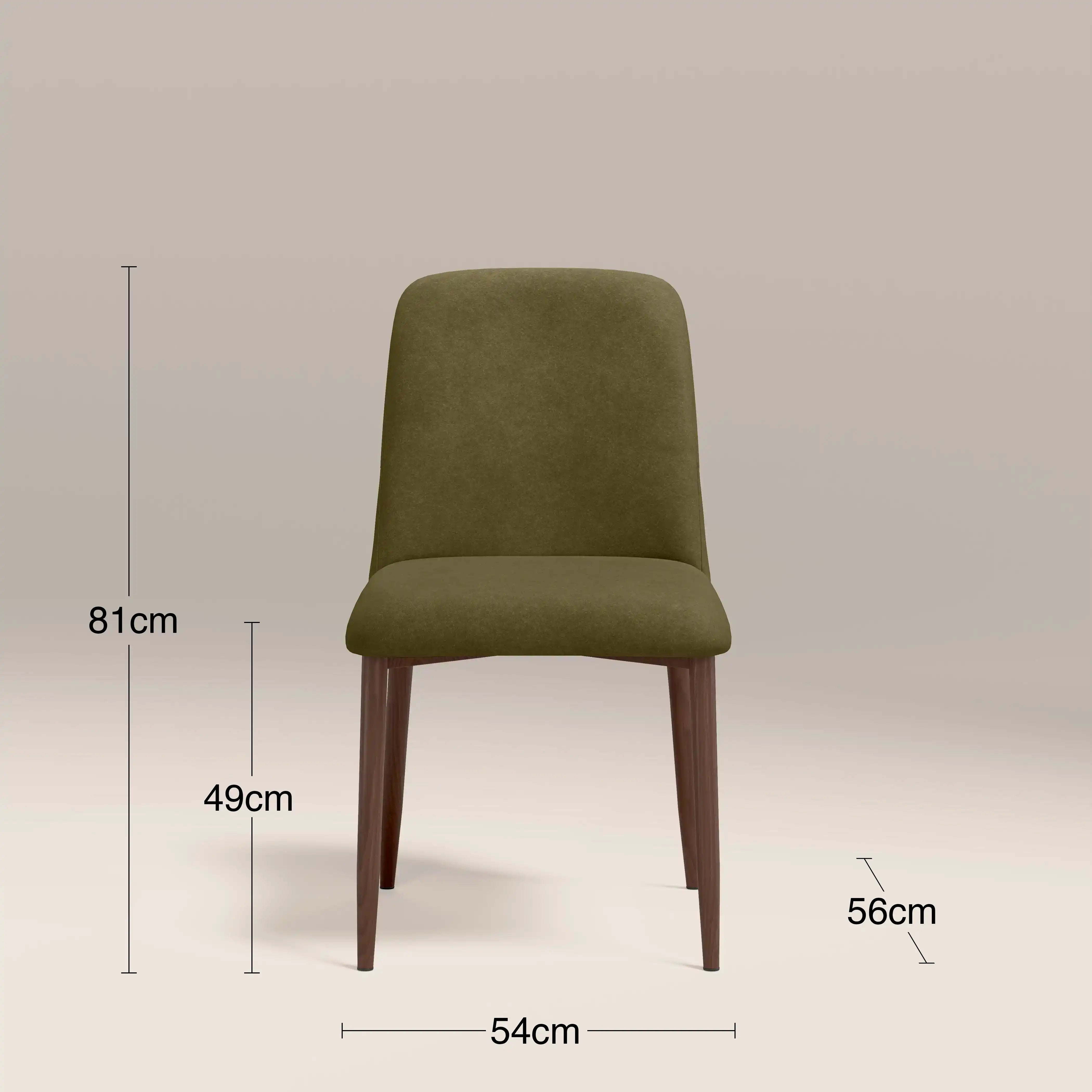The Amari Dining Chair blends simplicity and elegance with a contemporary edge. Featuring a soft mohair velvet in our signature moss green for a luxurious yet understated look, this chair combines comfort with a sophisticated design. An ideal addition to both casual and formal settings, the durable metal legs in a walnut wood finish provide a sturdy foundation while complementing the chair's modern chic style.