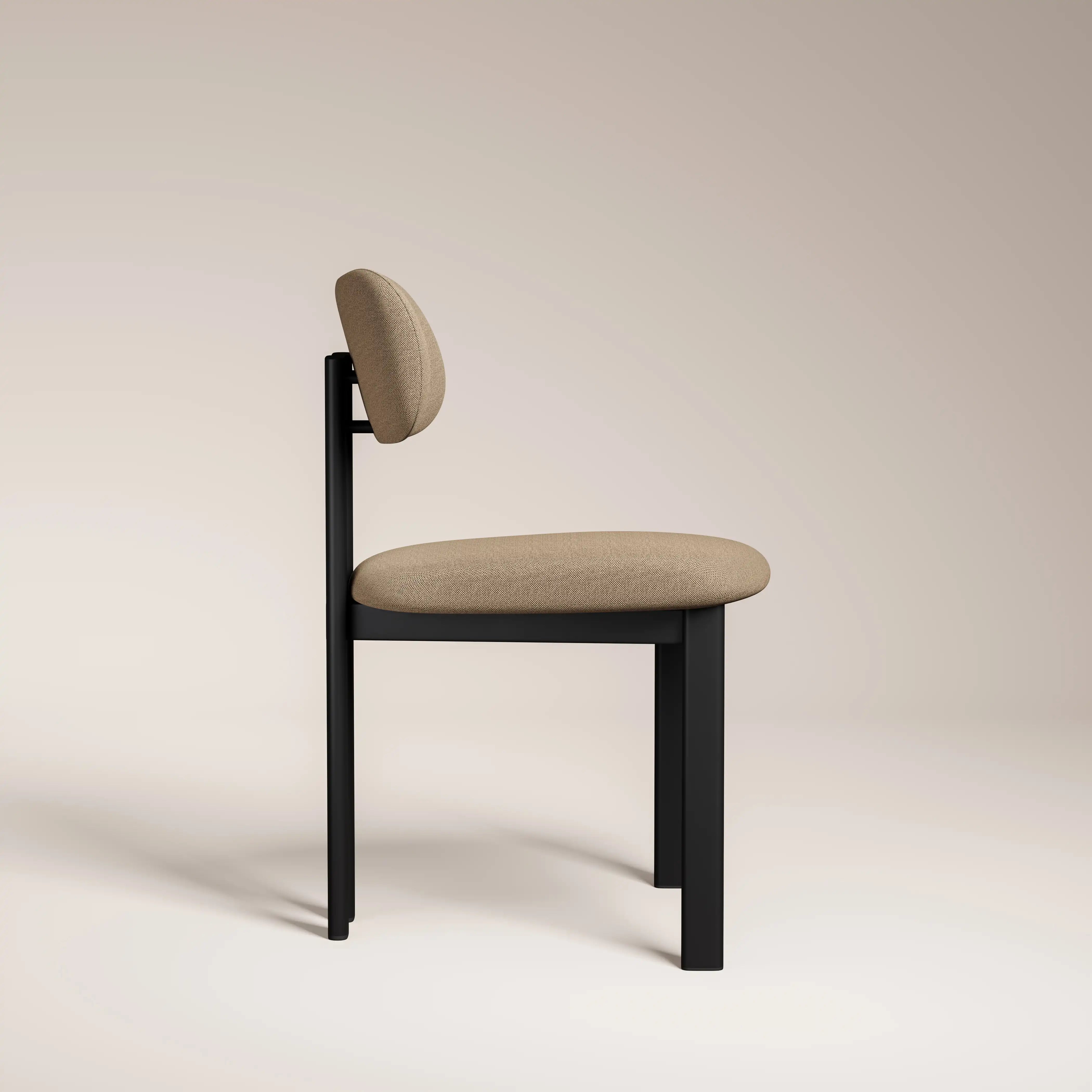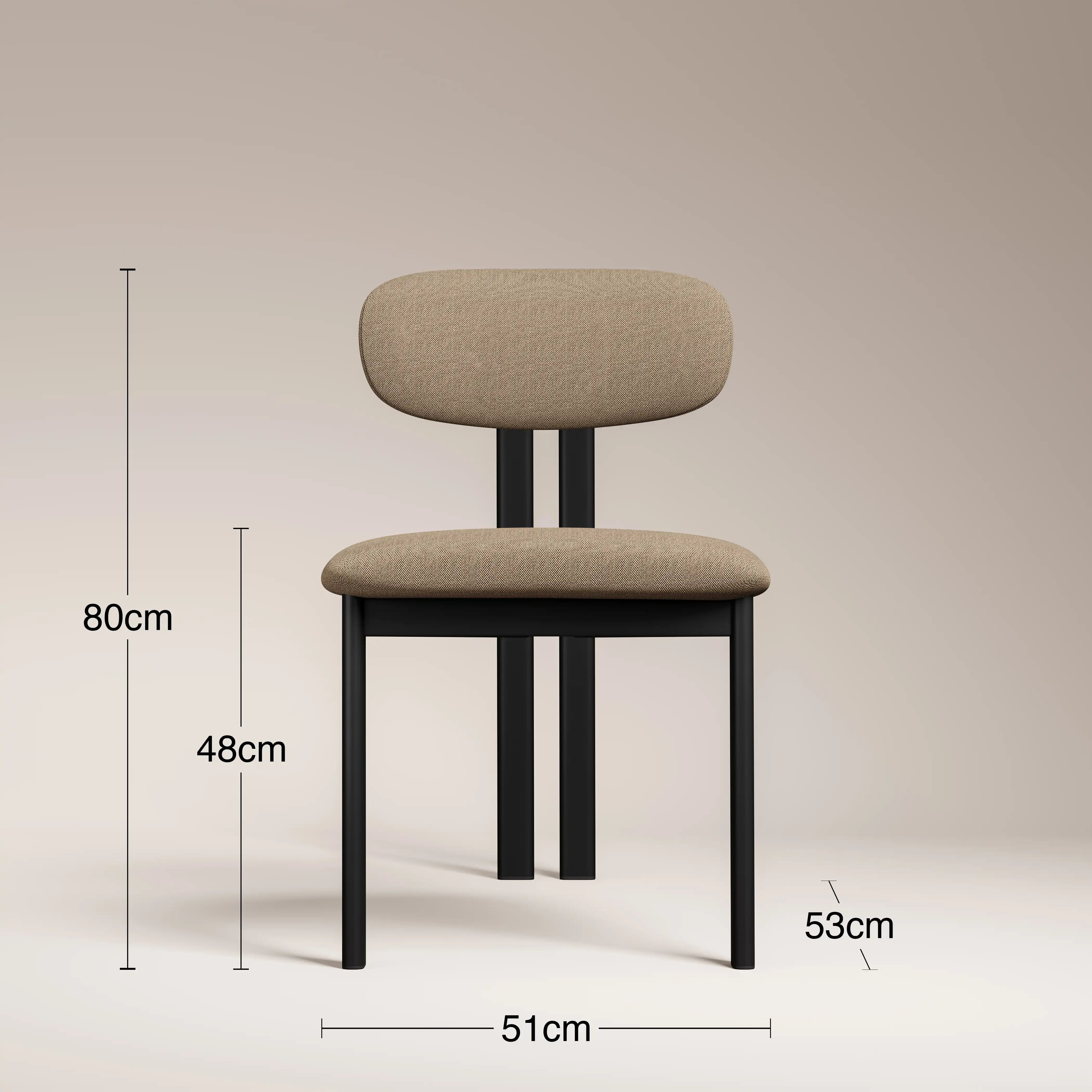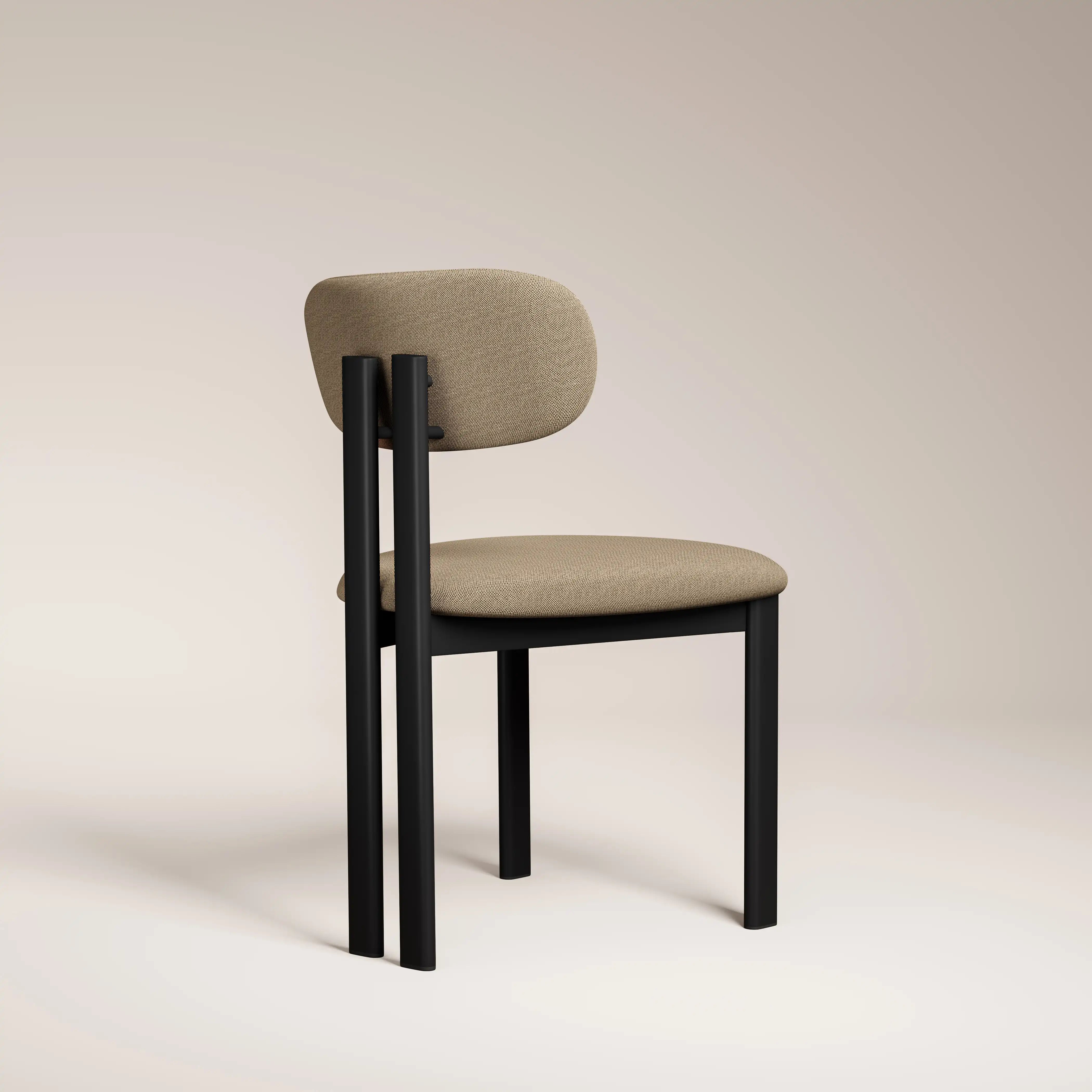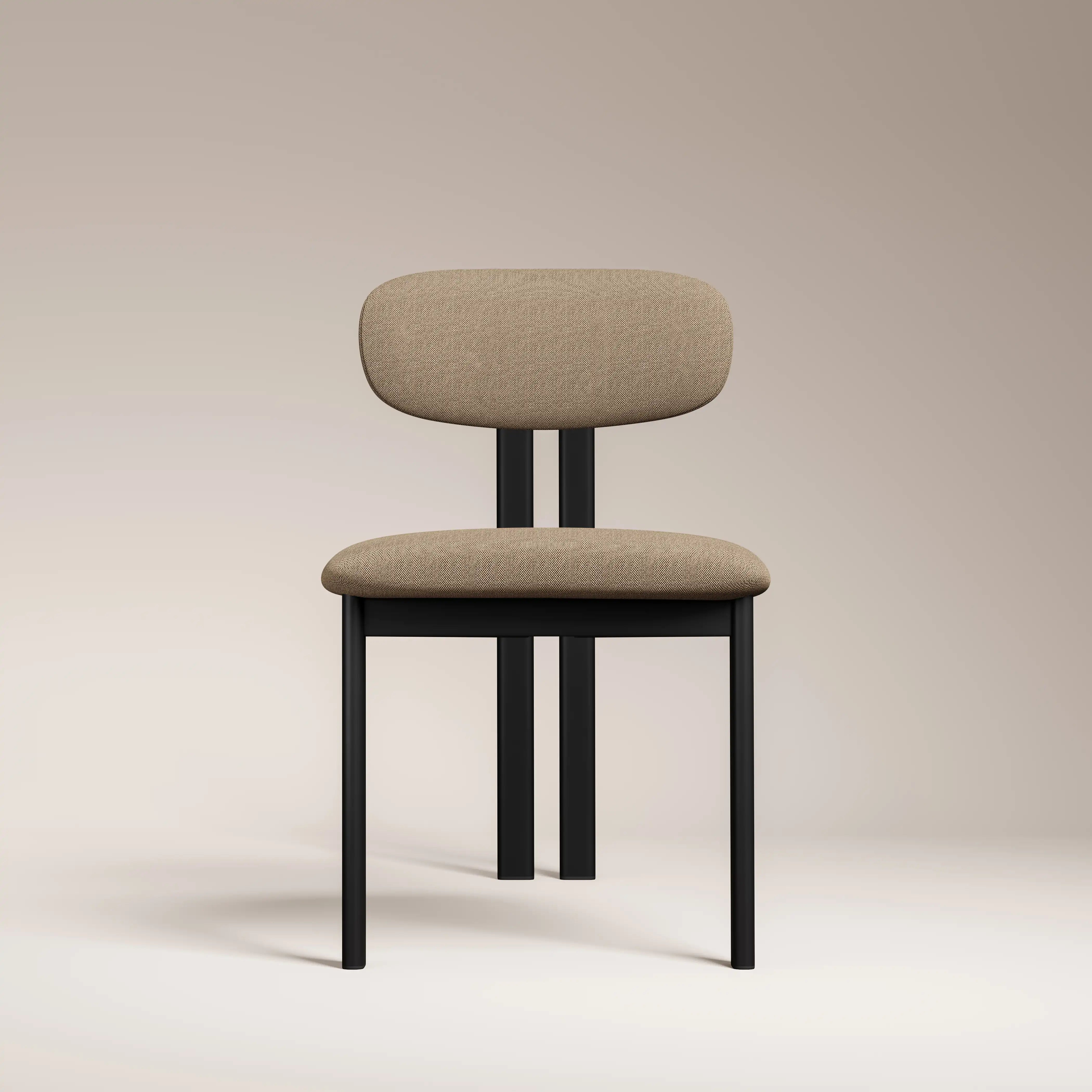 The Arbor Dining Chair mixes strong functional design with Luxe 70s Revival. Crafted from soft latte fabric and a sleek black metal frame, these contrasting materials give retro-sque style. Match your Arbor chairs perfectly with dark wood dining tables and abstract curved accessories for that completed 70s luxe vibe.