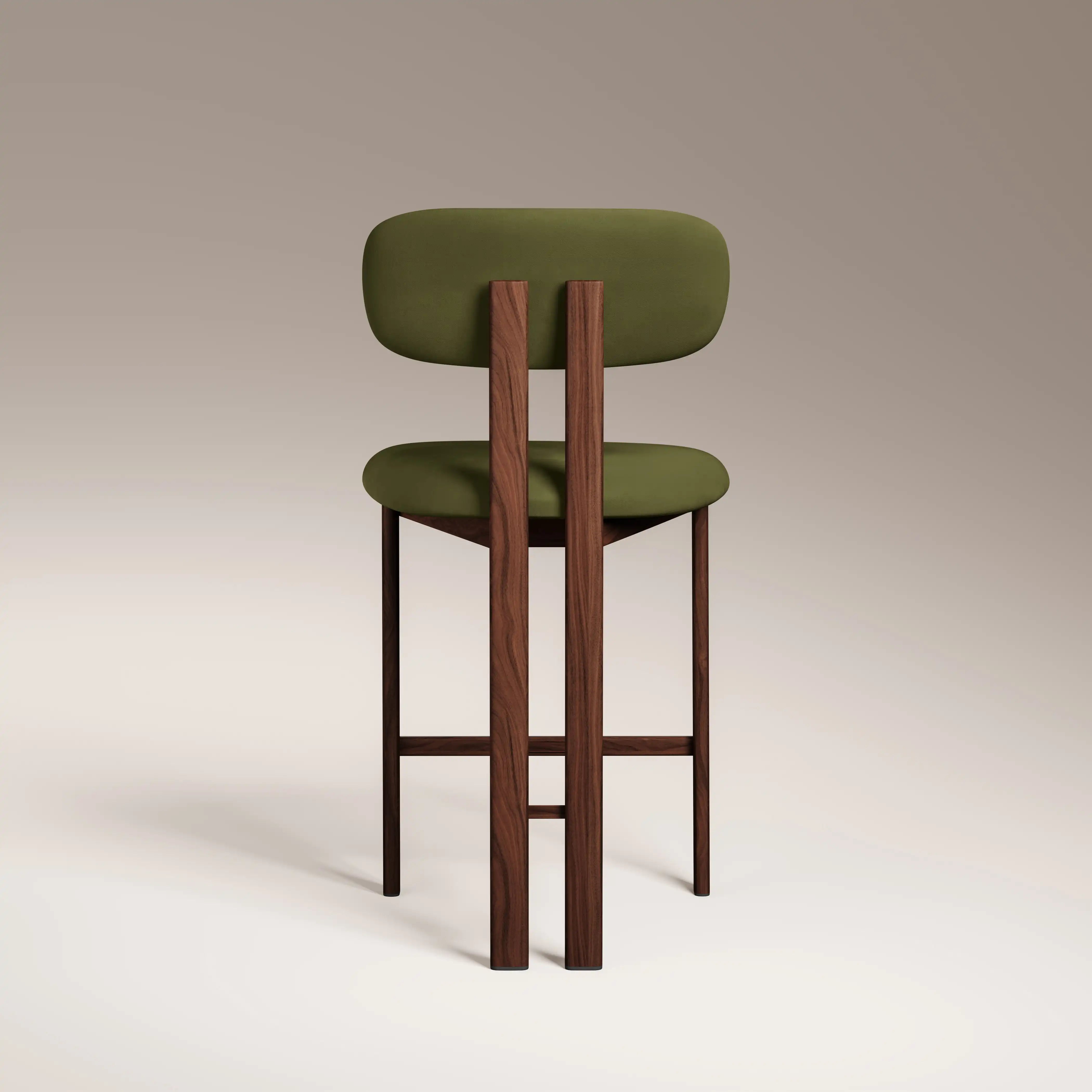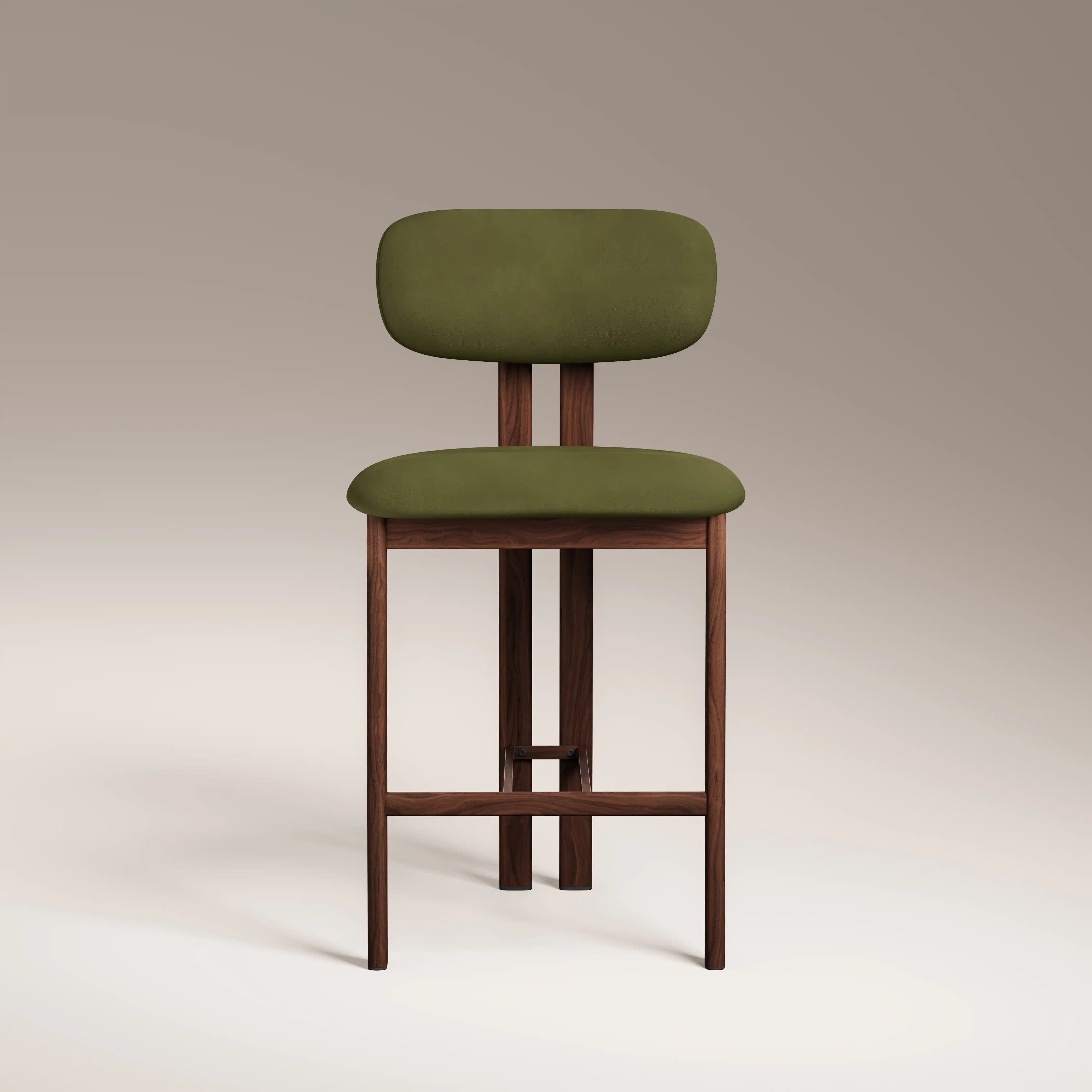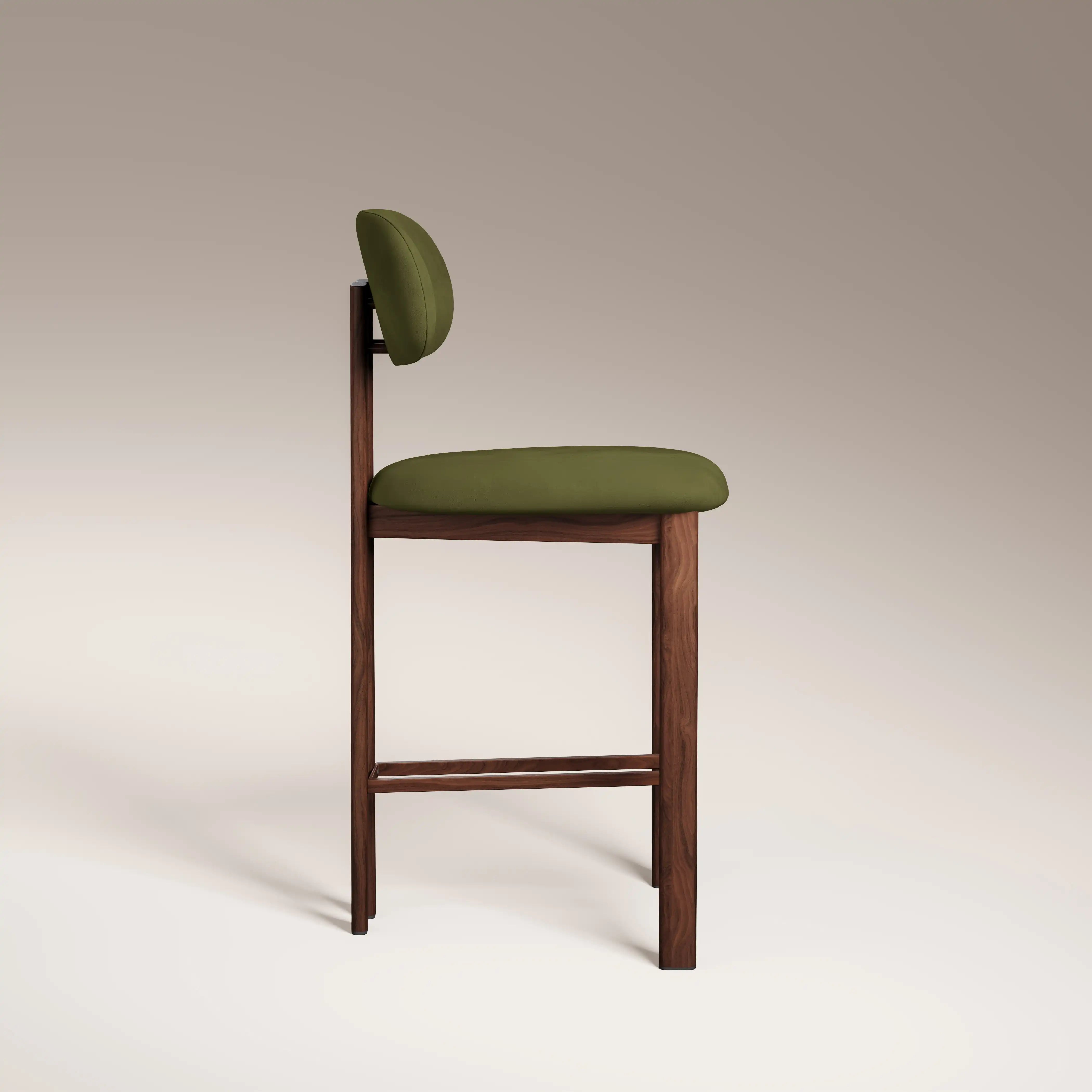 The Arbor Kitchen Stool mixes strong functional design with Luxe 70s Revival. Crafted from soft olive green velvet and a sleek walnut effect metal frame, these contrasting materials give retro-sque style. Match your Arbor stools perfectly with rich dark wood tables and curved accessories for that completed 70s luxe vibe.