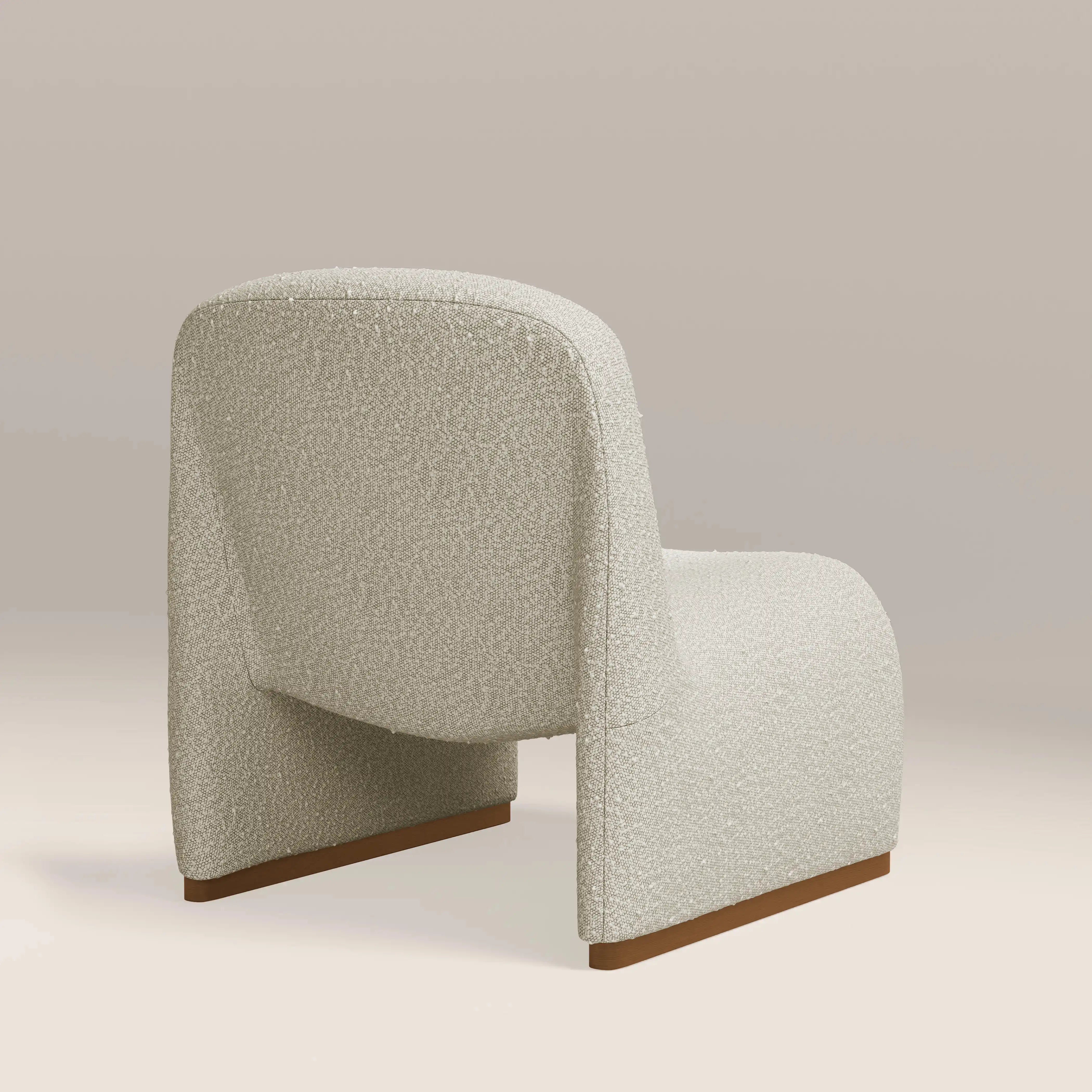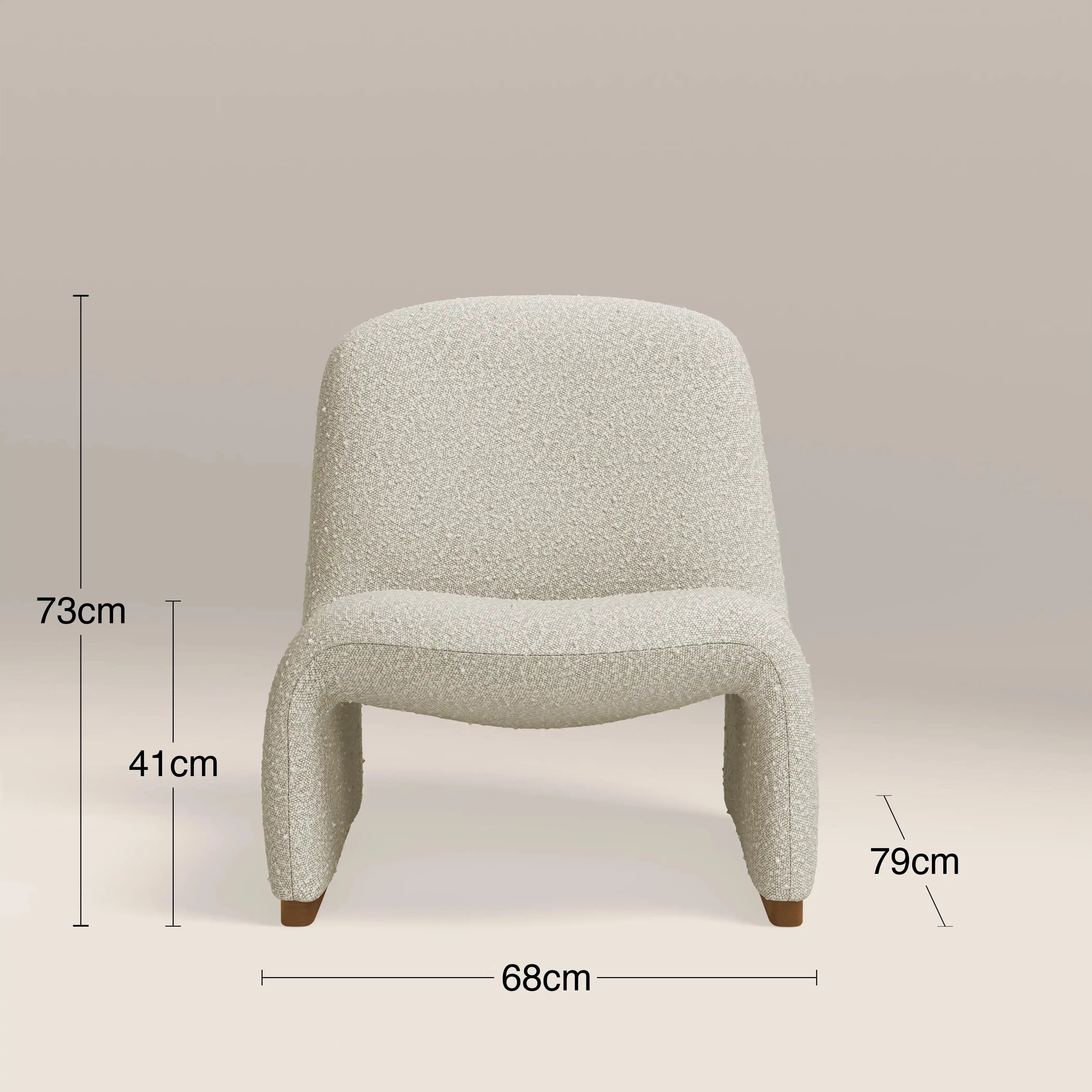 Just look at the Arlet. This Accent Chair in textural speckled stone invokes that classic Italian Mid-Century design with a blend of simplicity and elegance. A contemporary seat that is upholstered in soft sustainable boucle with dark wood accents around the base for that elevated feel. With a smooth dipped seat and all-over curves giving 1960s/1970s vibes, this occasional chair is the ideal standalone piece for living rooms and bedrooms.
