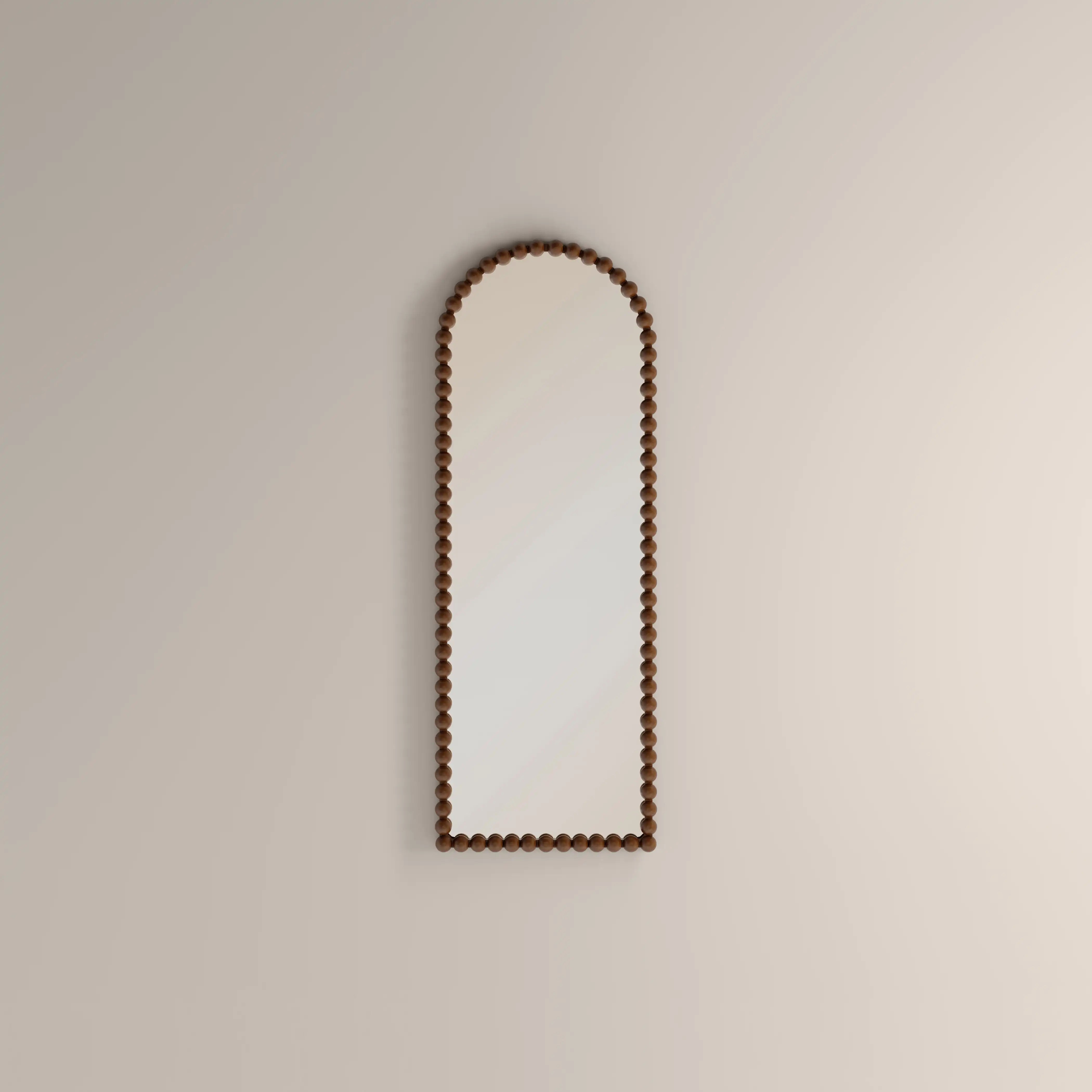 Add charm to any room with the Ashby Full Length Mirror and its bobbin-inspired design. Featuring a rich walnut-stained finish frame, this mirror exudes warmth and elegance, while the unique ball accents around the frame bring a playful yet refined style. Ideal for entryways, living rooms, or bedrooms, this mirror serves as both a functional and stylish focal point in your home.