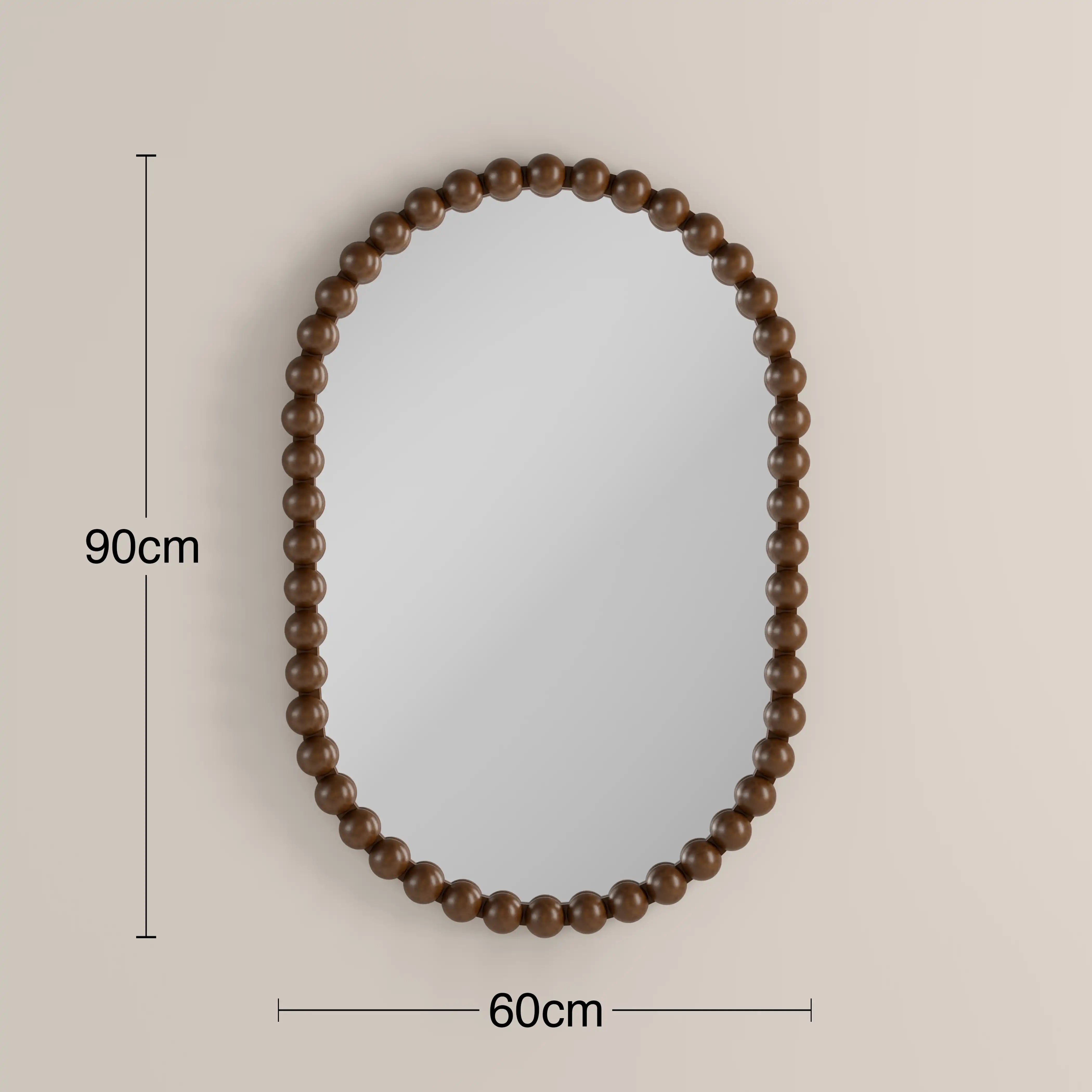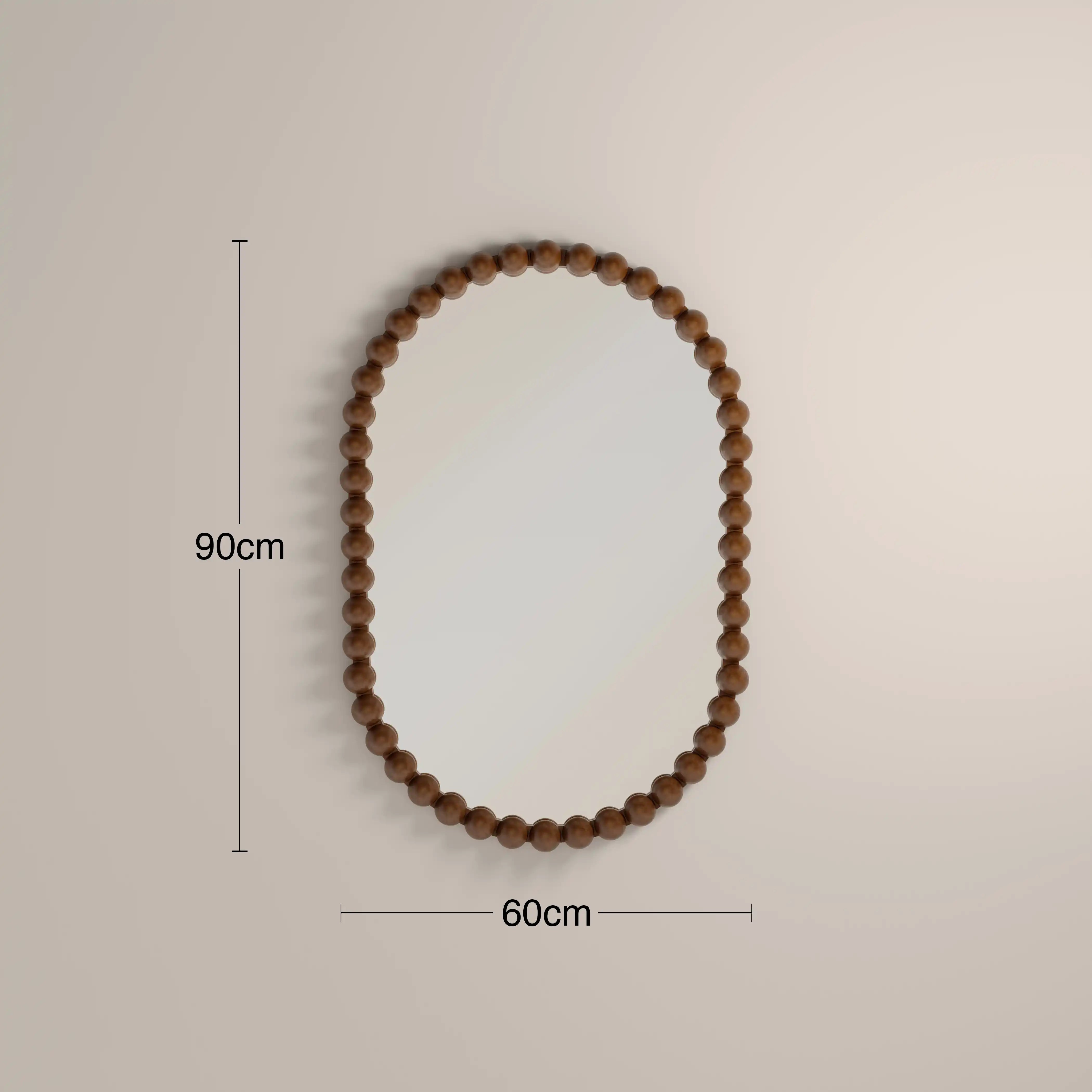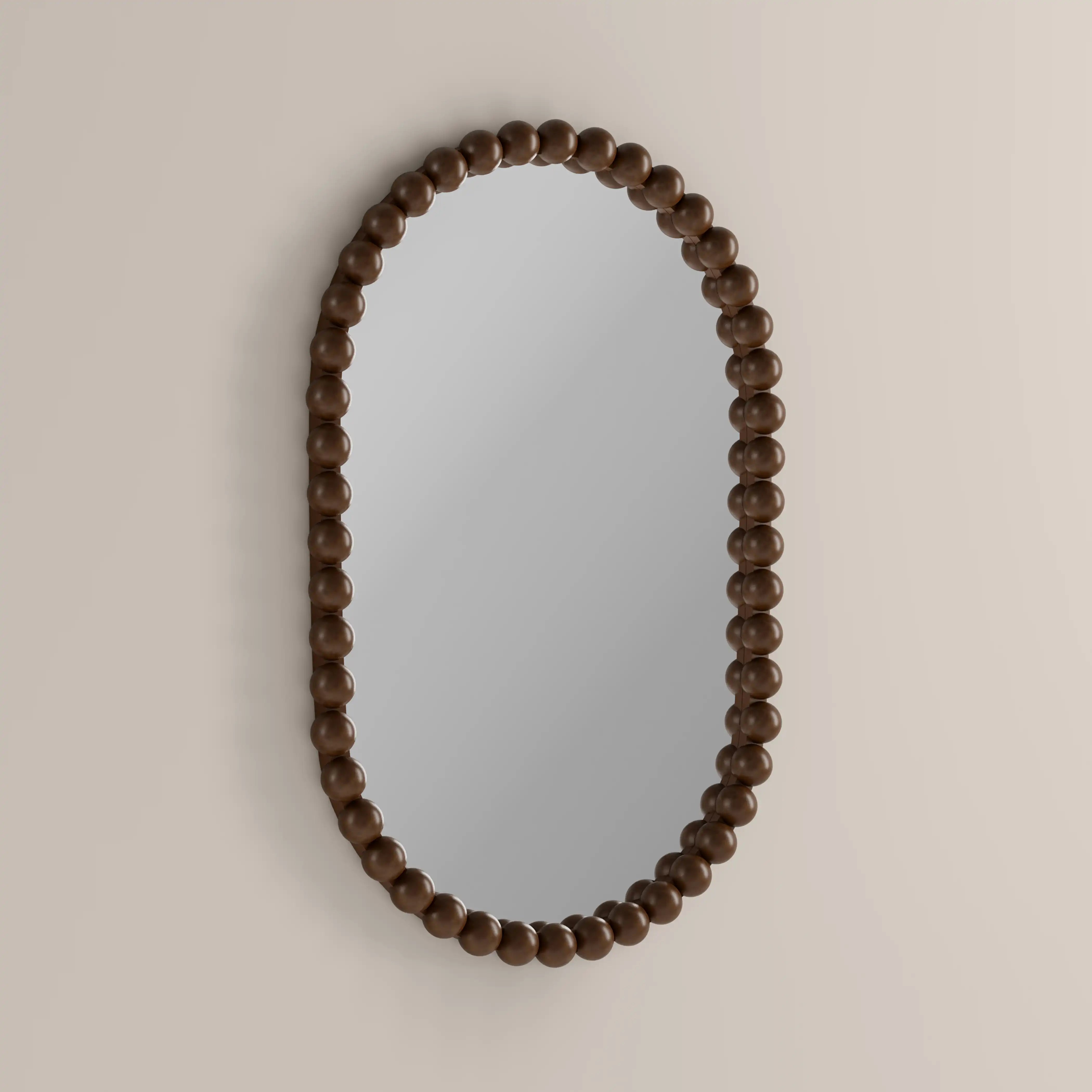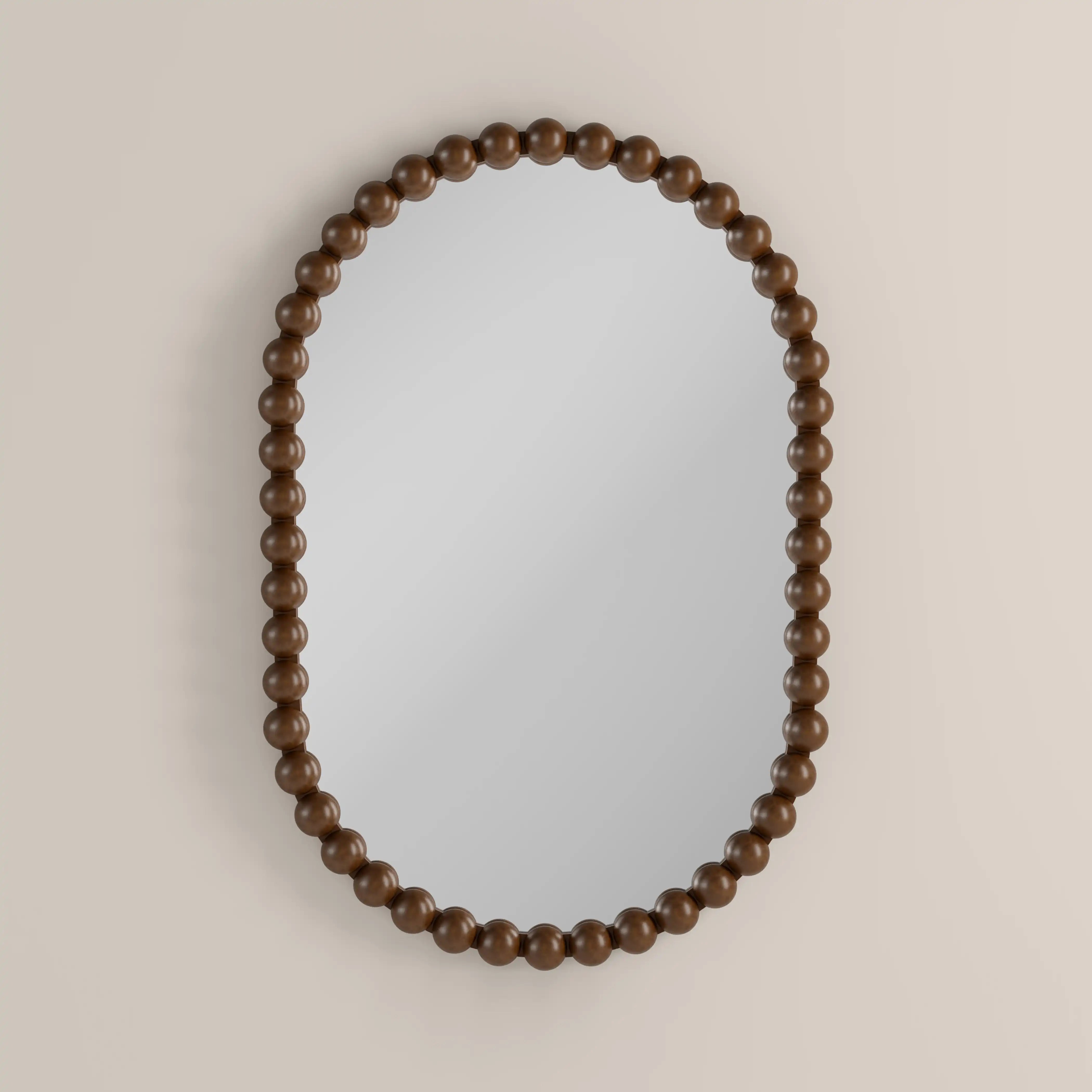 Add charm to any room with the Ashby Oval Wall Mirror and its bobbin-inspired design. Featuring a rich walnut-stained finish frame, this mirror exudes warmth and elegance, while the unique ball accents around the frame bring a playful yet refined style. Ideal for entryways, living rooms, or bedrooms, this mirror serves as both a functional and stylish focal point in your home.