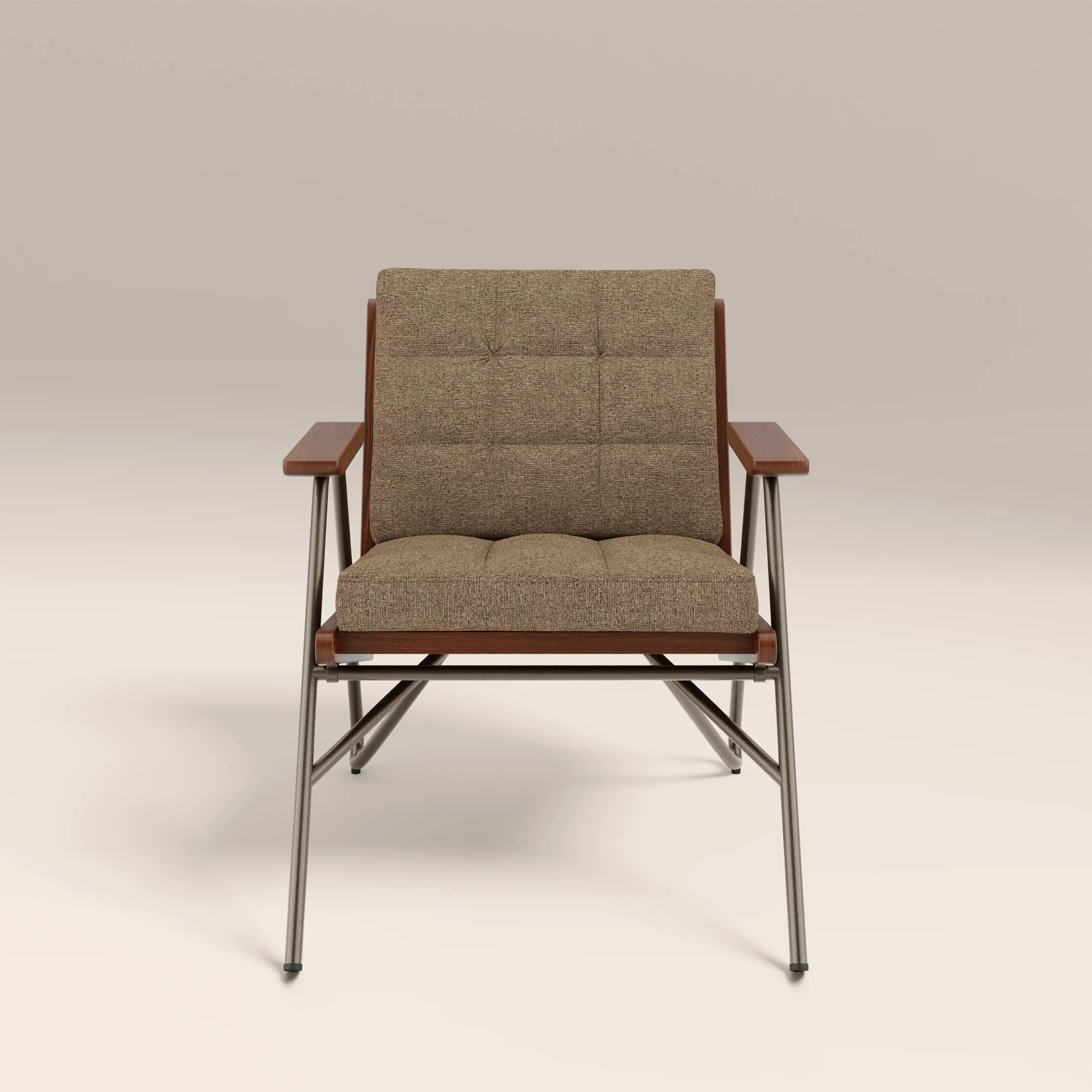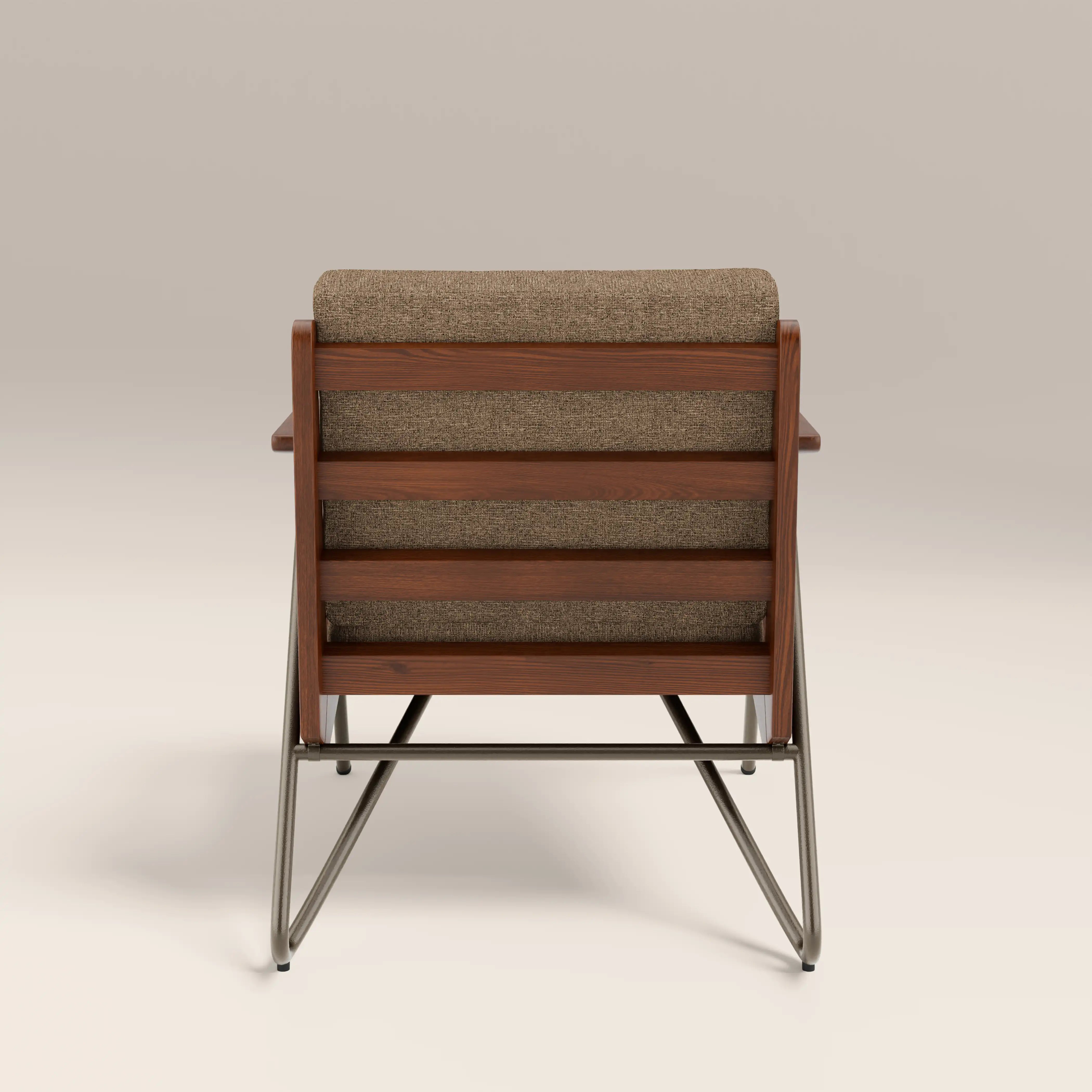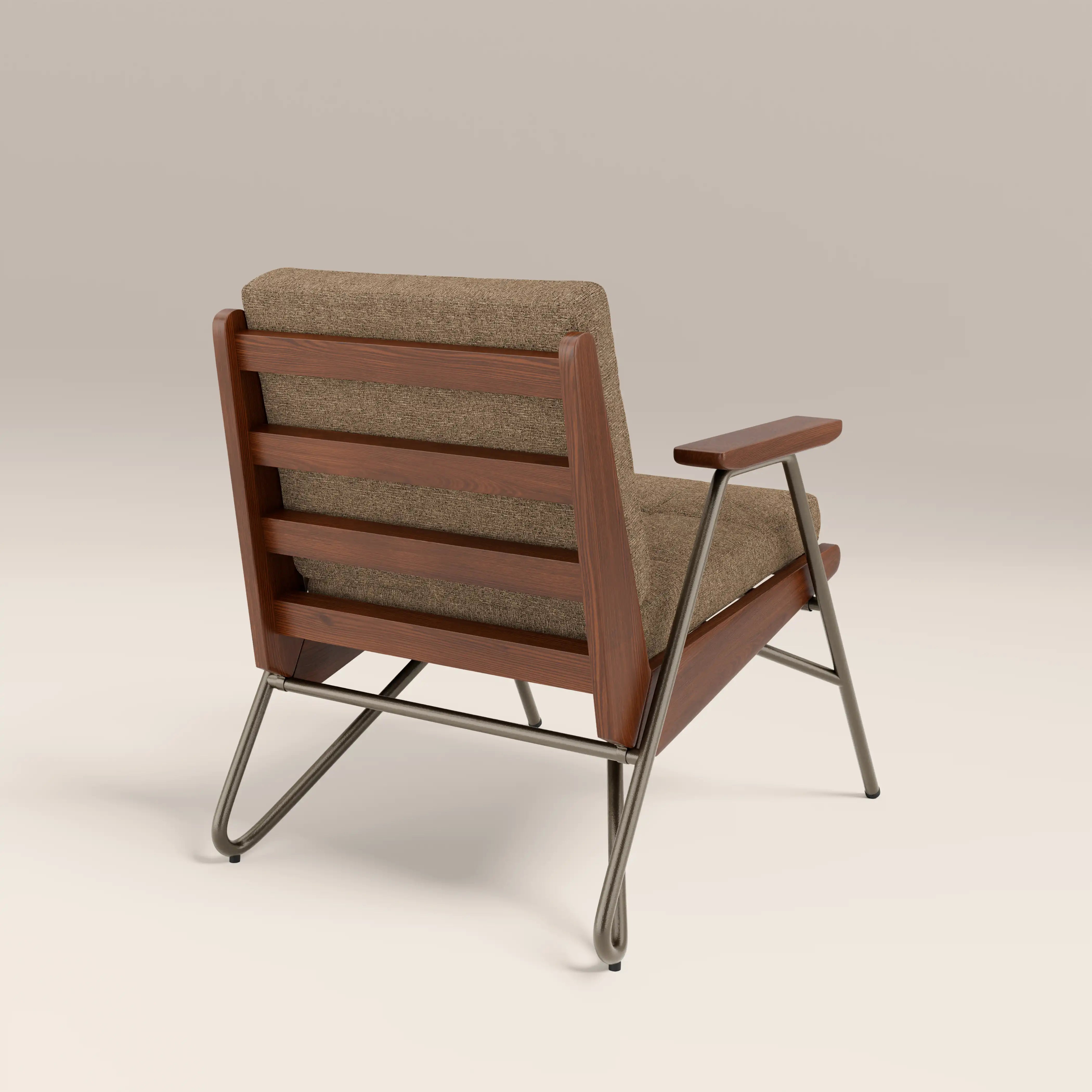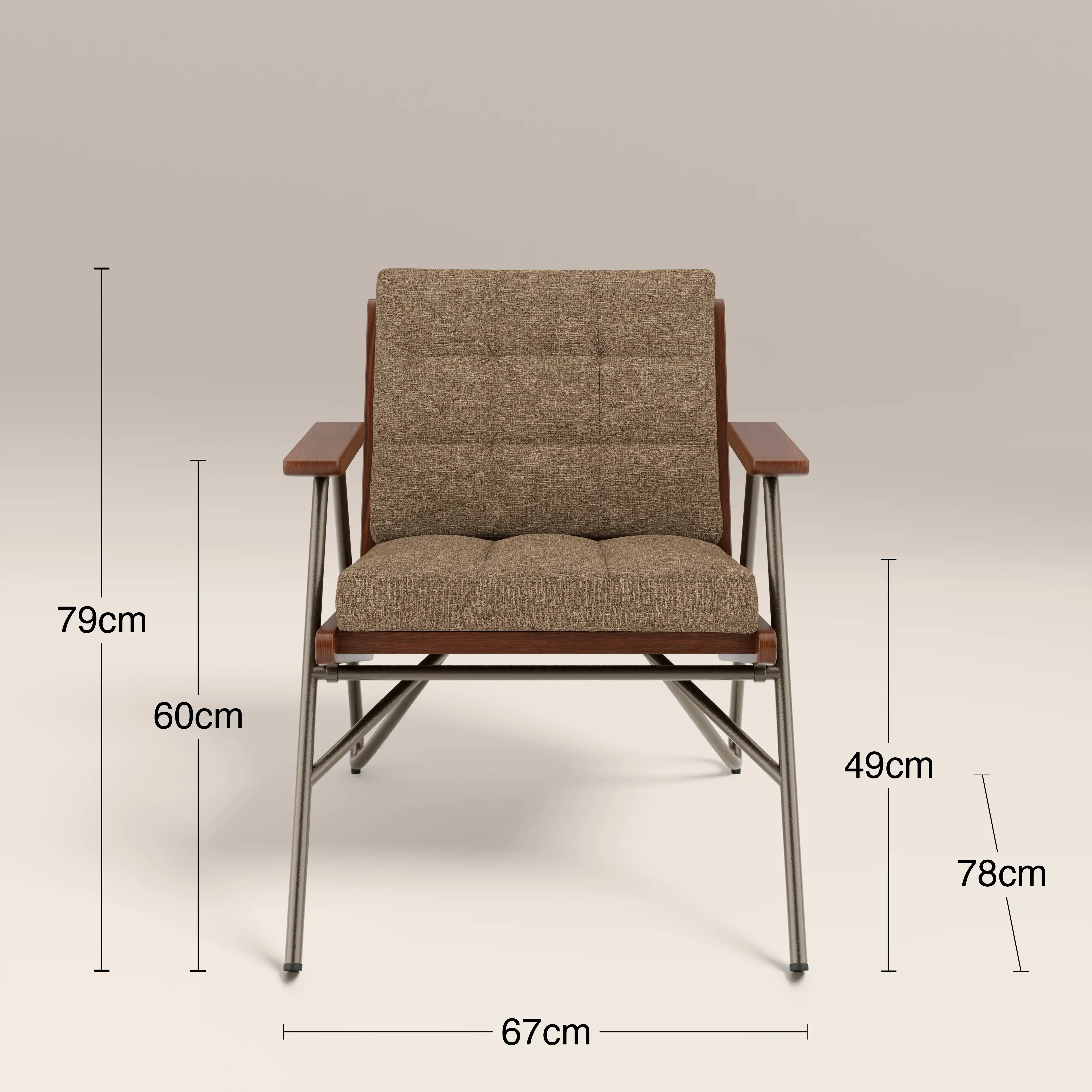 Meet the Aspen. A laid-back accent chair with serious mid-century credentials, featuring blind tufted cushions, and angled ash wood frame and armrests in a walnut stain. In speckled cappuccino brown, the Aspen boucle chair brings warmth without shouting for attention. The slim yet sturdy iron legs in a gunmetal finish keep this look light yet architectural. Perfect for styling a reading nook or adding character to your living space, this is a mid-century design with just the right amount of retro attitude. Comfortable, considered, and effortlessly cool.