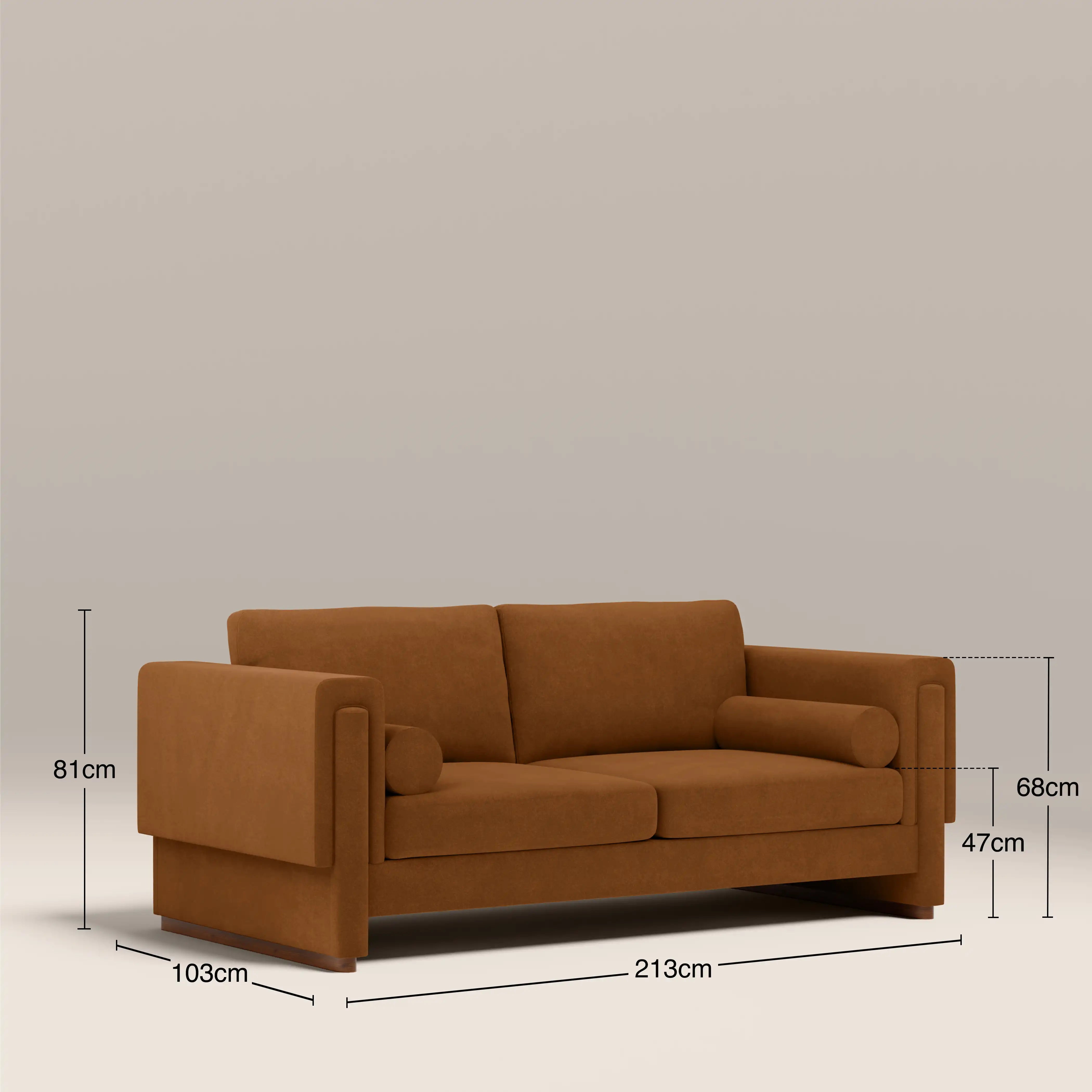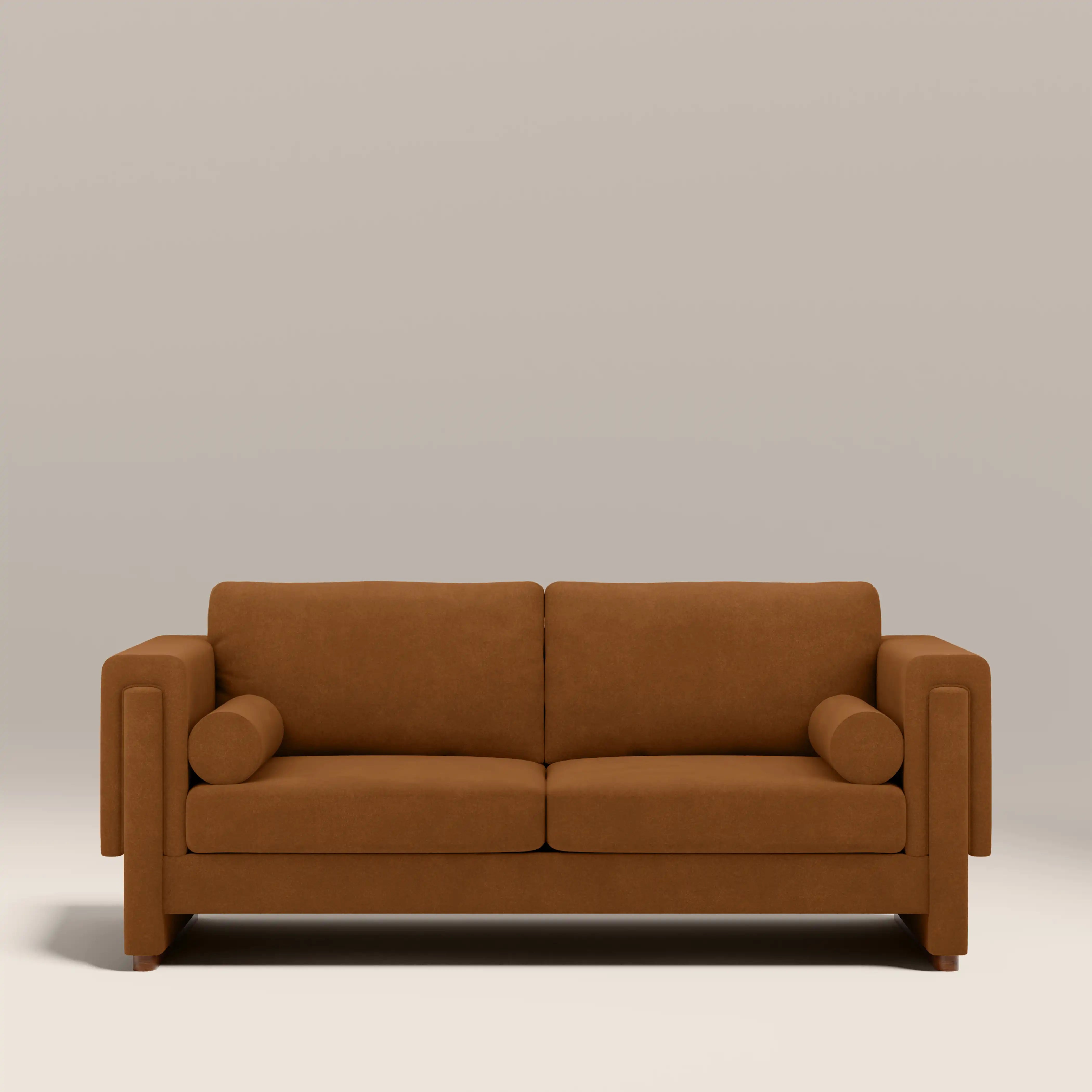 Inspired by 70s revival, the Ava 3 Seat Velvet Sofa is designed with style in mind. Every part of the Ava is design conscious, from the gorgeous caramel brown mohair style velvet upholstery to the bolster cushions sitting at each end. And for those who love a firm seat, yet want to sink into the soft backrest after a long day? The two deep-set seat cushions have minimal sinking and are fixed into place for an elevated, refined look, whilst the two back cushions have a softer composition, allowing you to pull up a pouffe and relax.