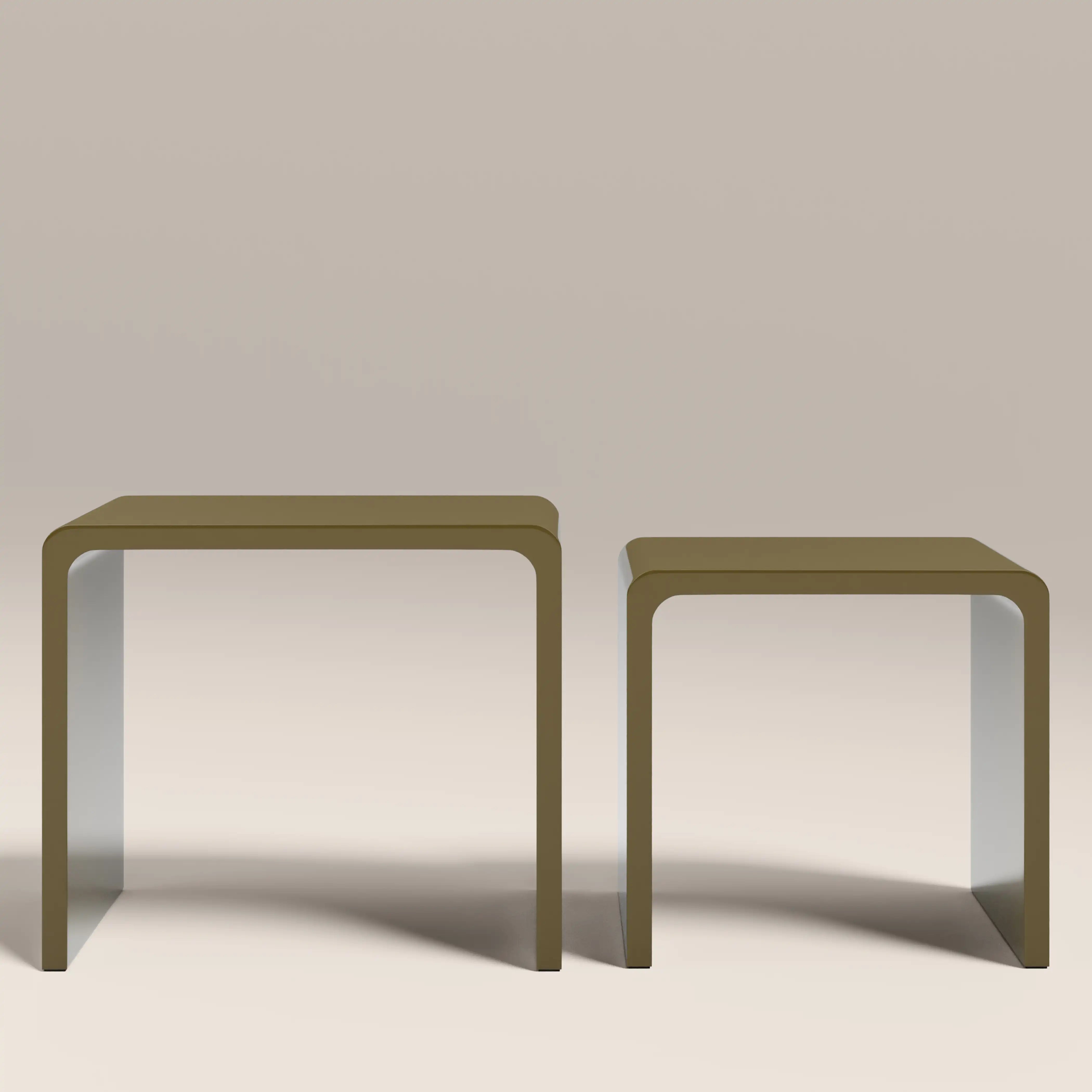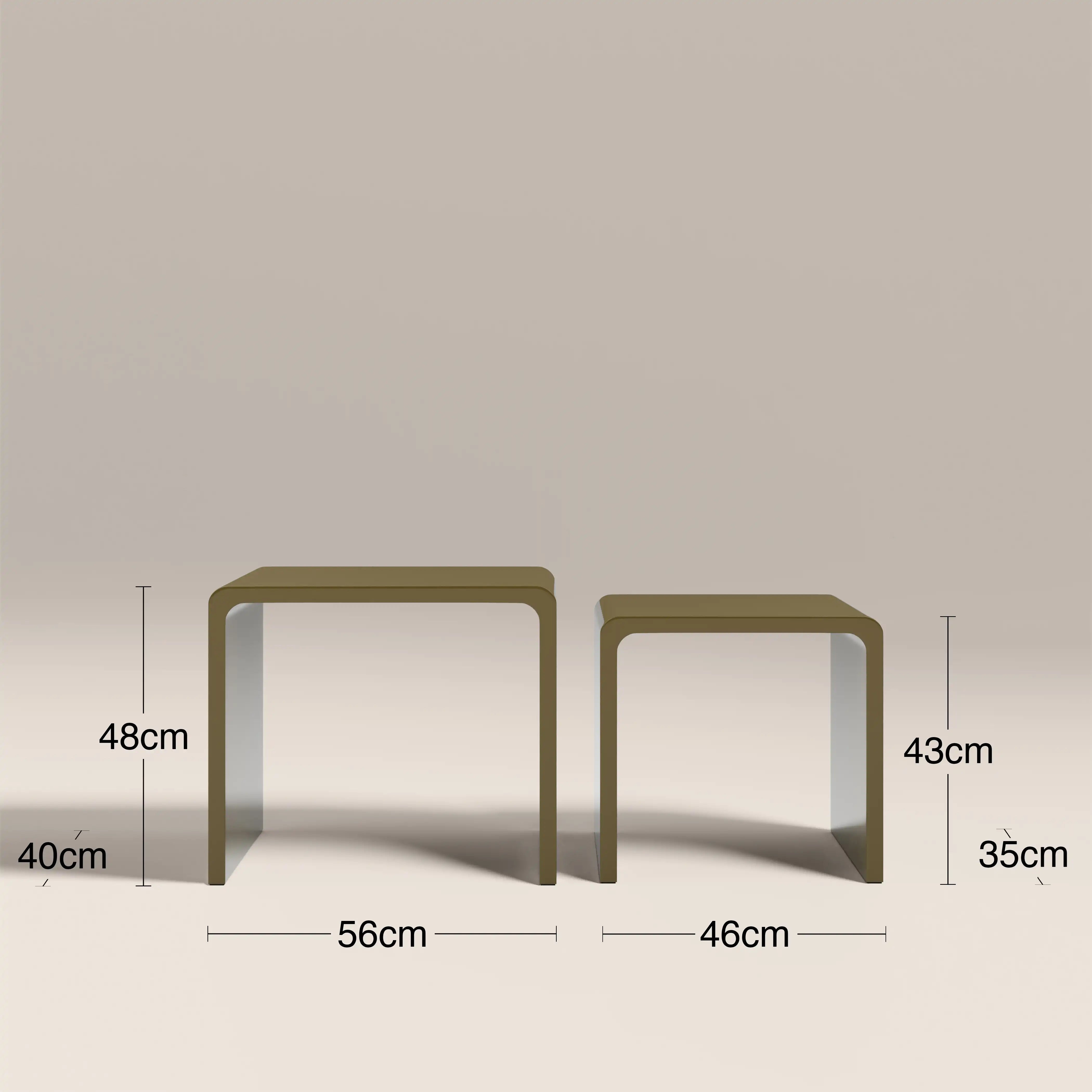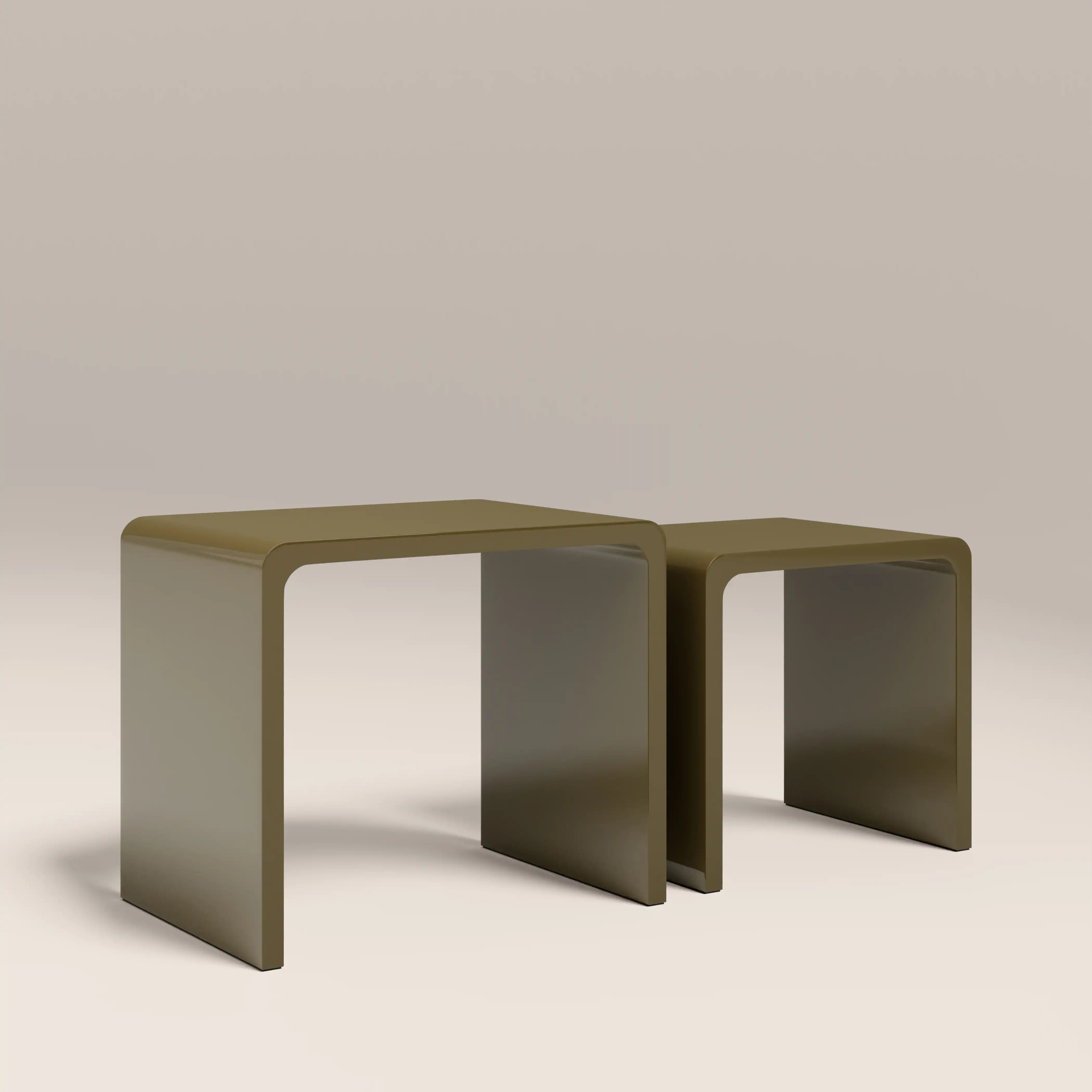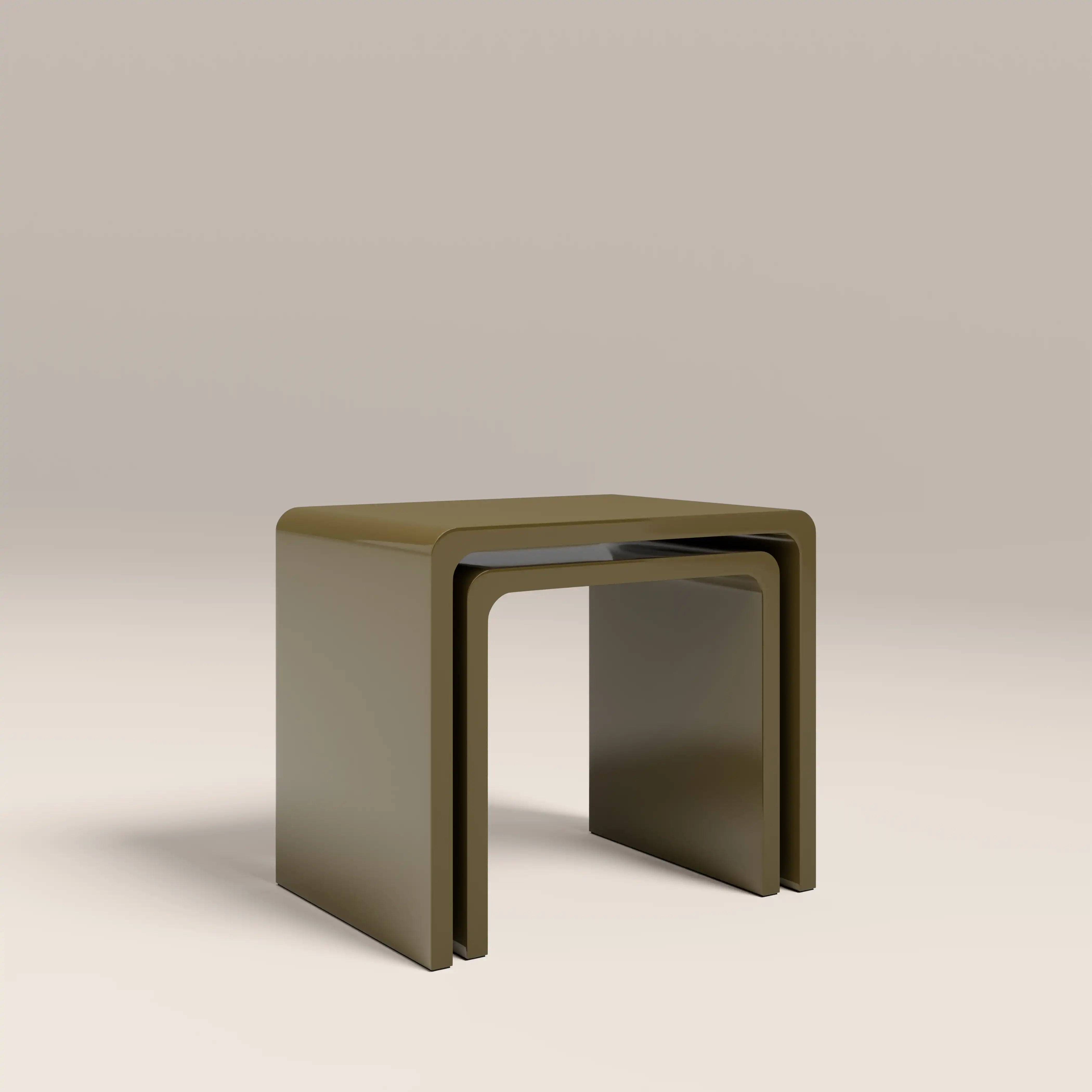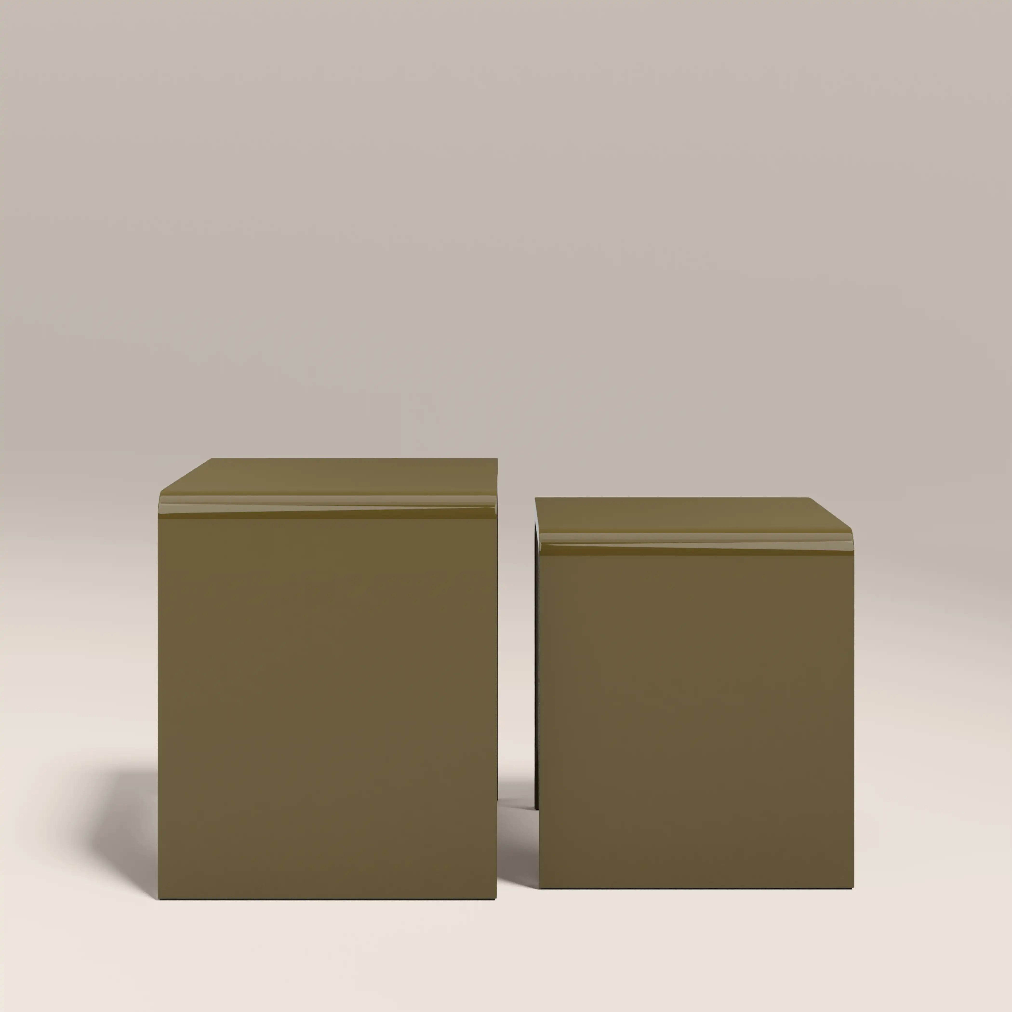Capturing the zeitgeist of the late 70s, the Barney Set of 2 Side Tables embodies Mid-Century Modern. In a high-gloss lacquered finish in green, this nest of tables are ideal end tables in living rooms and even bedrooms - especially for those who love a minimalist edge with high impact. In an olive green finish, the Barney is versatile, bold, and full of character.