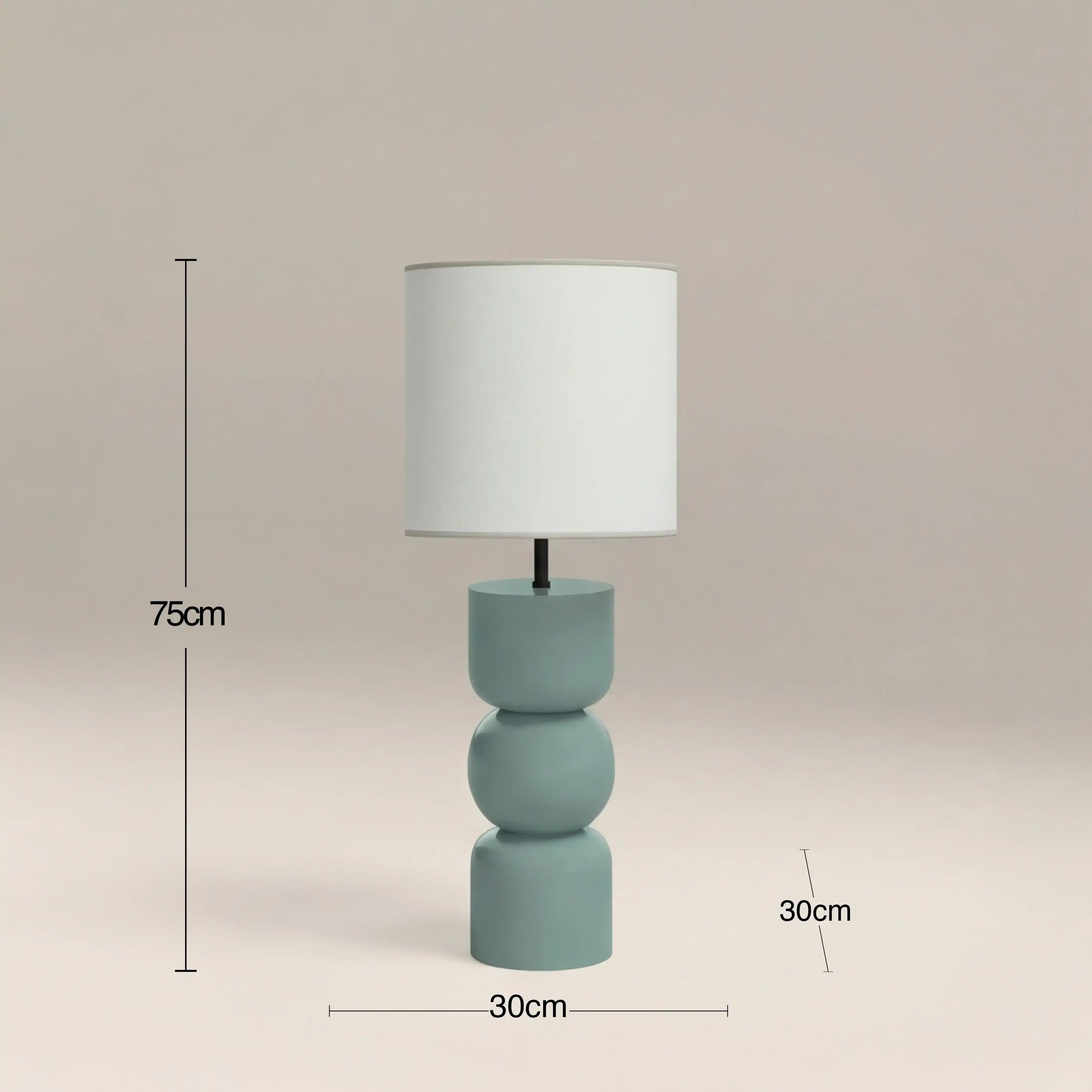 The Bella is a geometric table lamp is just as much a focal point as a light source. Featuring a stacked tower of shapes, the Bella Table Lamp base is drenched in a high-gloss finish that beautifully reflects light and shadow. In a sky blue that complements the neutral fabric shade.