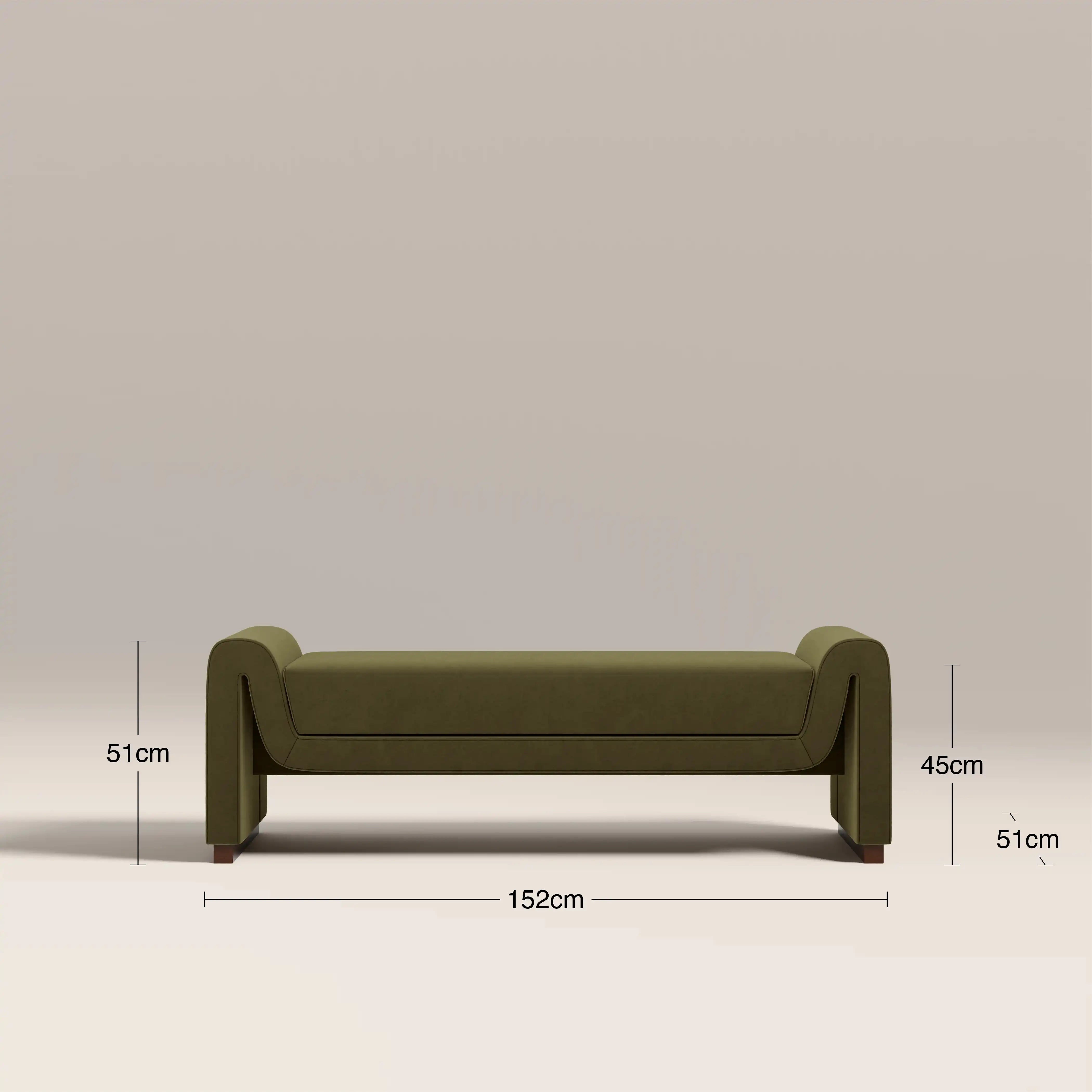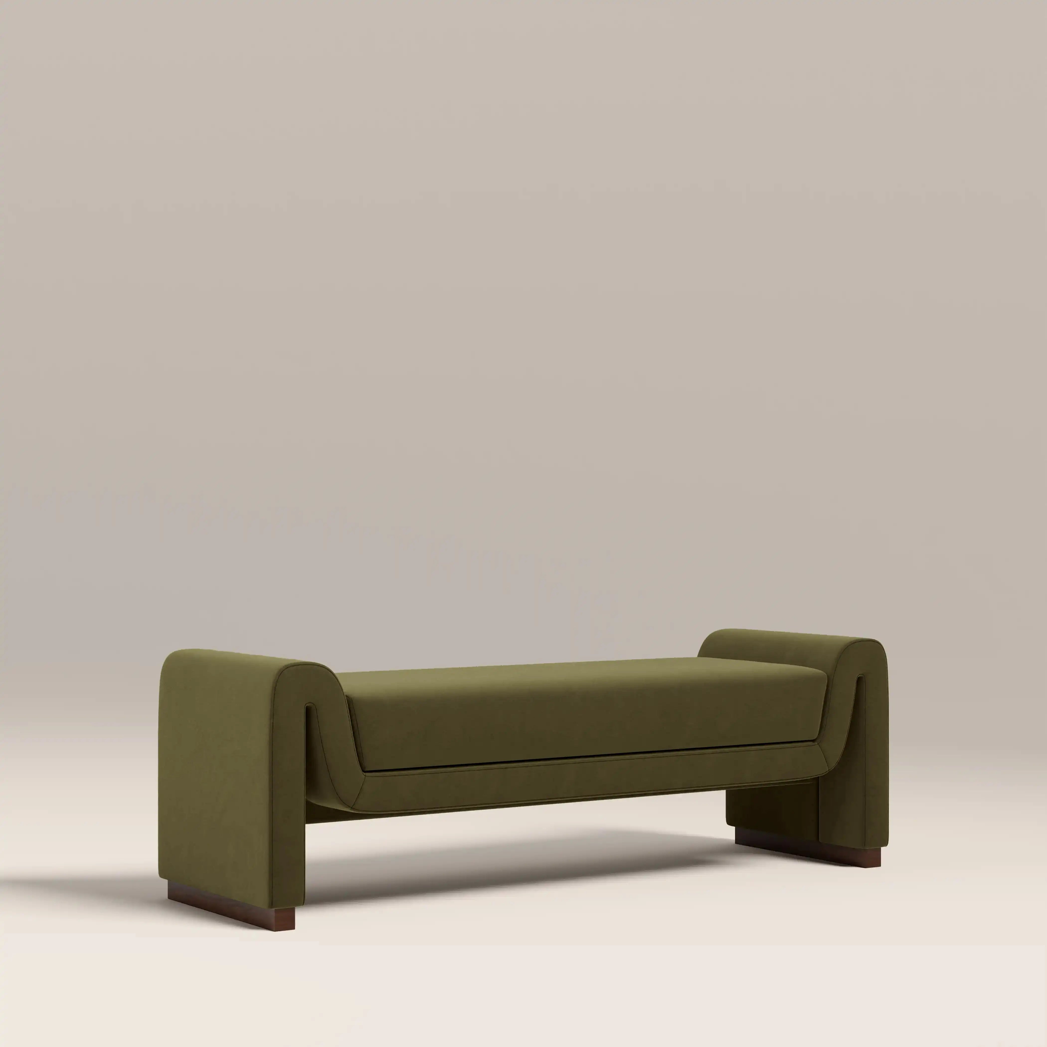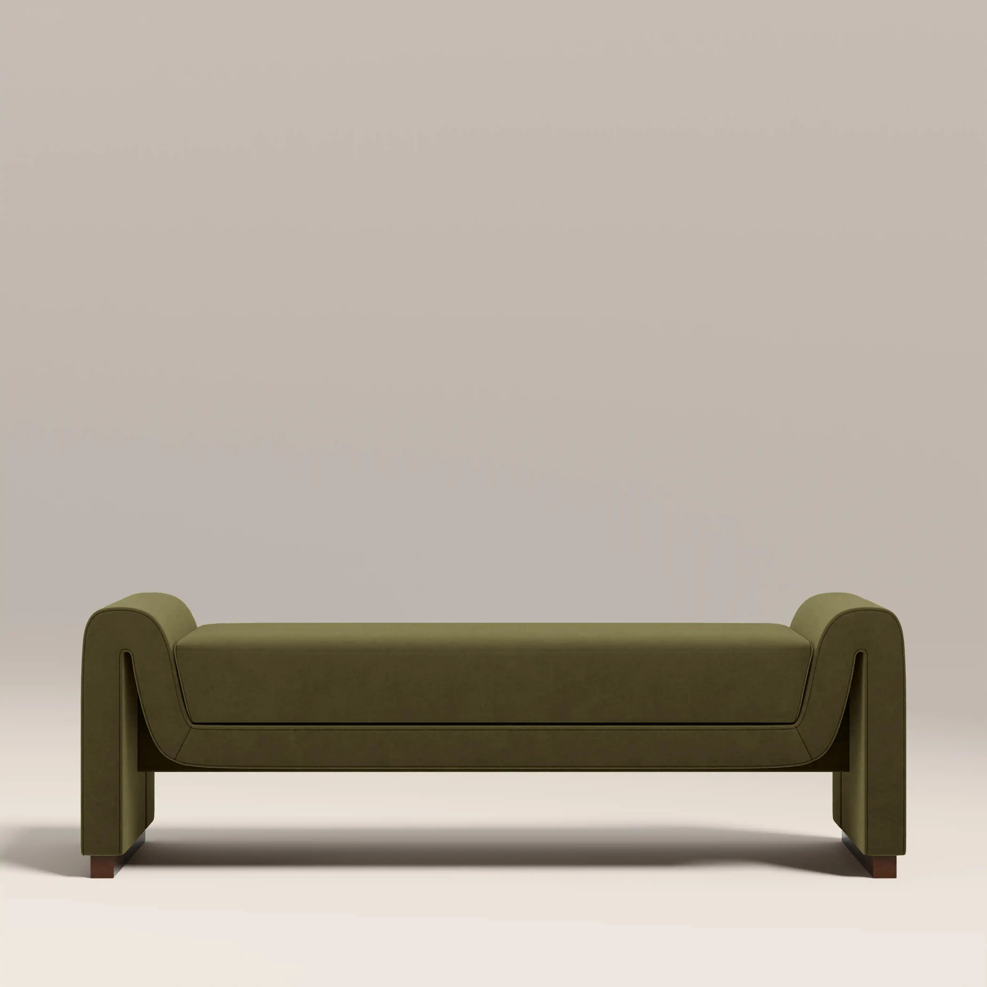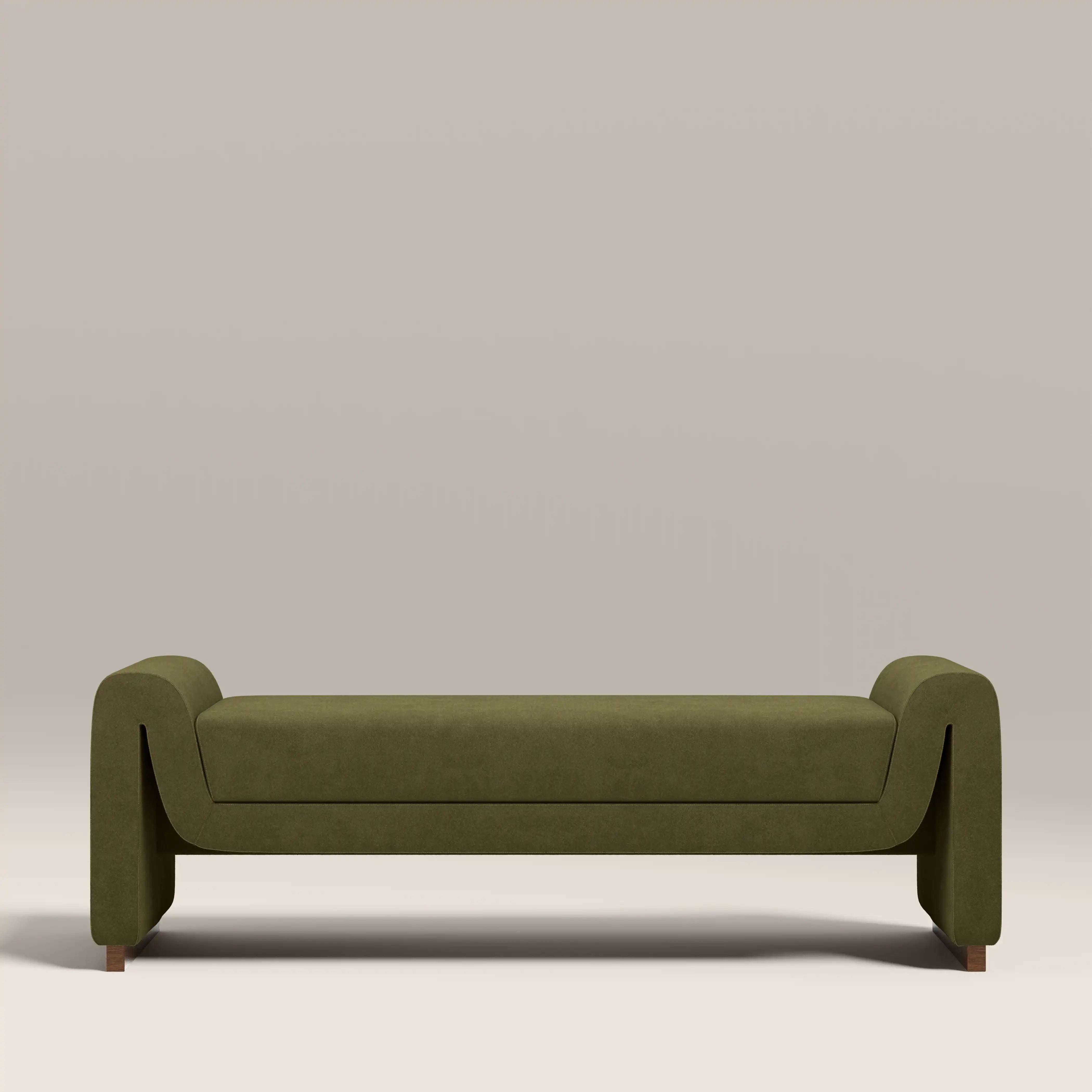 Embrace velvet with the Bennett Bench; the perfect blend of modern design and luxurious comfort. With its curved, flowing silhouette and soft mohair-style velvet upholstery in our signature moss green, it's a true statement piece. The padded seat offers exceptional comfort whether placed in a living room, hallway, or bedroom. Add a touch of contemporary statement to any space.