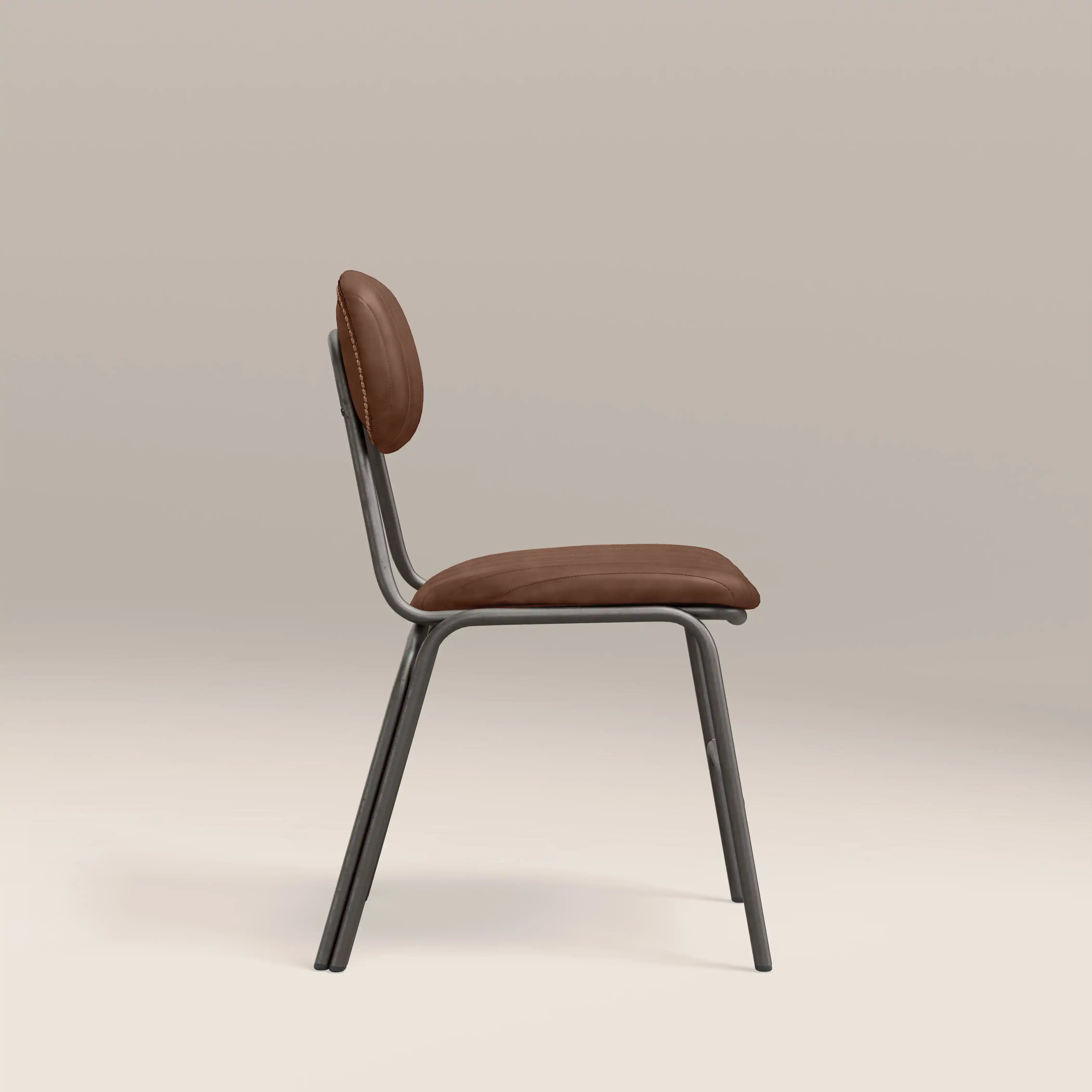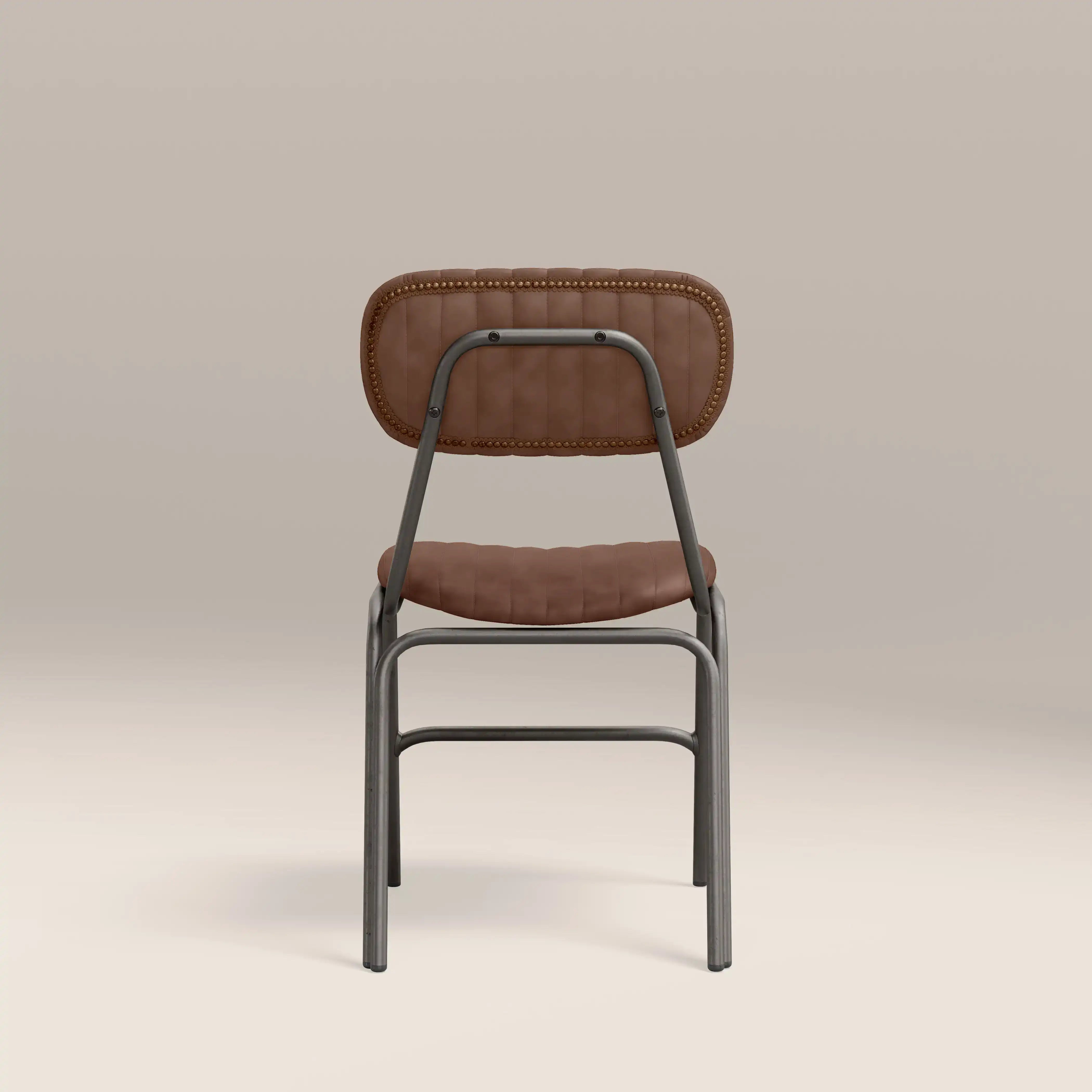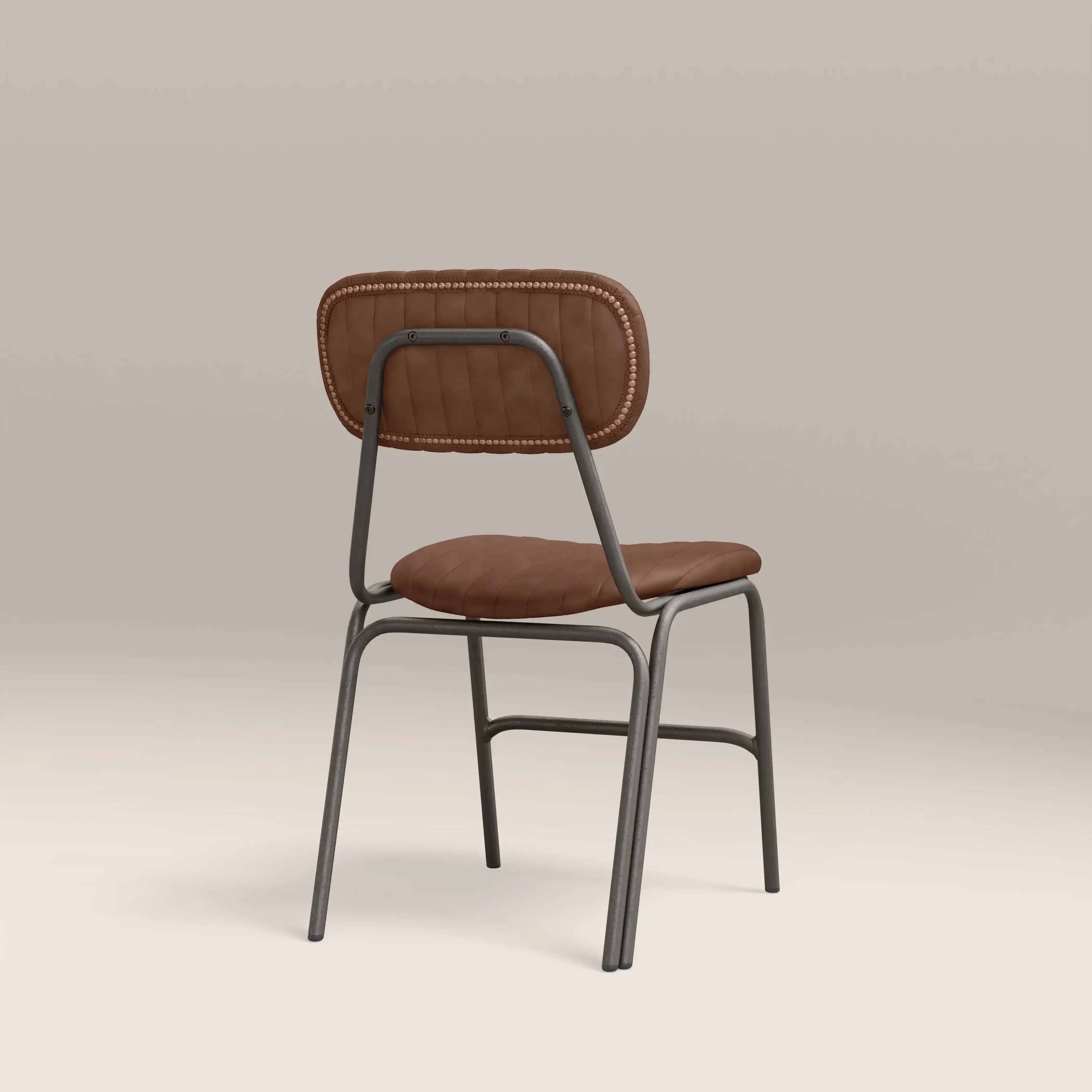 Showcasing the best of industrial design, the Boston dining chair is upholstered in soft tan faux leather with padded seat for extra comfort. Featuring ribbed backrest and slim dark gunmetal legs, the Boston is a modern chair for your dining room or kitchen.