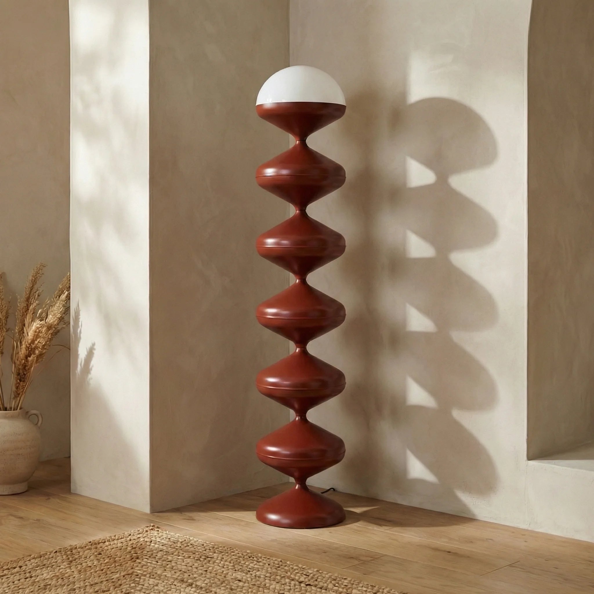 For Studio 54 Style, look no further than the Brandon Lighting Range. That dynamic waved base in a matte rust red makes for a true statement piece, oozing 60s style. With curved opaque shade and a dimmer switch, you can easily set the mood with this striking floor lamp.