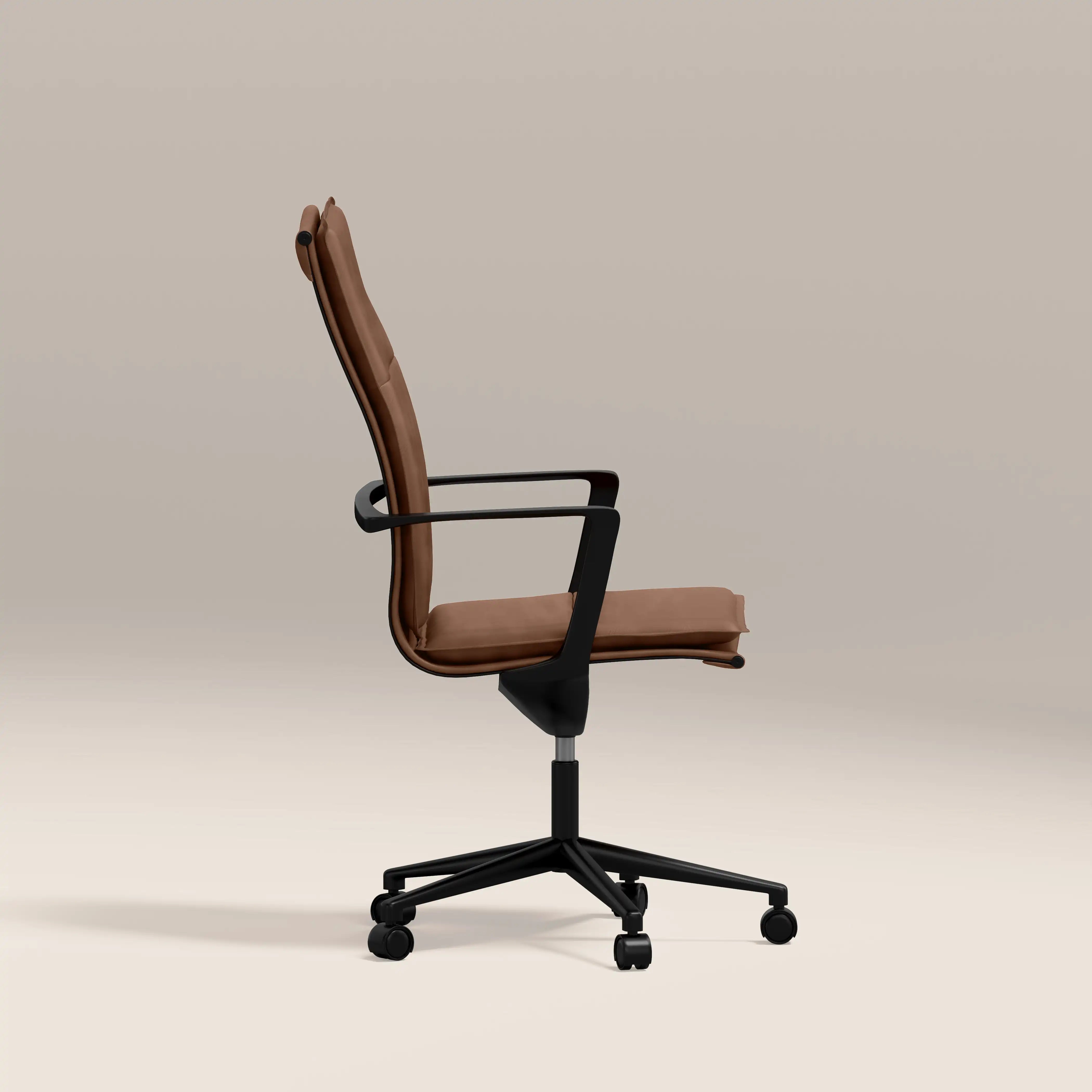 This is the Bria Office Chair; built with productivity in mind. The faux leather seat and high backrest in vintage tan sits within a sturdy, height-adjustable black metal frame on wheels, making it easy for you to move and swivel throughout the day; the perfect contemporary vibe to your home office. With easy assembly, padded seat, and premium materials, you have yourself a luxurious work-from-home setup.
