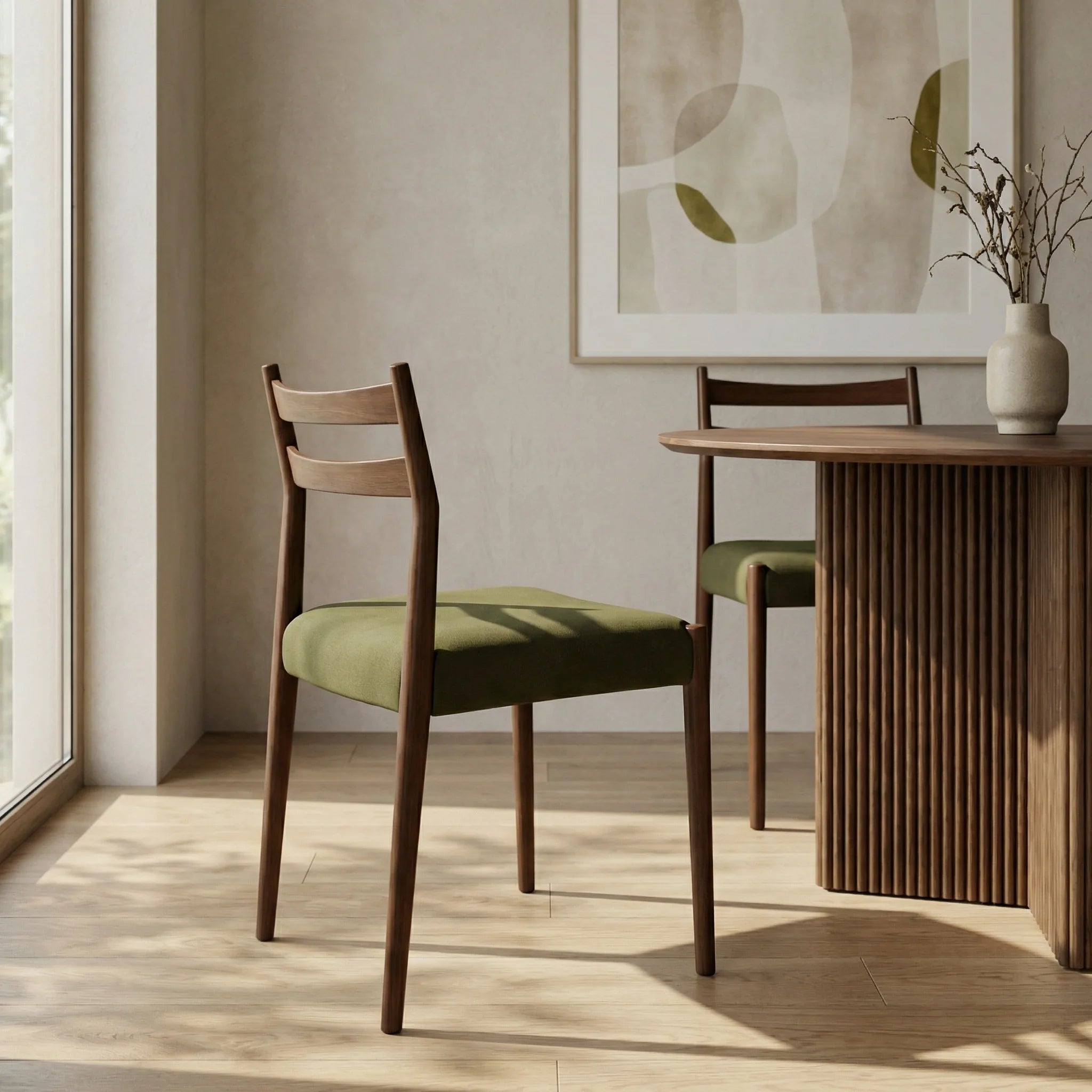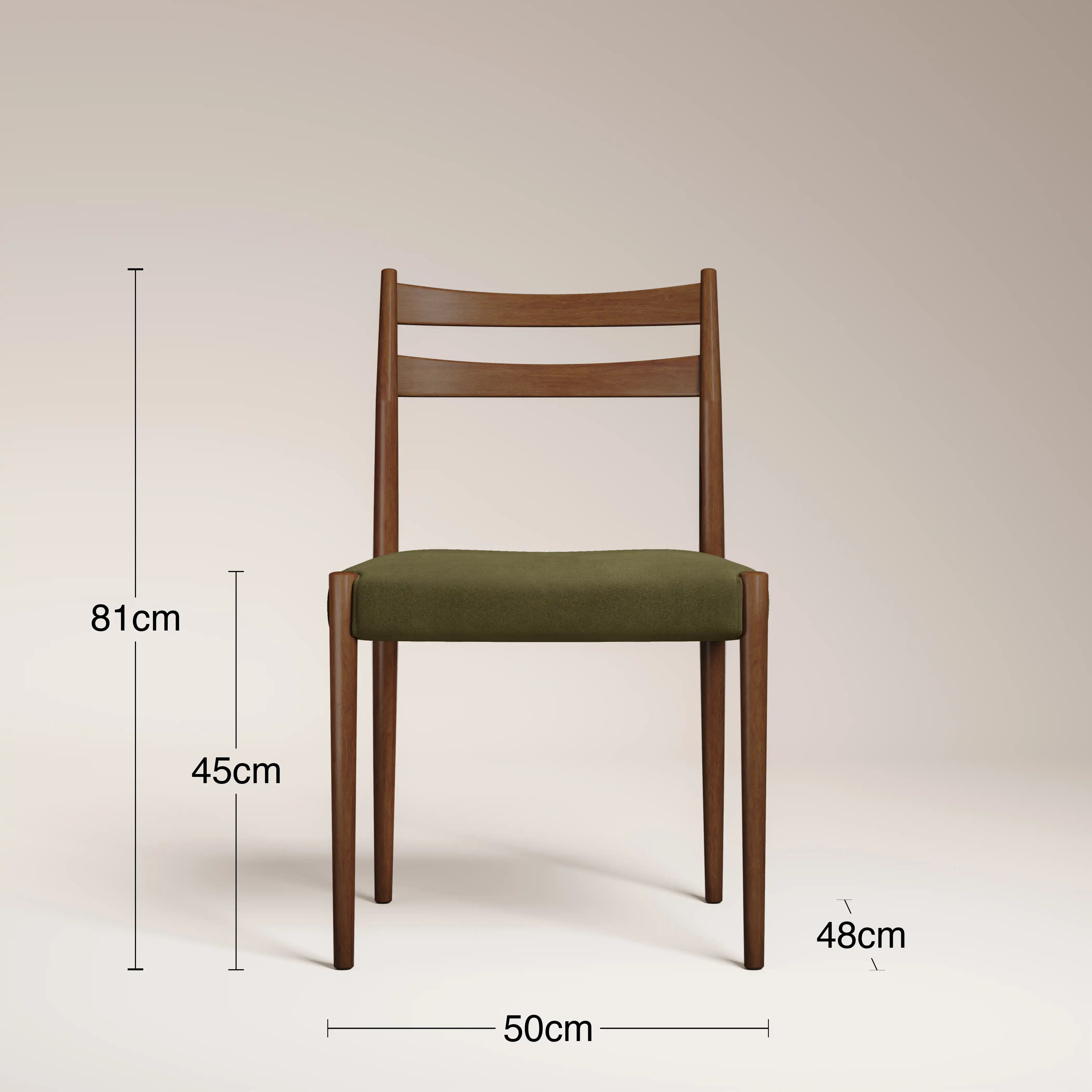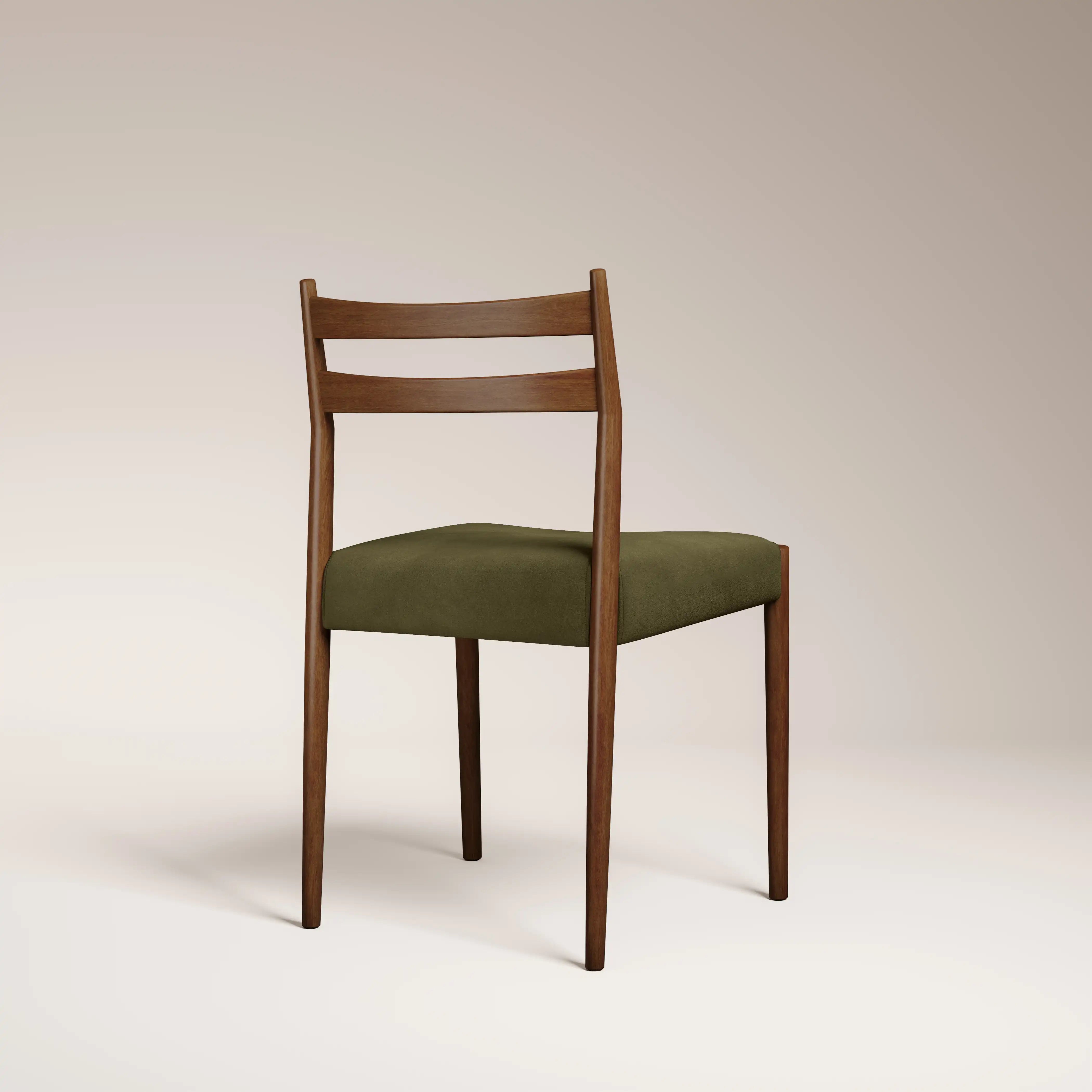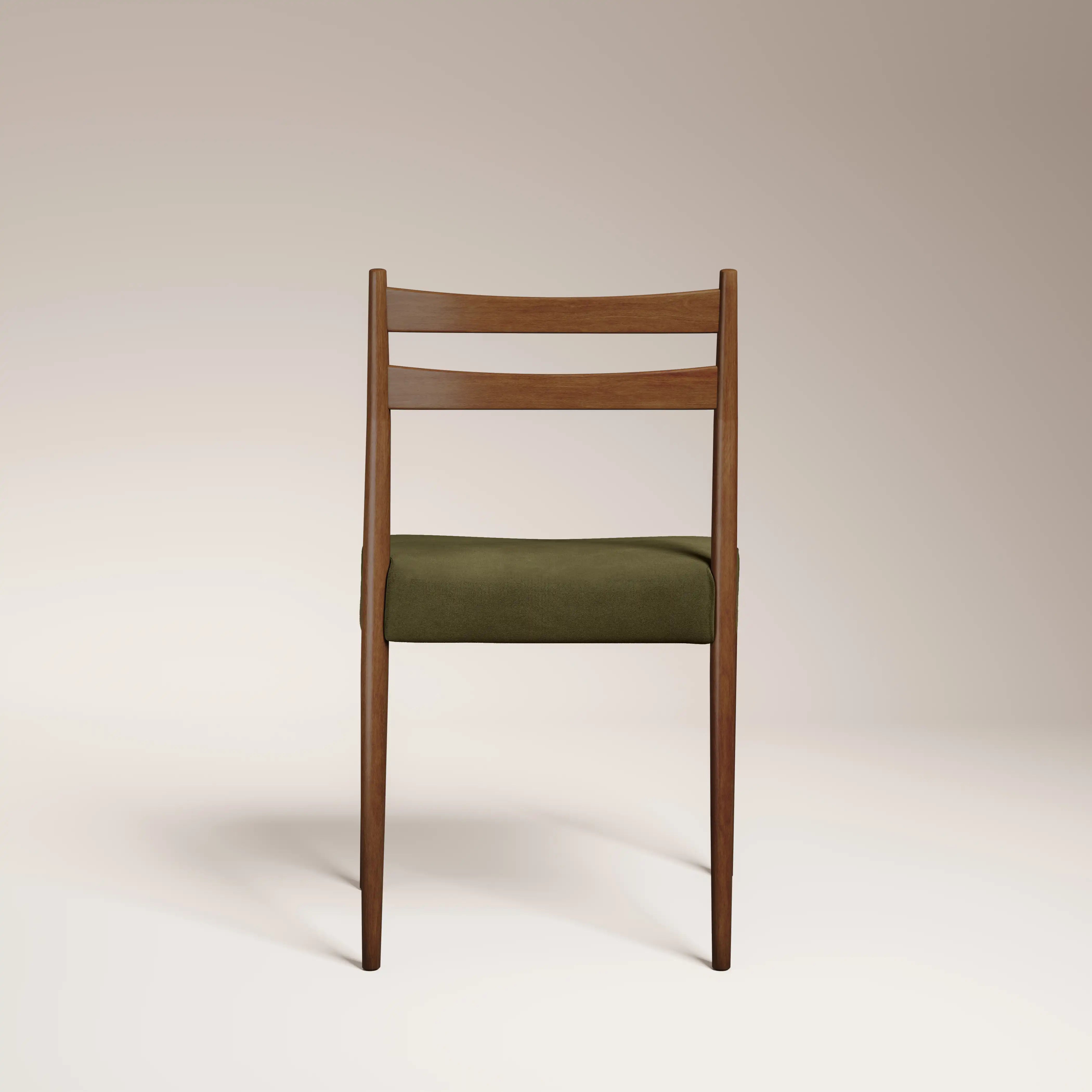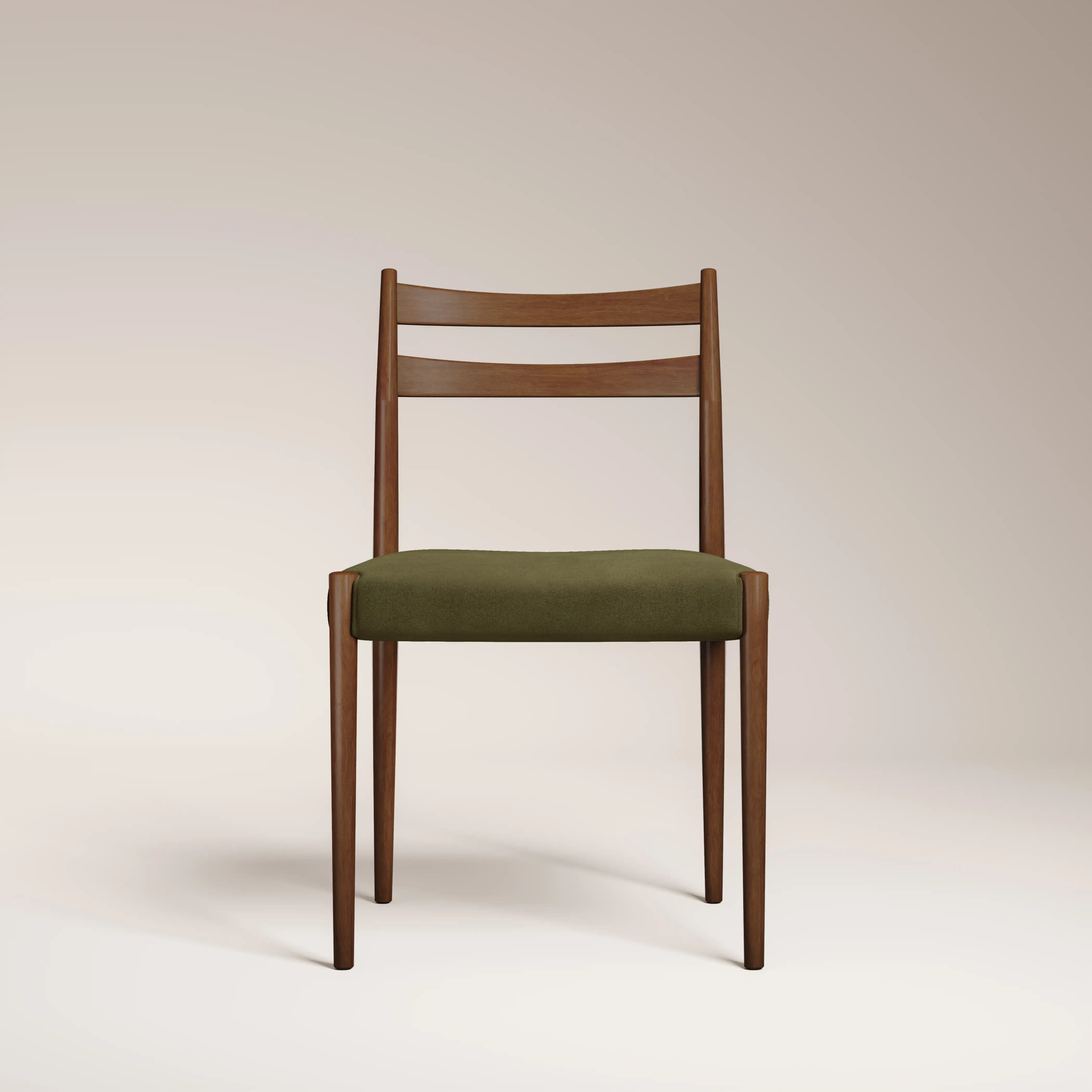 The Caleb Wood Dining Chair is the perfect addition to your dining space. The Caleb Dining Chair elevates any interior with hints of shaker style mixed with modern nordic charm. Its green mohair-style velvet seat and walnut-stained wood frame have been skillfully crafted for a durable seat around the dining table.