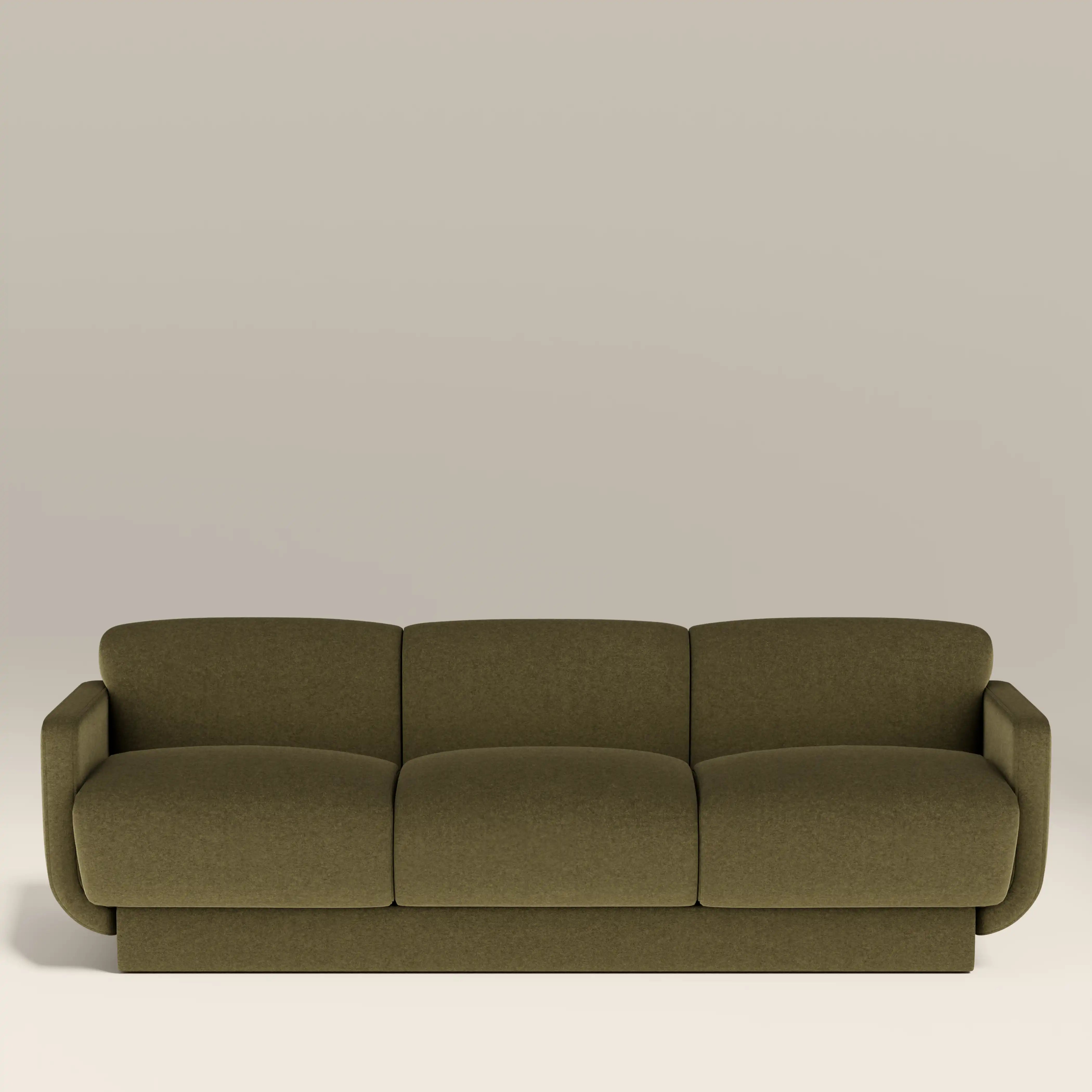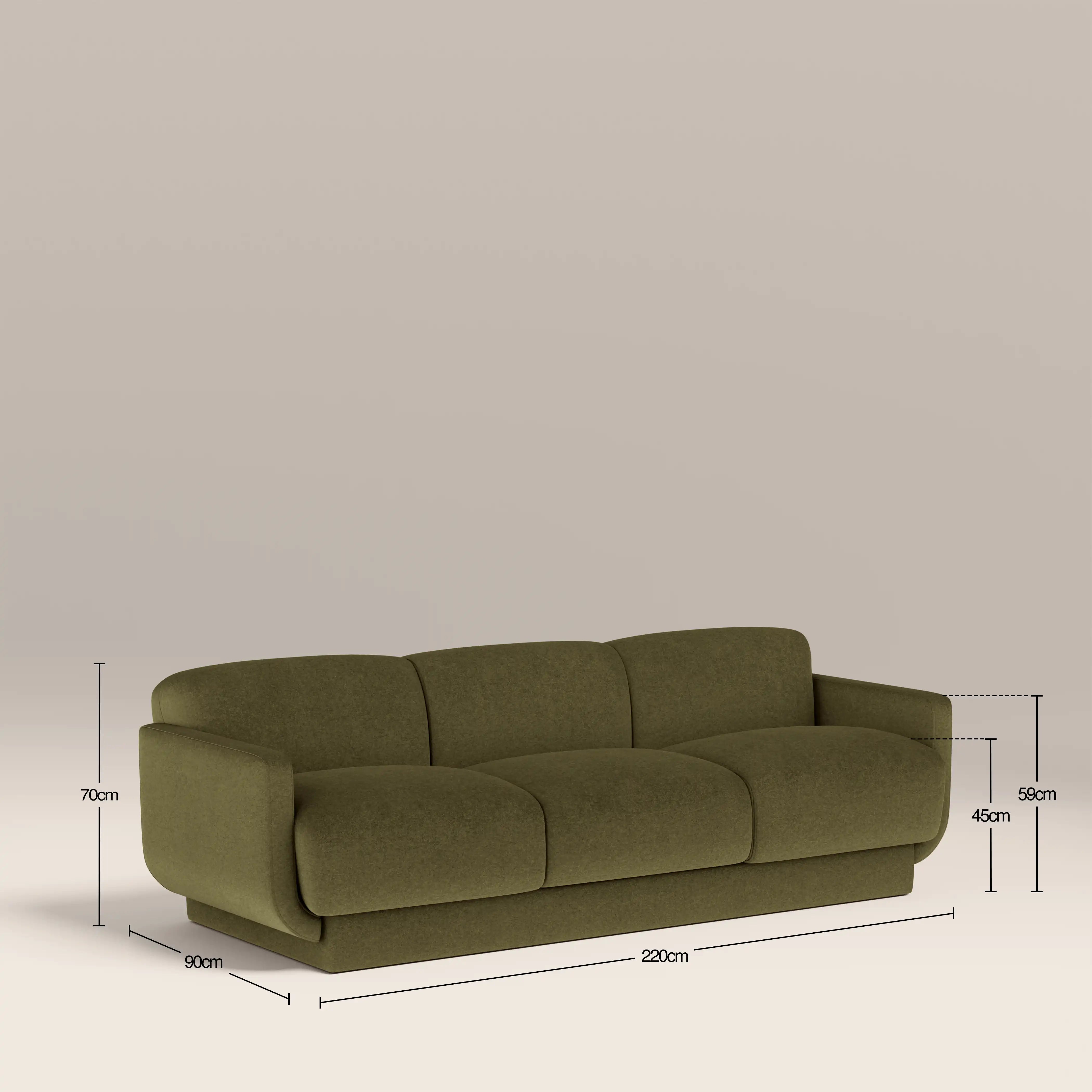 For ultimate luxe 70s style, the Connick 3 Seat Sofa has arrived. Not only a statement piece, perfect for lounging - and seriously upping your design credentials - the Connick is comfortable with oversized bubble-style seat cushions that are fixed in place. The low back and narrow frame make this velvet sofa ideal for open-plan spaces. Upholstered in supple mohair-style velvet that is sustainably made, we love the moss green from top to toe.