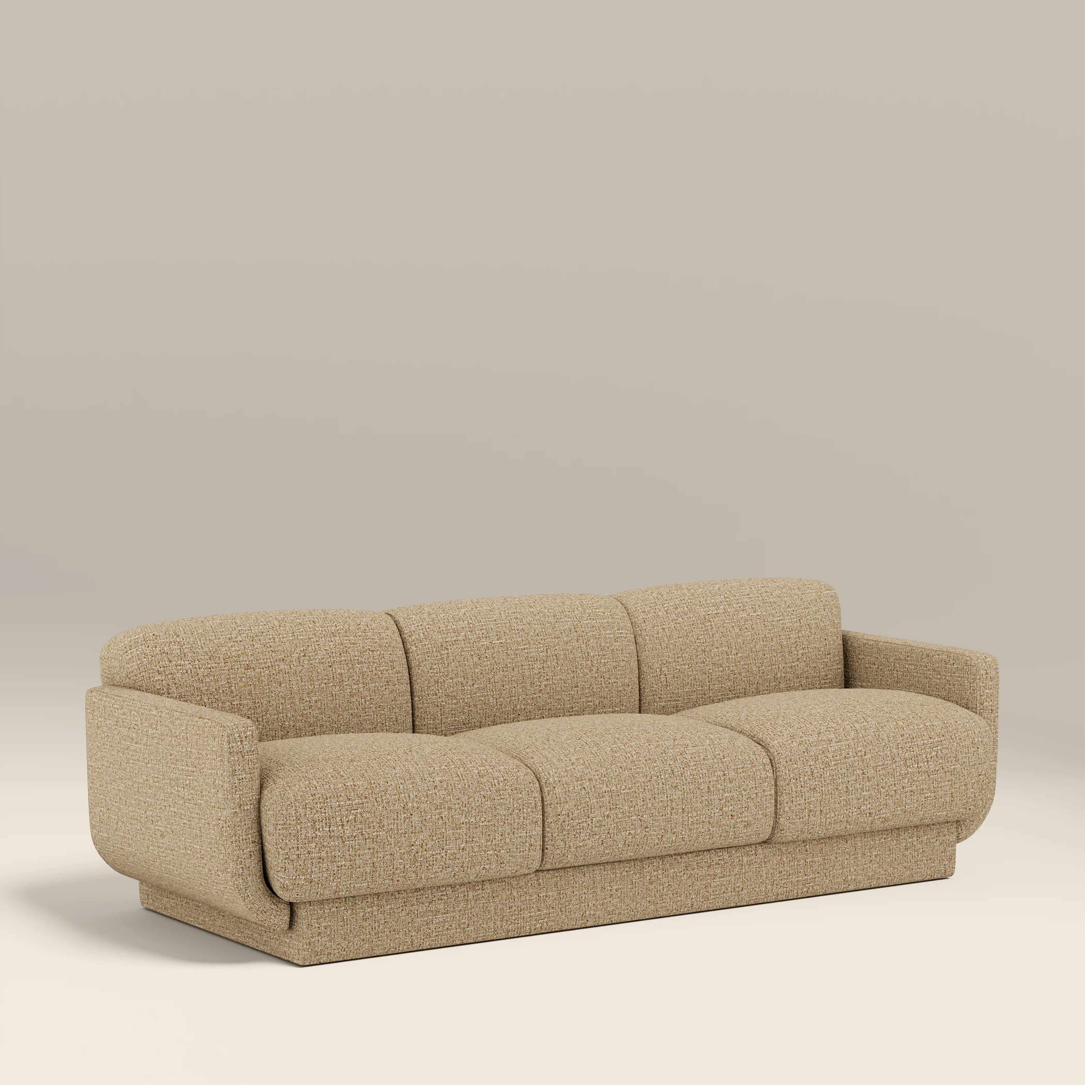 For ultimate luxe 70s style, the Connick 3 Seat Sofa has arrived. Not only a statement piece, perfect for lounging - and seriously upping your design credentials - the Connick is comfortable with oversized bubble-style seat cushions that are fixed in place. The low back and narrow frame make this boucle sofa ideal for open-plan spaces. Upholstered in soft boucle, we love the speckled latte from top to toe.