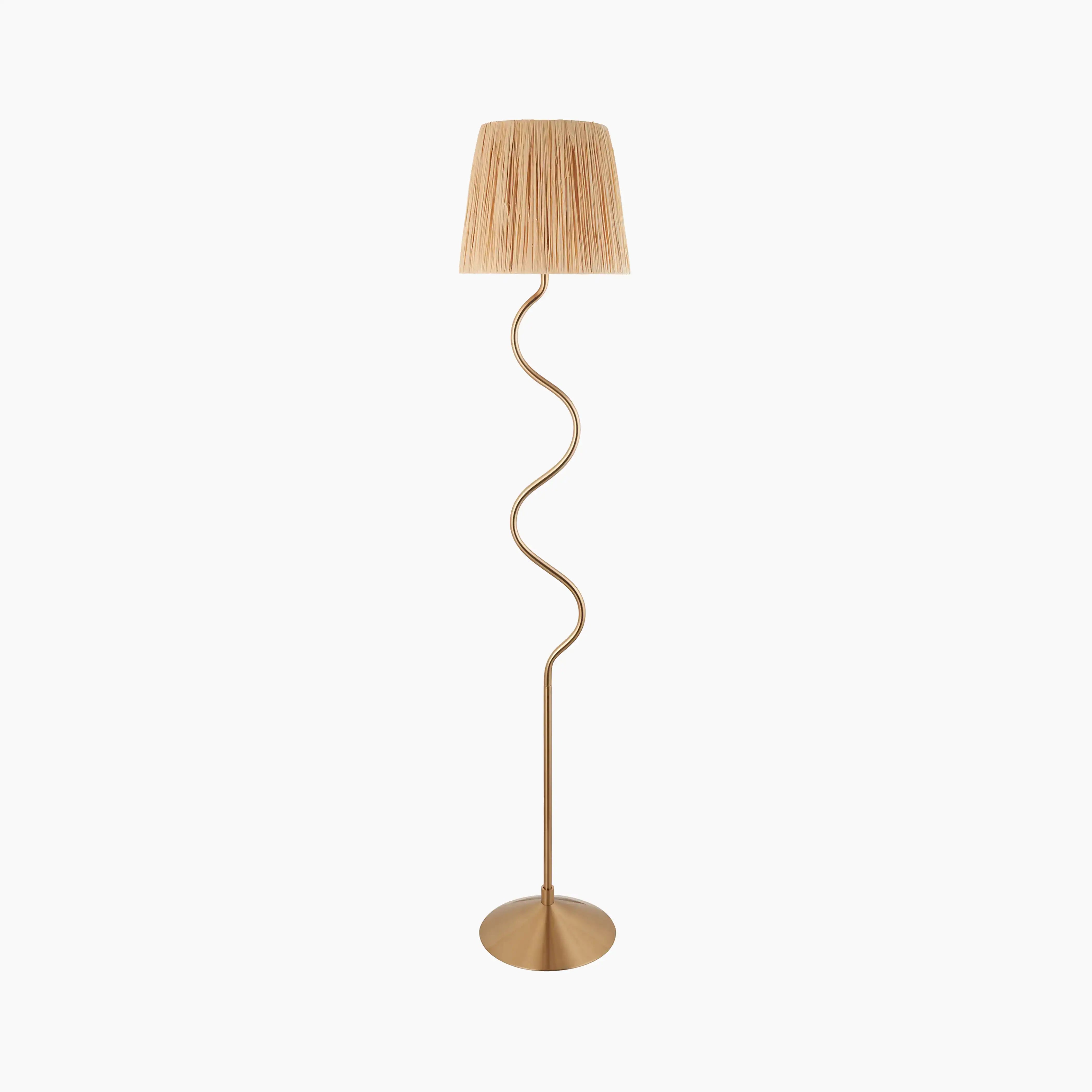 The Davis Floor Lamp brings relaxed modern style to any space. Pairing a hand-woven raffia shade with a brushed aged brass base for effortless, textured charm, it's luxe style with a hint of country. The warm, diffused light creates an inviting atmosphere, perfect for, lounges, living rooms, or cosy corners. With a 2m black flex and convenient inline switch, it combines tactile craftsmanship with practical usability.