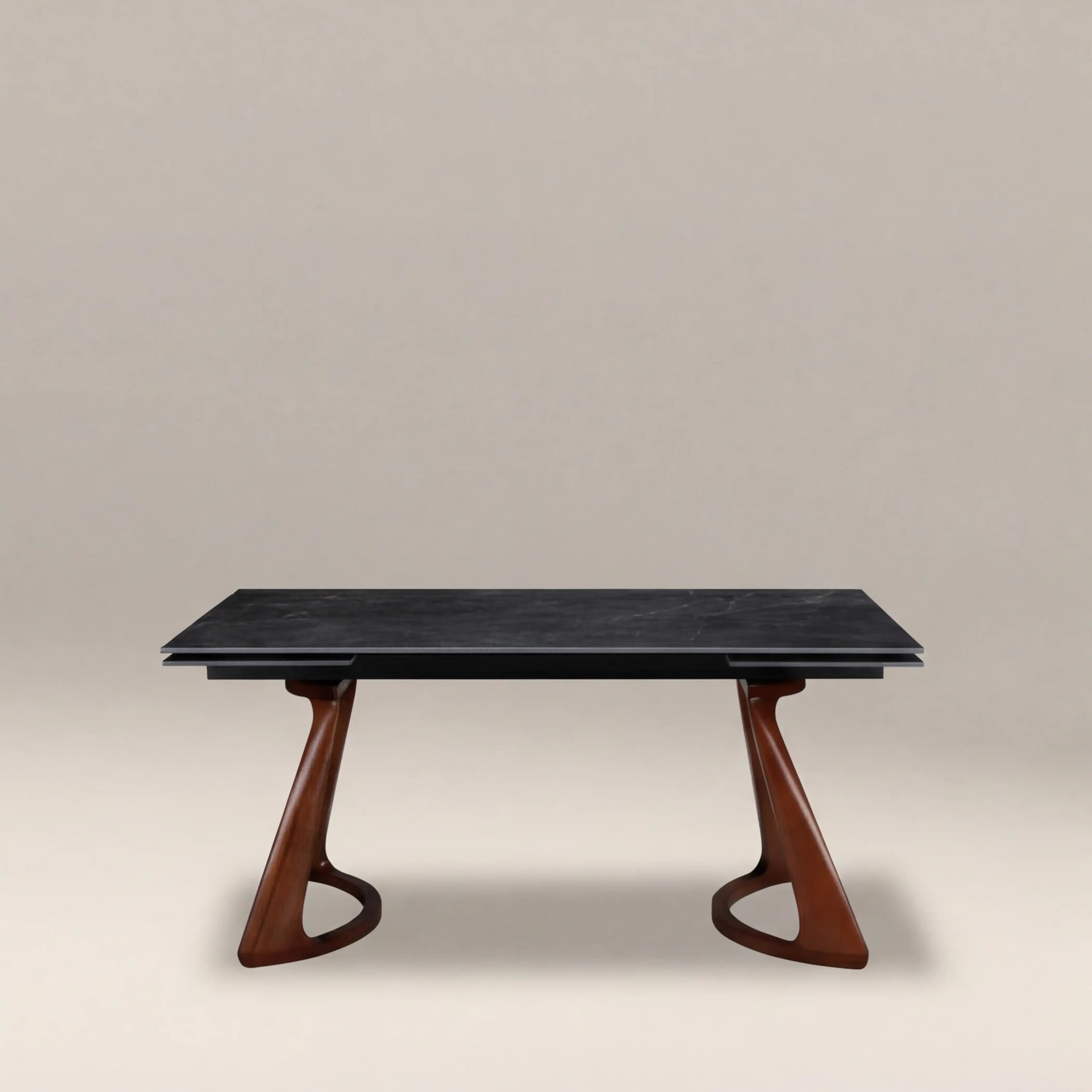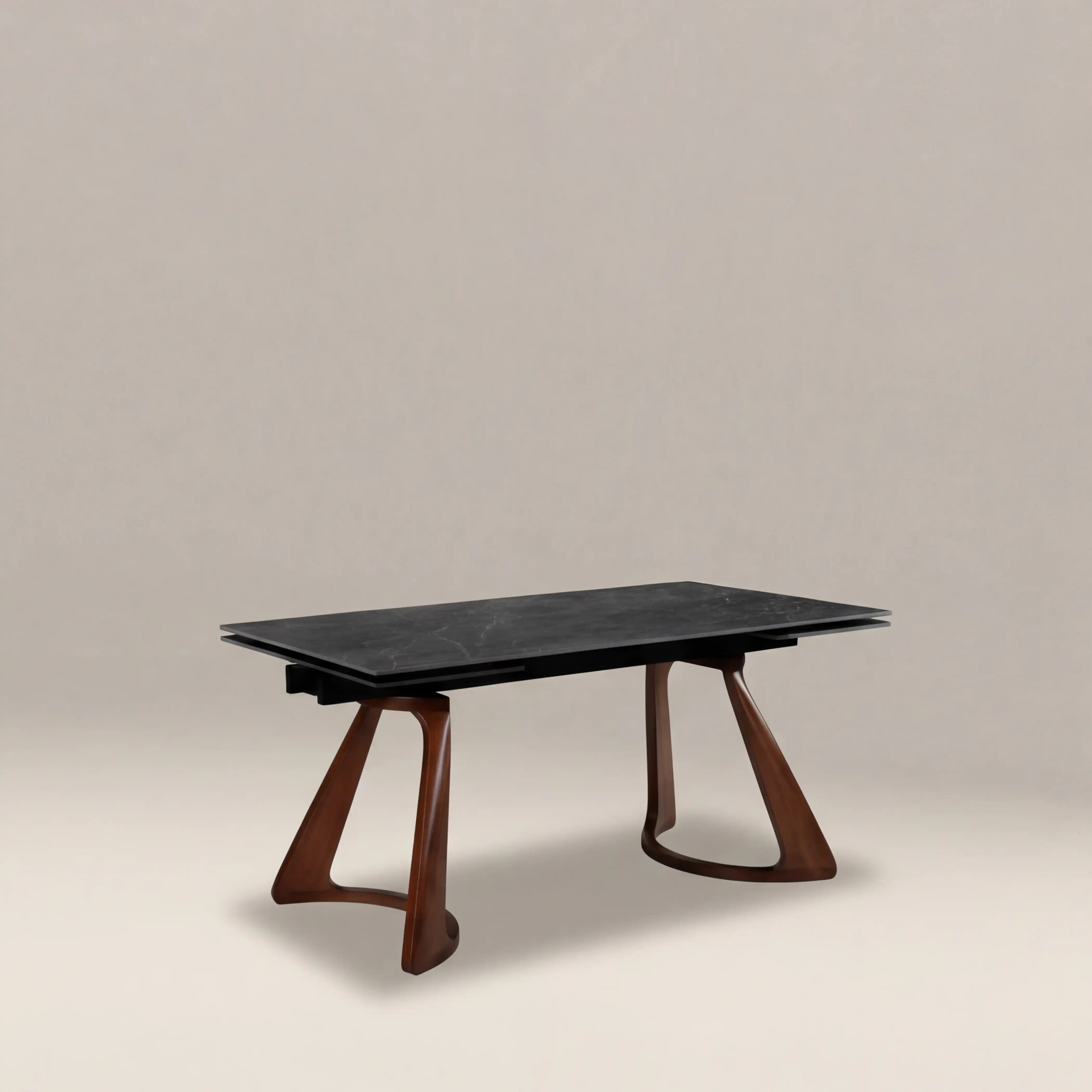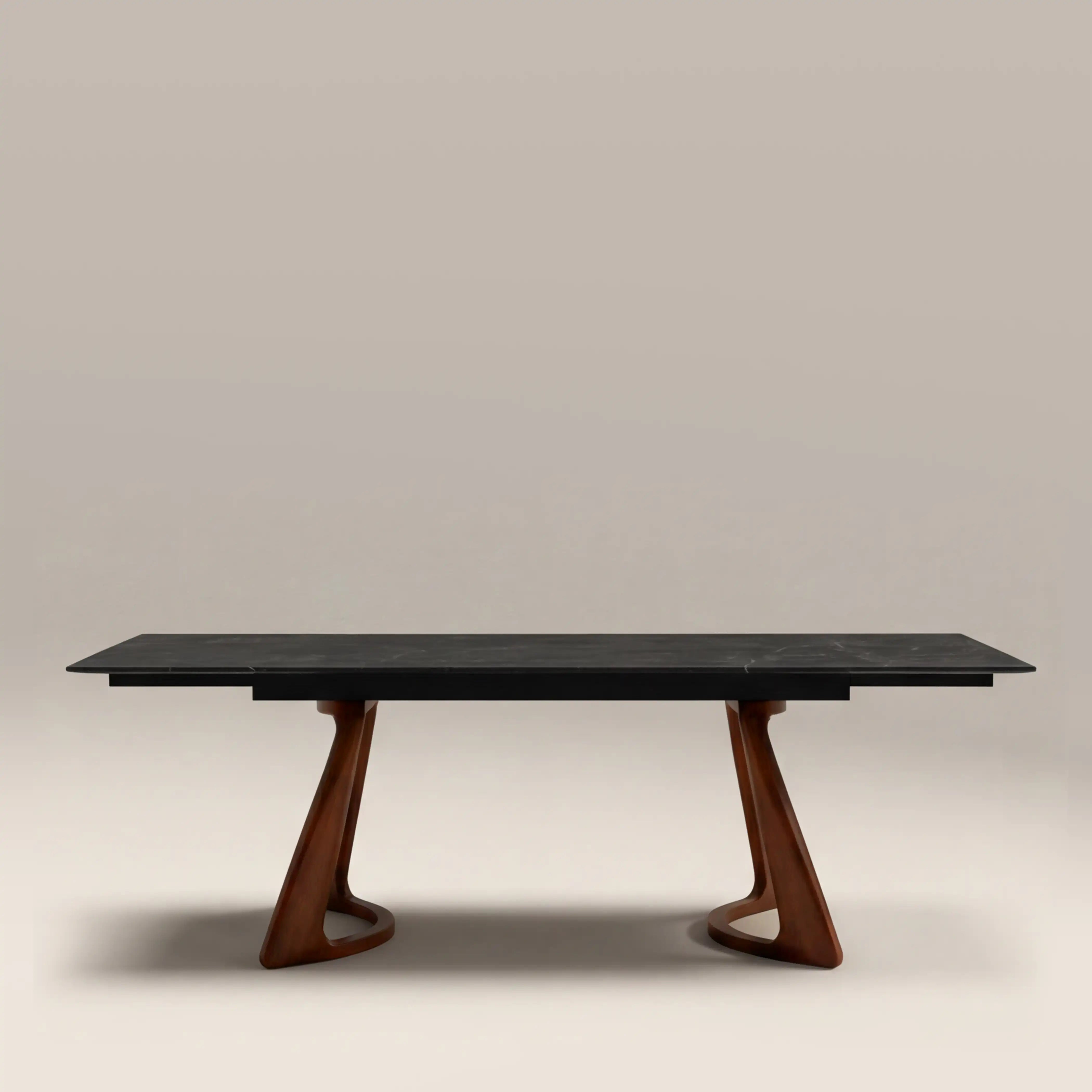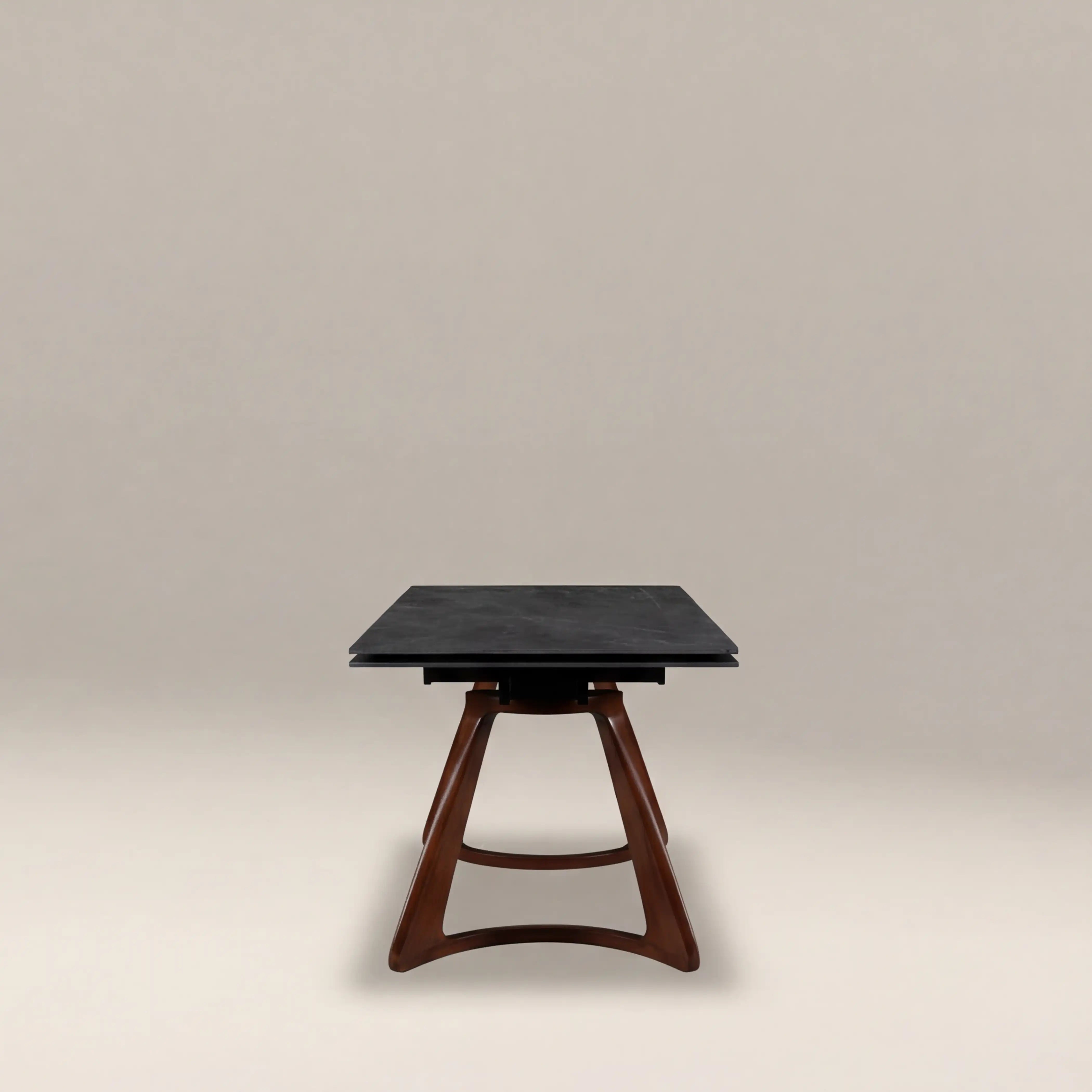 For a statement dining table that brings the whole room together, meet the Delina Extending Table. This modern luxe design features a sculptural element below the surface with curved legs crafted from solid wood. The large tabletop is made from durable and low-maintenance sintered stone in a grey finish. This 6-10 seater dining table extends effortlessly with a simple pull out extension of 40cm on each end. Impromptu dinner parties will be your new calling.