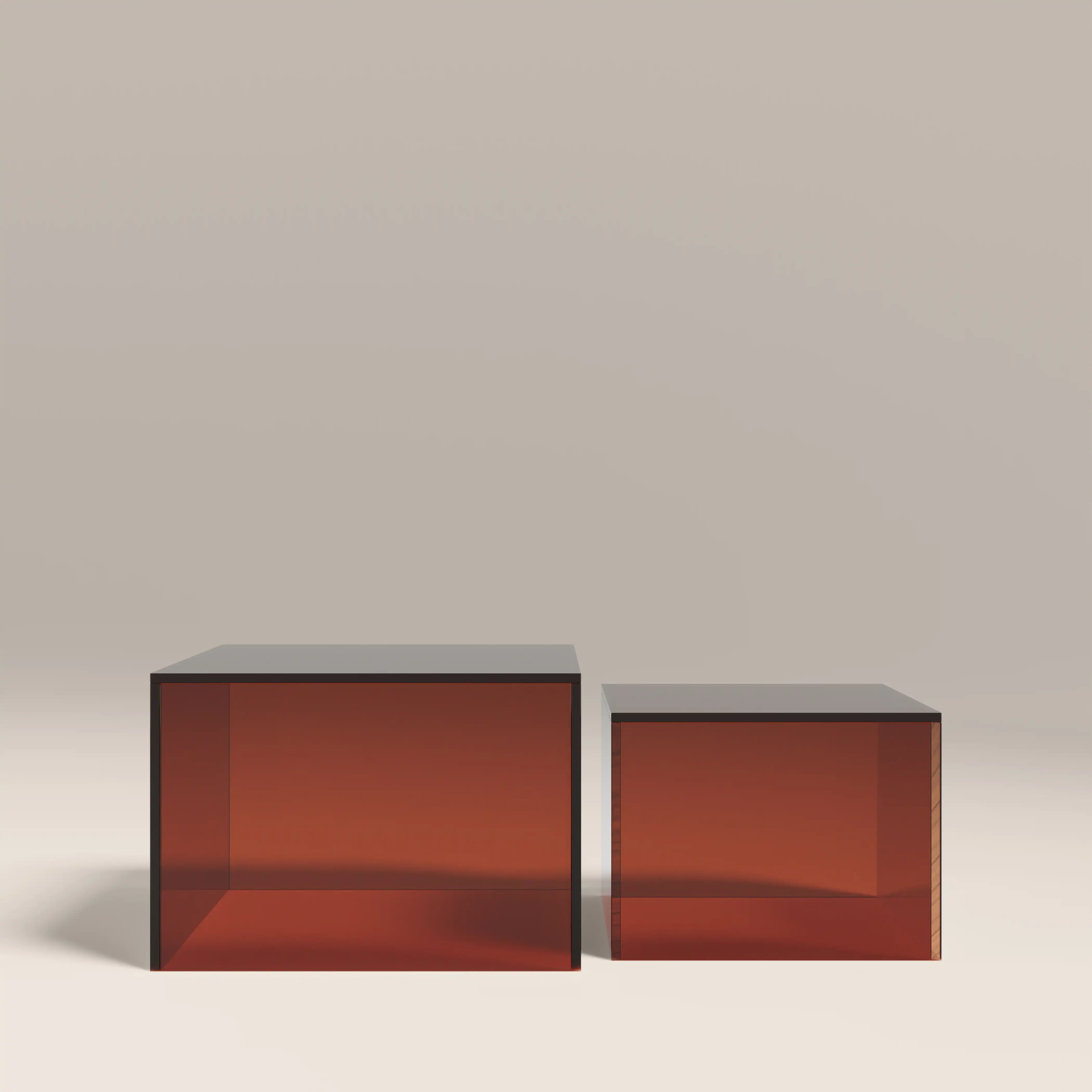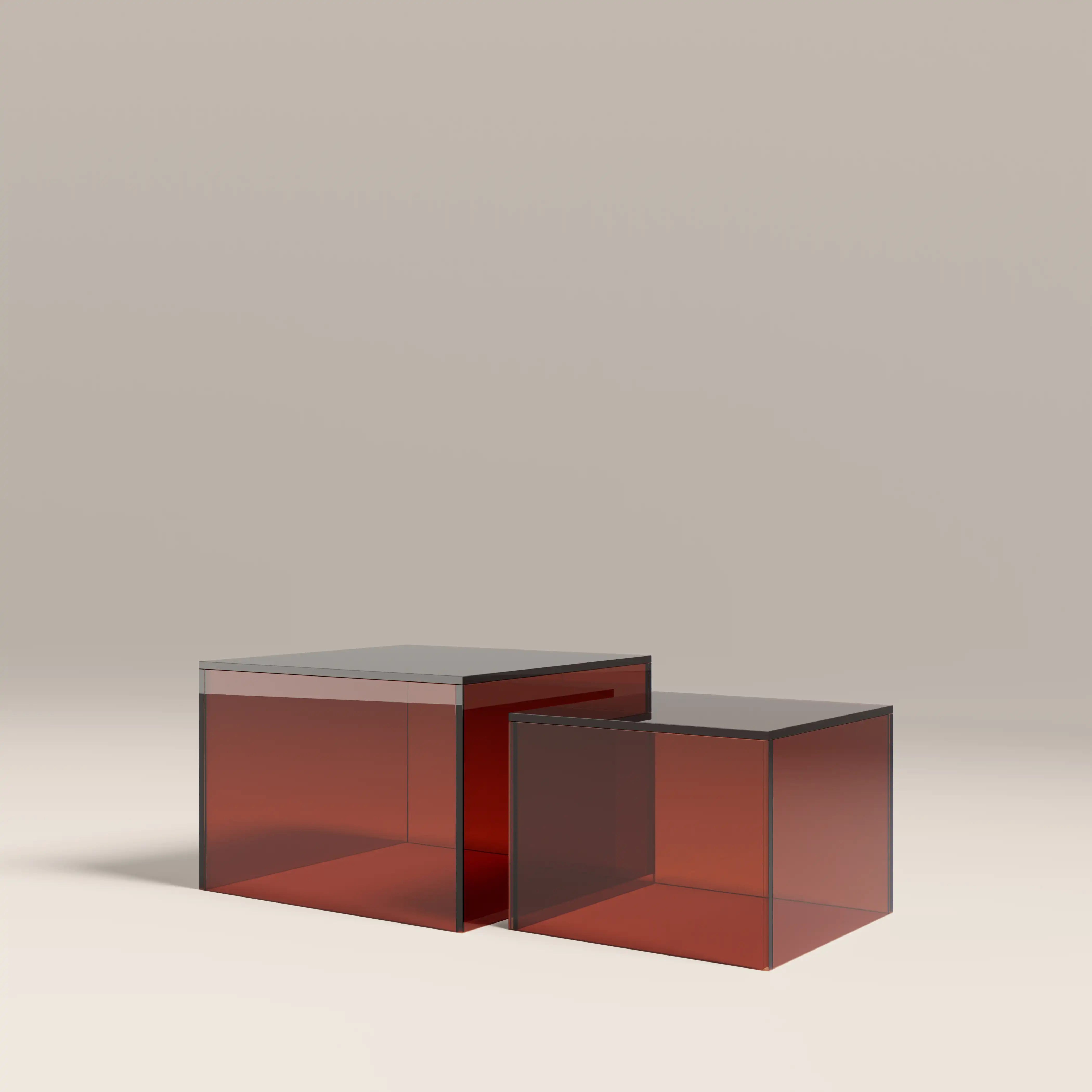 The Dice Coffee Table Set is modern, functional, and full of charm. In amber glass, this cubist design in two sizes gives extra depth to your living space. With its dynamic cube shapes, this set of 2 coffee tables isn't just limited to that sole function; lightweight and easy to move, you can place these Dice Coffee Tables anywhere when displaying key pieces of home decor and sculpture.
