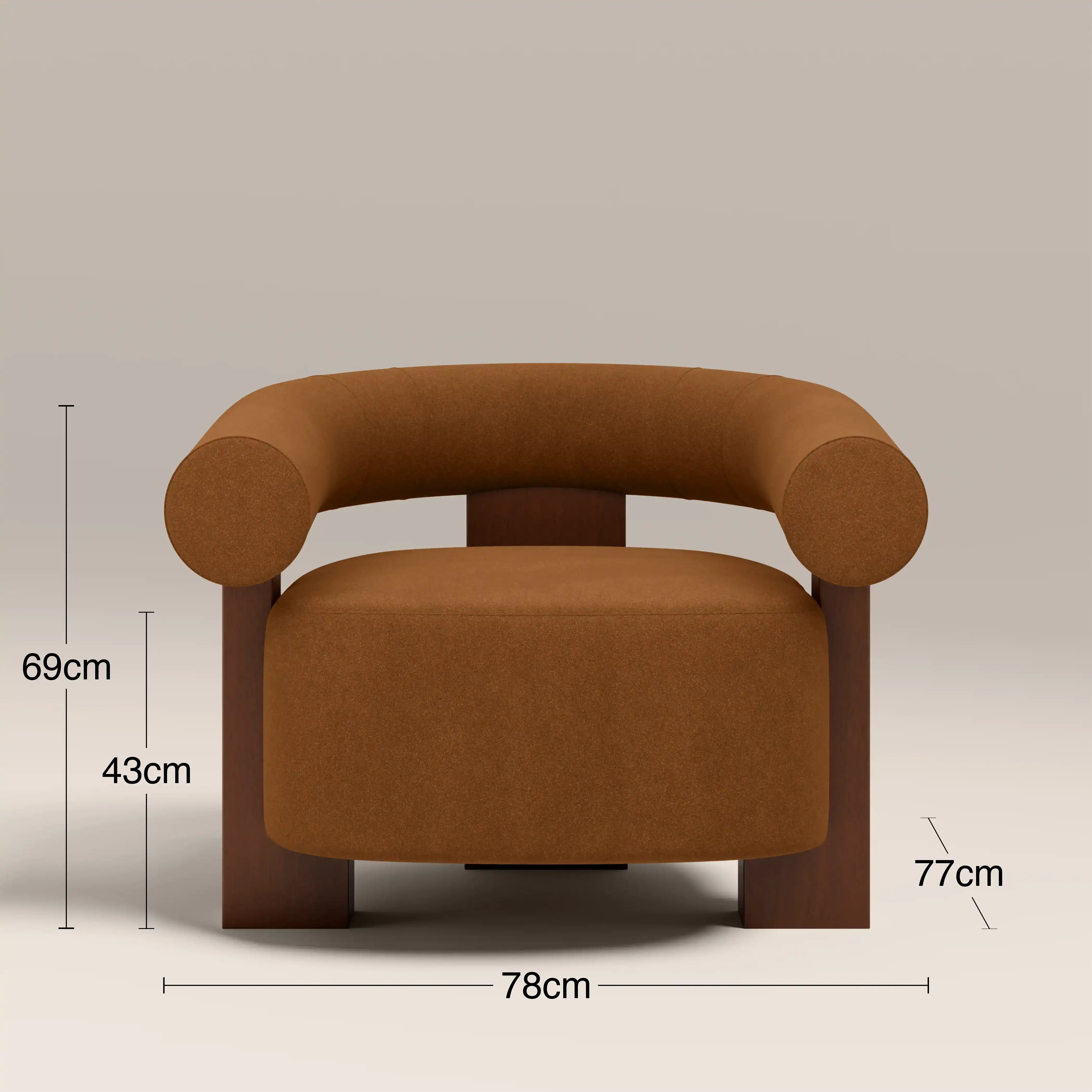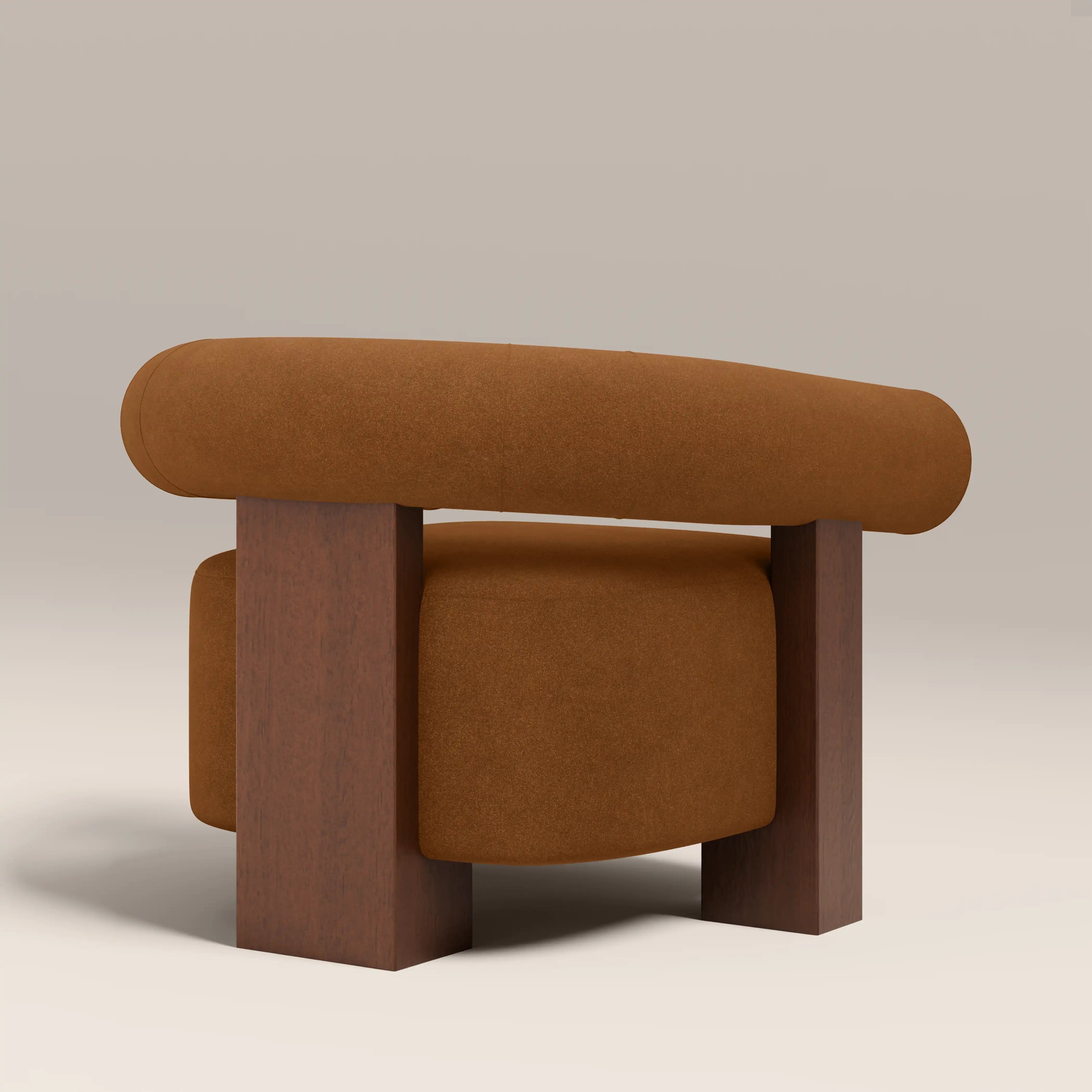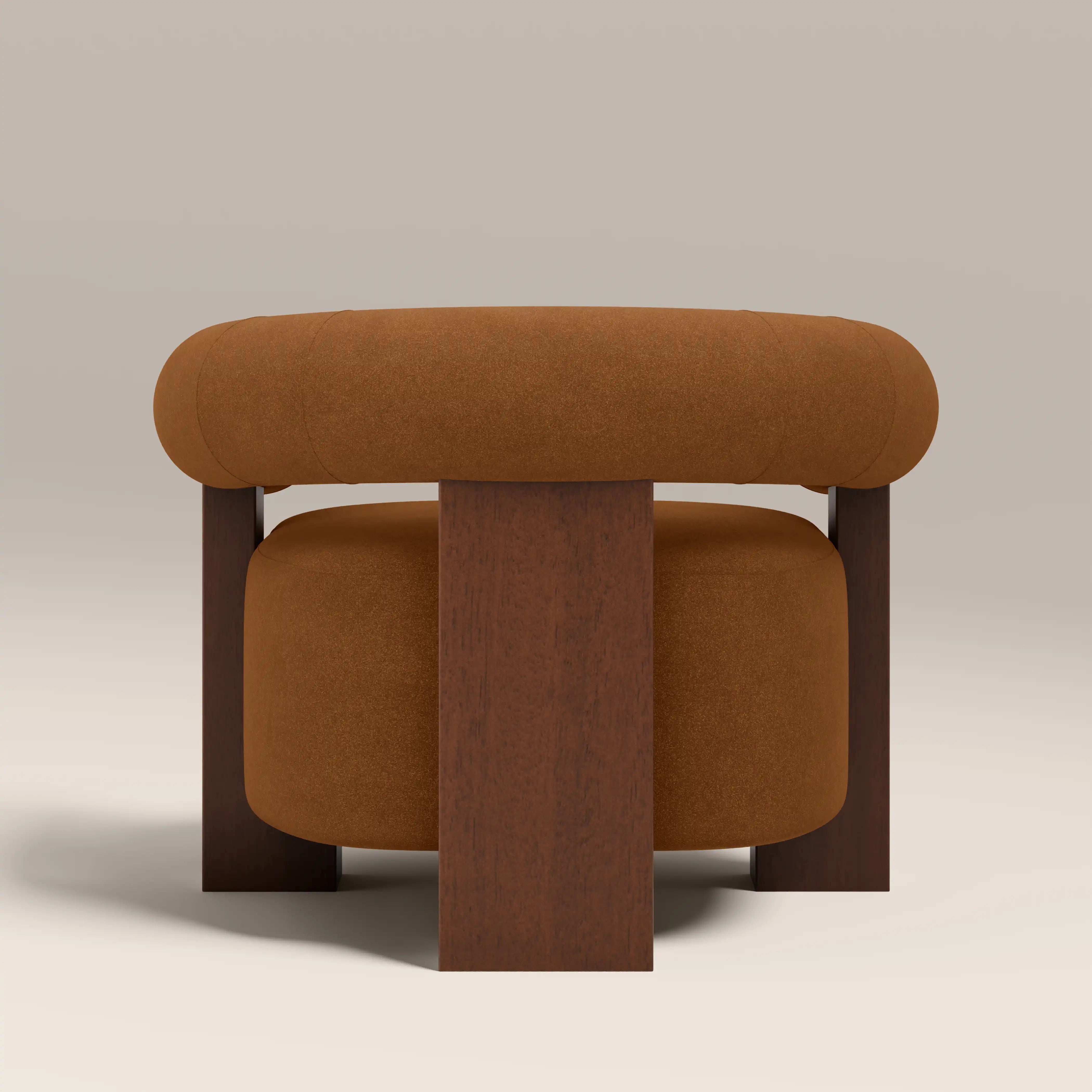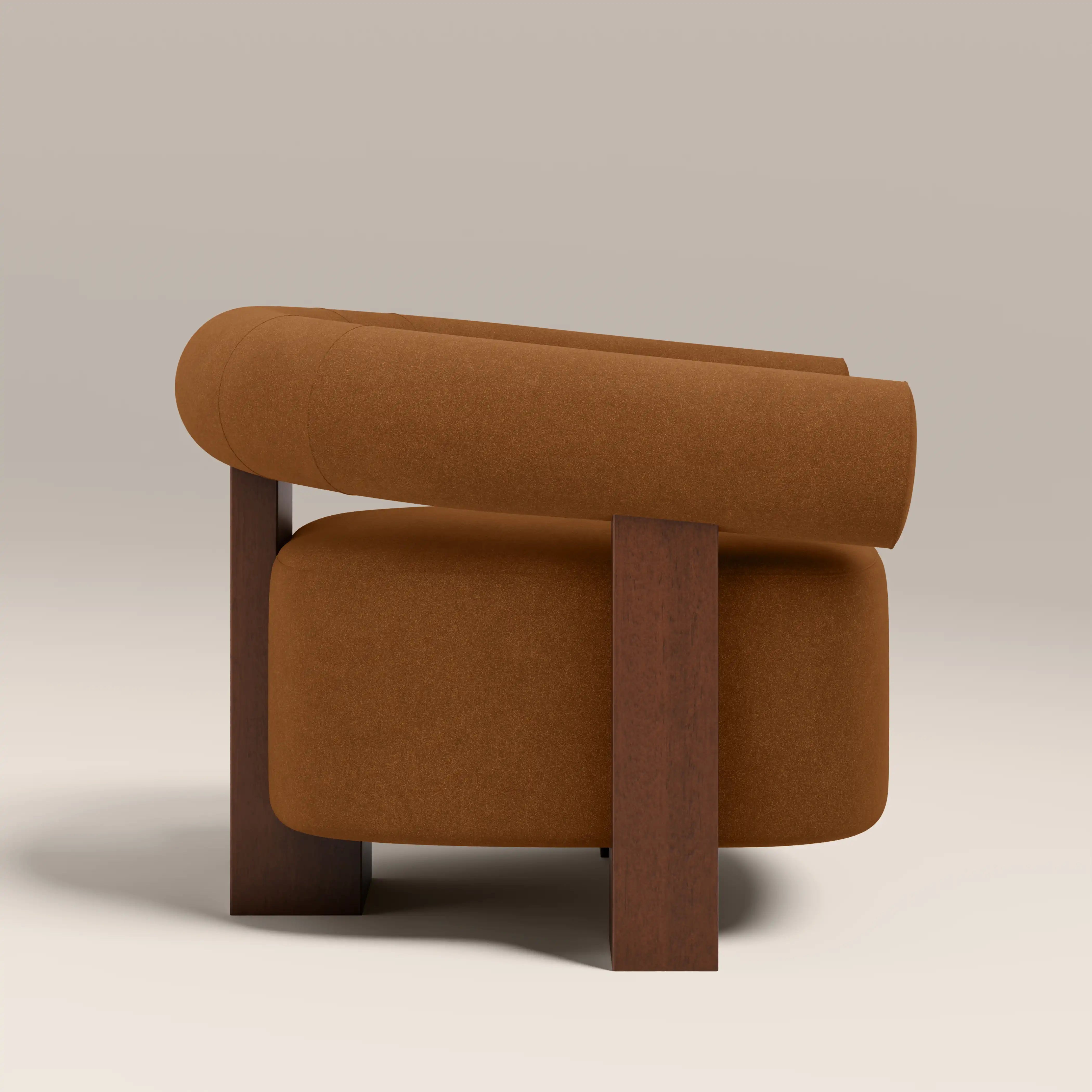 Looking for a statement armchair? The Fawnley turns heads with its swooping armrests and organic curves, reminiscent of Luxe 70s Revival. Upholstered in sustainable mohair-style velvet with a soft spring-supported seat for optimal comfort and durability, this velvet chair is to die for. Finished with walnut-stained wooden legs, perfectly complementing the colour and softness of the caramel brown velvet.