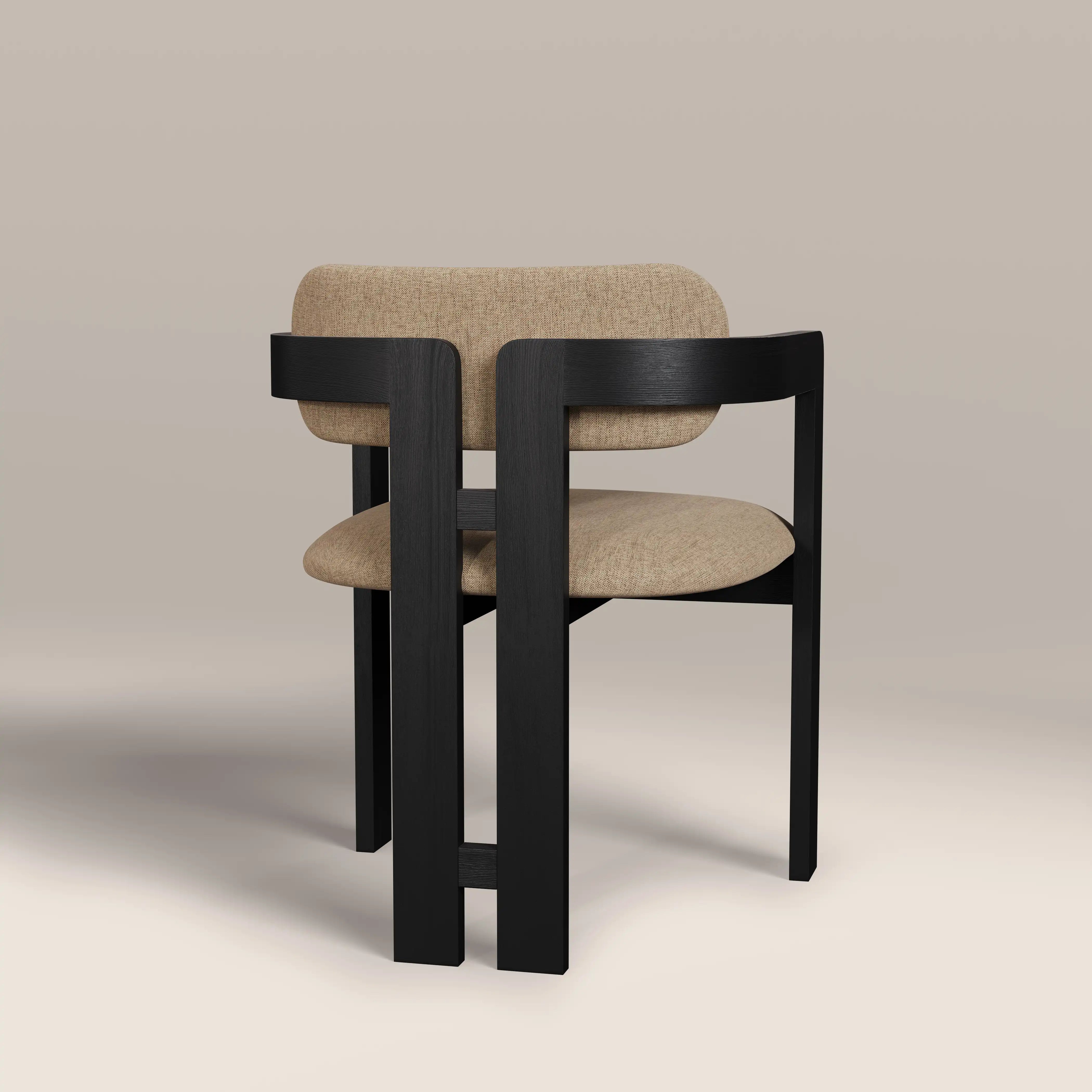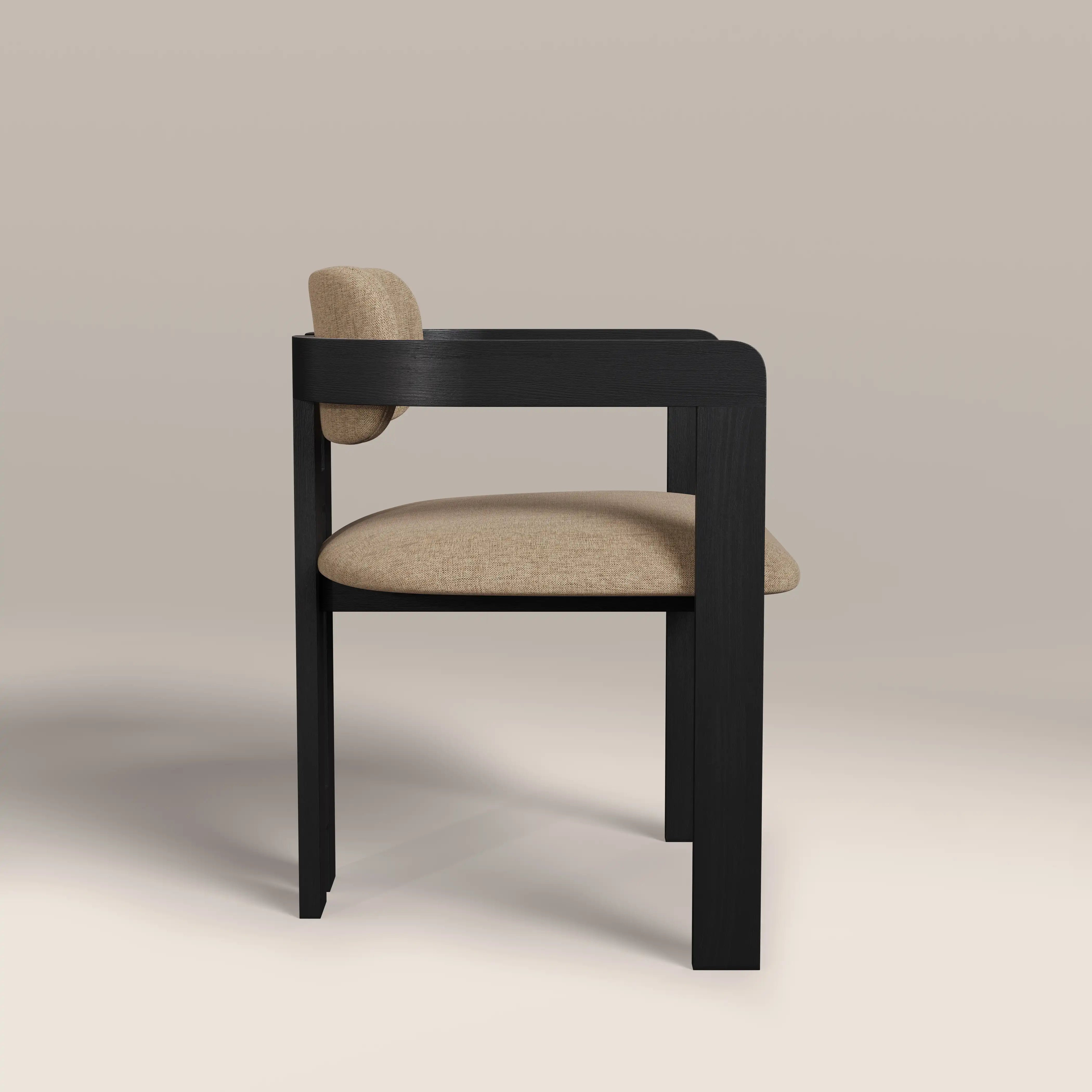 Luxury meets functionality; the Hallie Dining Chair in soft fabric injects that on-trend 70s revival into your home. For a relaxed dining experience, the vintage curves and satisfyingly symmetrical design makes a statement. We love the contrast of rich wood and latte light brown fabric. Take a moment to relax in the Hallie.