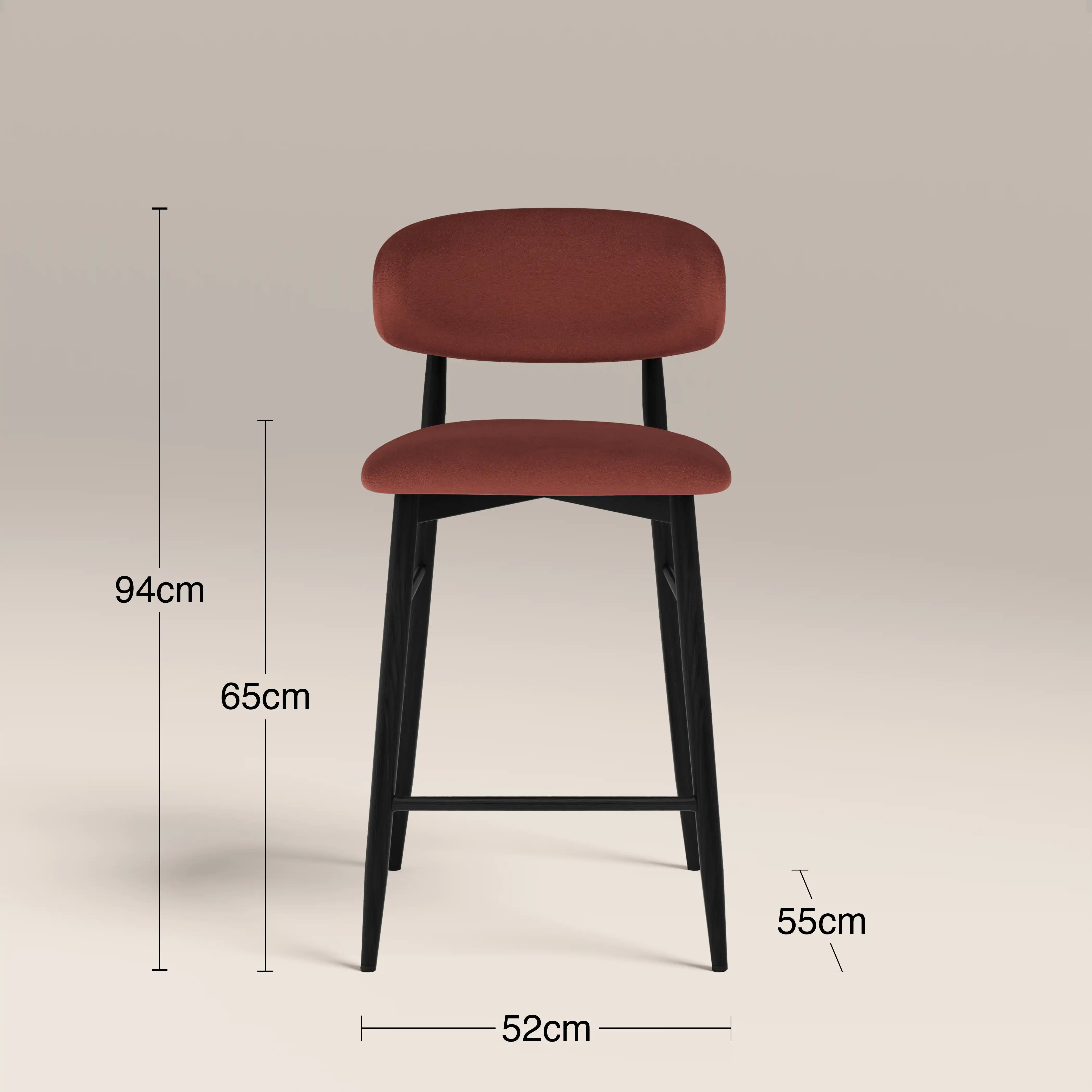 The harmonious blend of Nordic and Mid-Century in the Halston Kitchen Stool makes it an irresistible option for kitchen counters. The curved metal frame has a black finish and is cross-fixed, making the Halston durable and long-lasting for a high quality finish built to last. Crafted for comfort, the seat is upholstered in velvet, soft and textural to the touch, in a rust red hue.