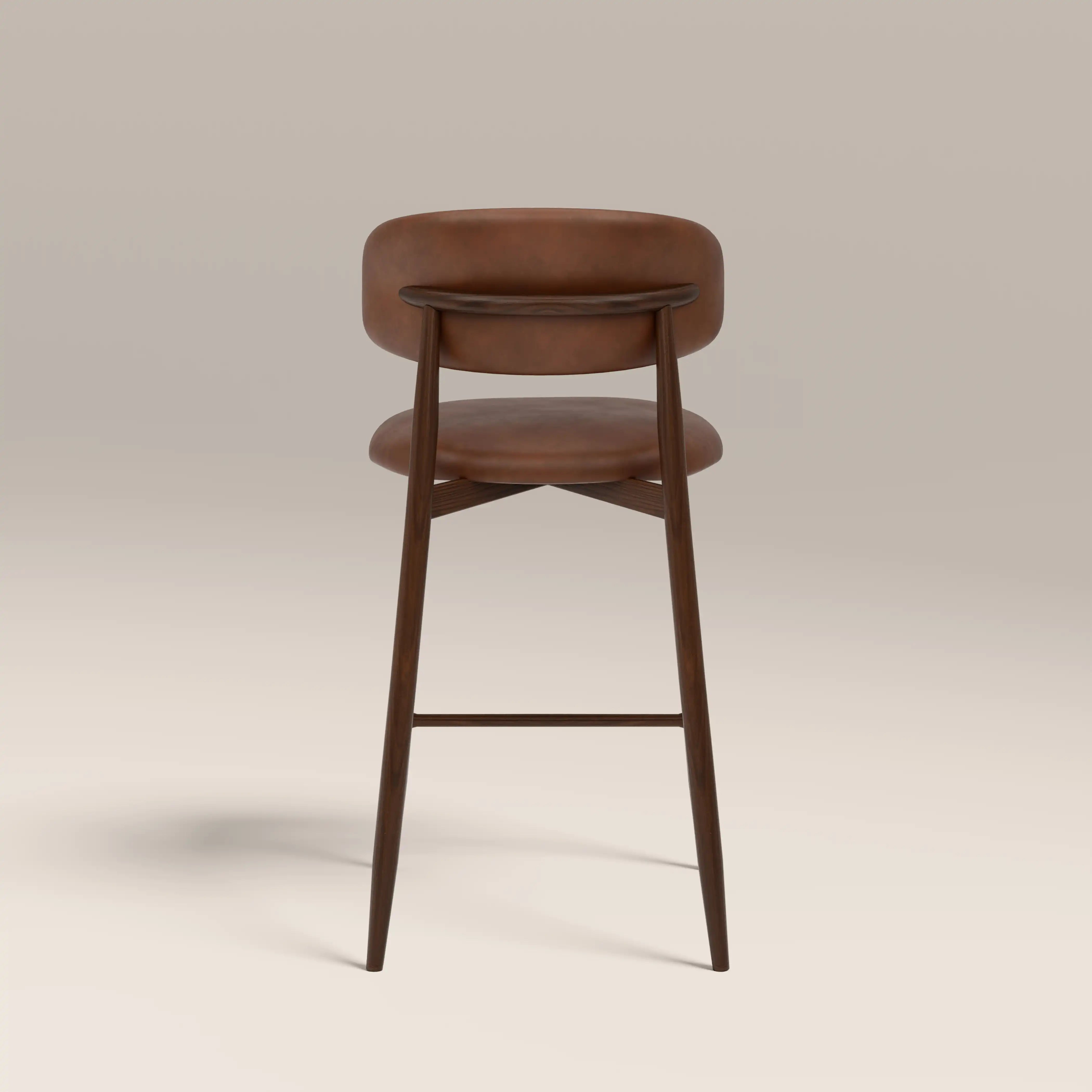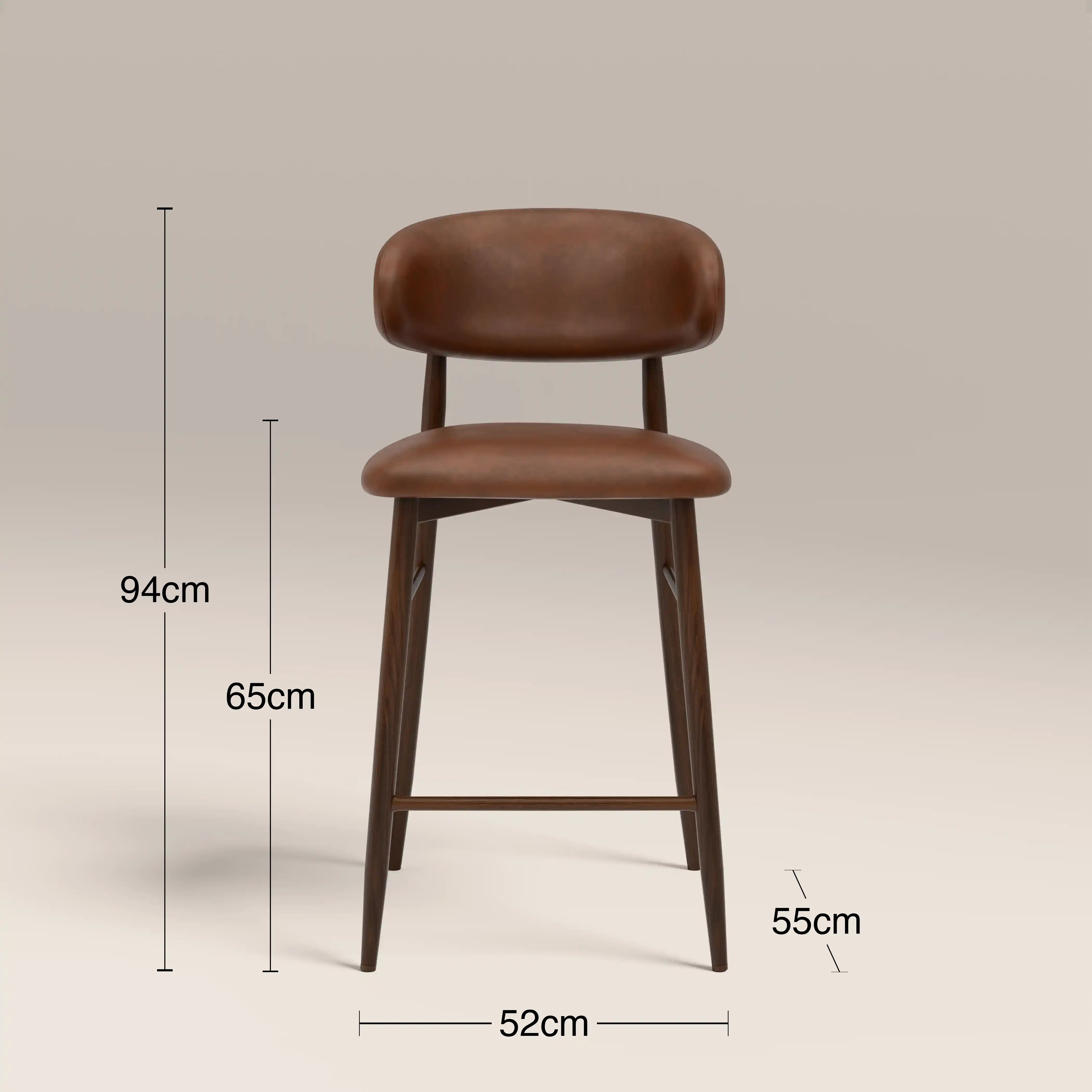 The harmonious blend of Nordic and Mid-Century in the Halston Kitchen Stool makes it an irresistible option for kitchen counters. The curved metal frame has a walnut effect finish and is cross-fixed, making the Halston durable and long-lasting for a high quality finish built to last. Crafted for comfort, the seat is upholstered in soft faux leather in vintage tan.