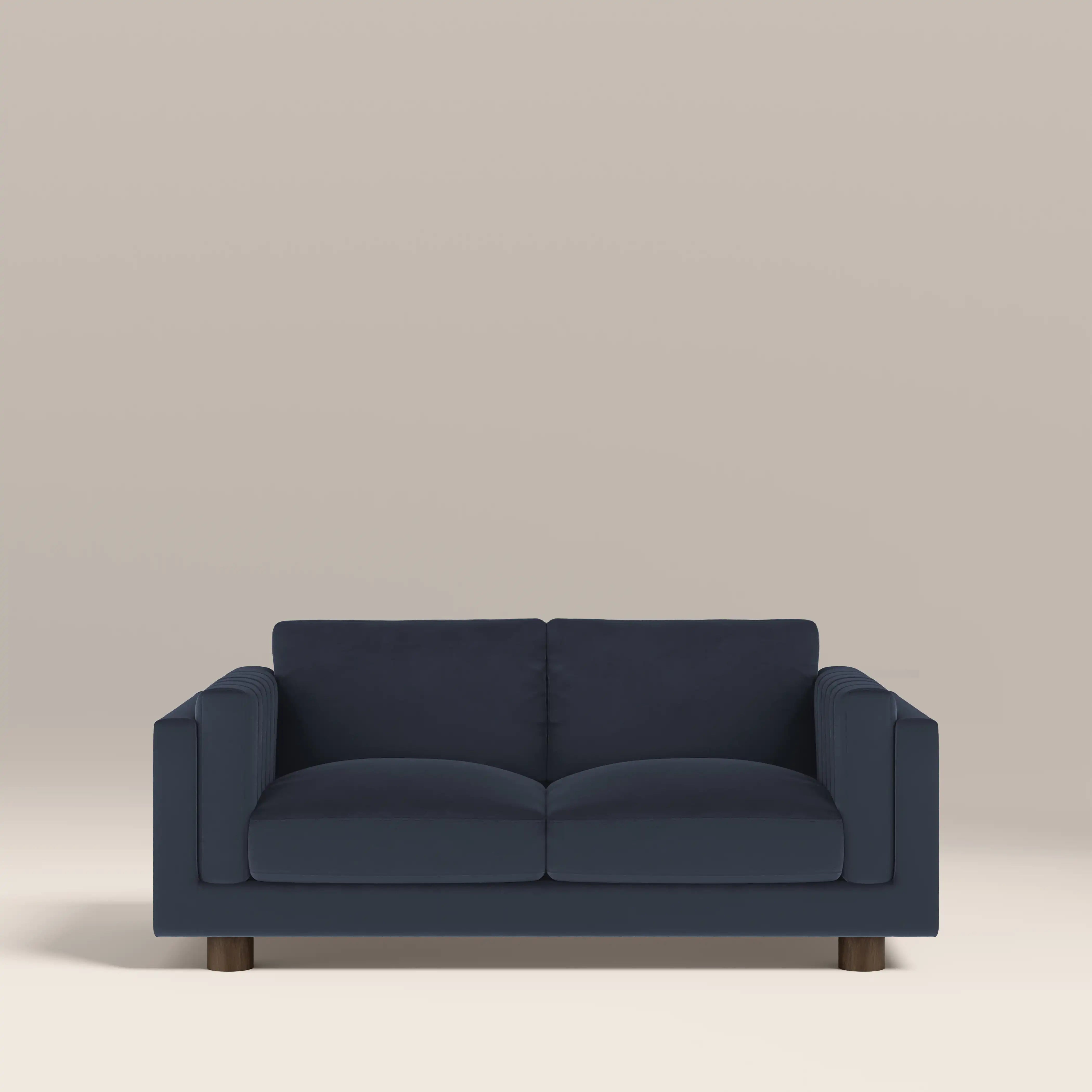 The Halton 2 Seater Sofa; a beautifully crafted velvet sofa that combines classic style with modern comfort. Upholstered in sustainable velvet in dark blue, the Halton 2-Seat Sofa has a deep-set pocket sprung seat with a fibre and feather filling for sublime comfort. The gently curved soft lines, deep cushions, and supportive arms create a welcoming feel, while the structured silhouette is comfort and style in perfect balance.