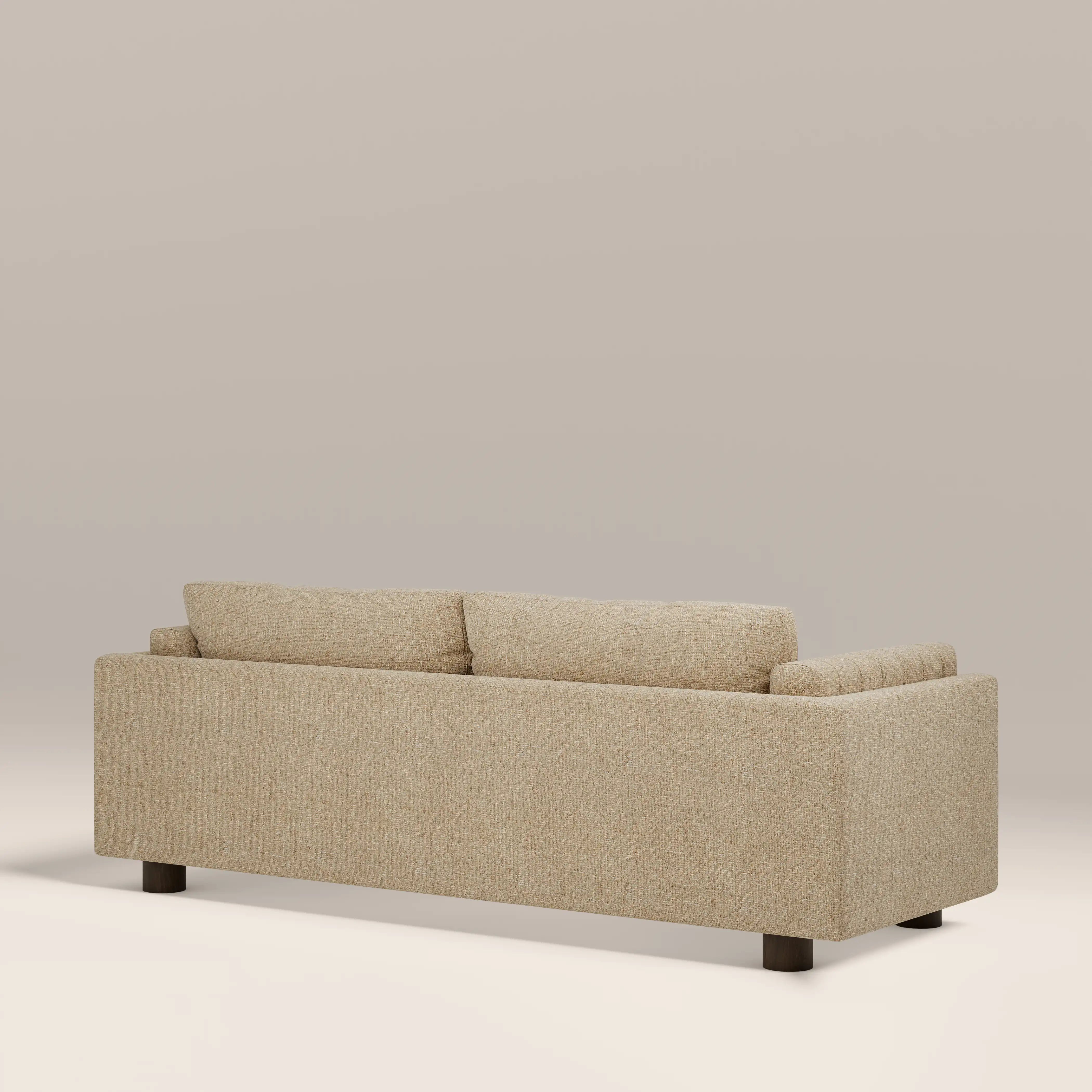 The Halton 3 Seater Sofa; a beautifully crafted boucle sofa that combines classic style with modern comfort. Upholstered in speckled latte brown boucle fabric, the Halton 3-Seat Sofa has a deep-set pocket sprung seat with a fibre and feather filling for sublime comfort. The gently curved soft lines, deep cushions, and supportive arms create a welcoming feel, while the structured silhouette is comfort and style in perfect balance.