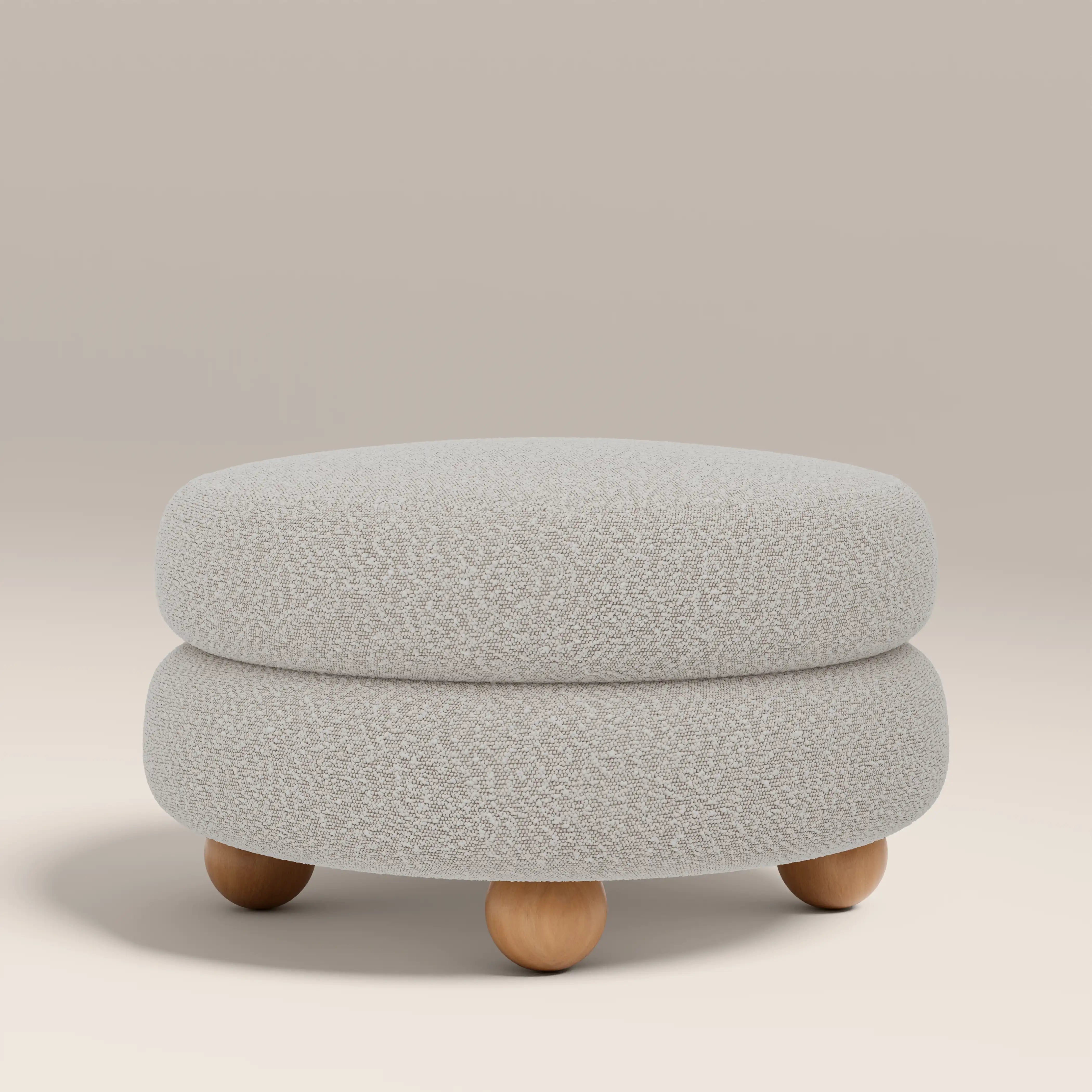 Say hello to the Hazel Boucle Footstool, a little slice of retro cool with a modern twist. In soft and neutral colour with greys and creams speckled through, it's all about laid-back luxe. The playful, 70s-inspired design features two curved spheres resting on three wooden balls for elevated style. Perfect for kicking back in the living room or adding flair to your bedroom, this footstool is a statement piece that brings cosy vibes.