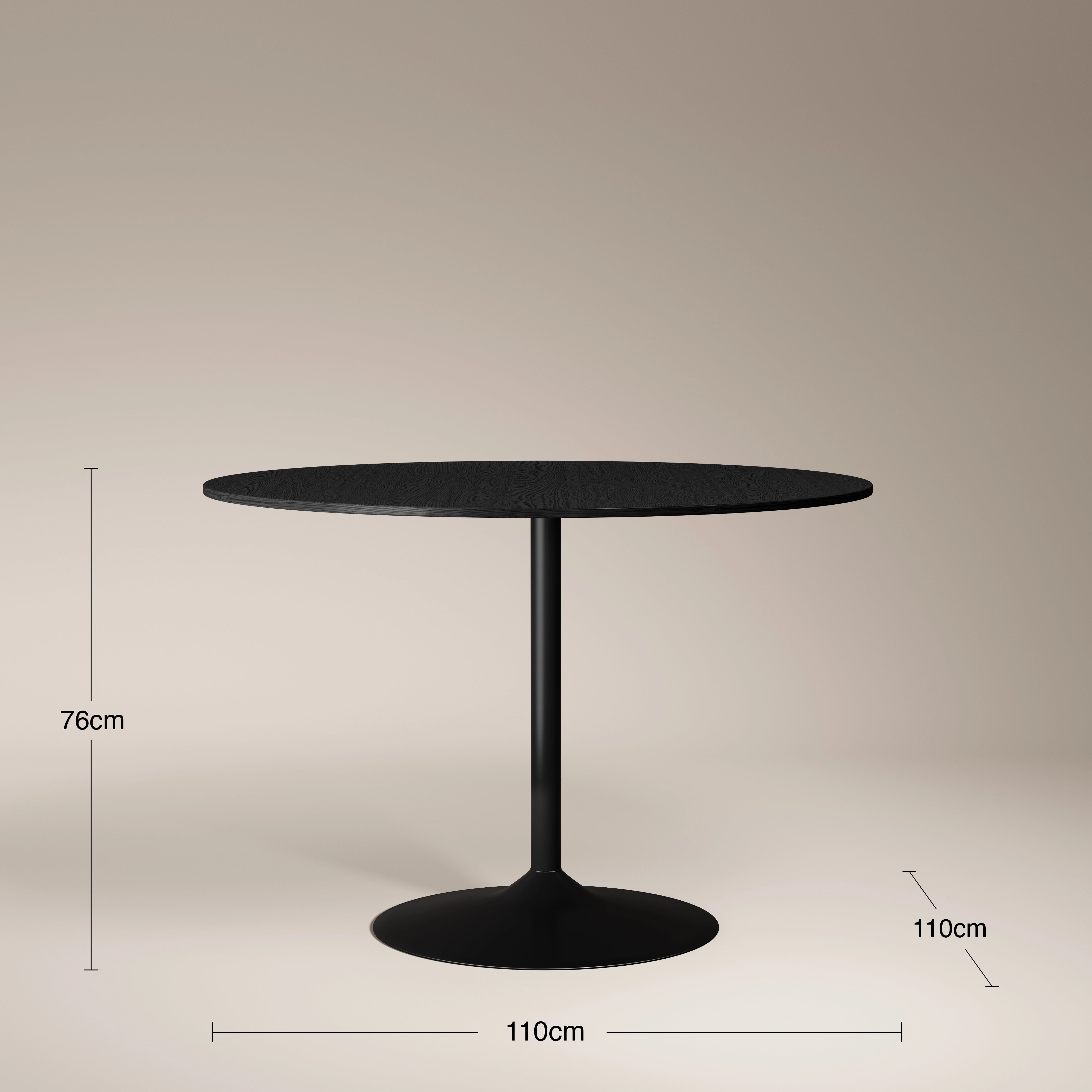 The Isla 4 Seat Dining Table brings a luxurious focal point to your dining space. The round, ash black table top and black metal pillar base offers a blend of materials that feels high-end yet homely. Perfect for utilising compact spaces with its simple and elegant design.