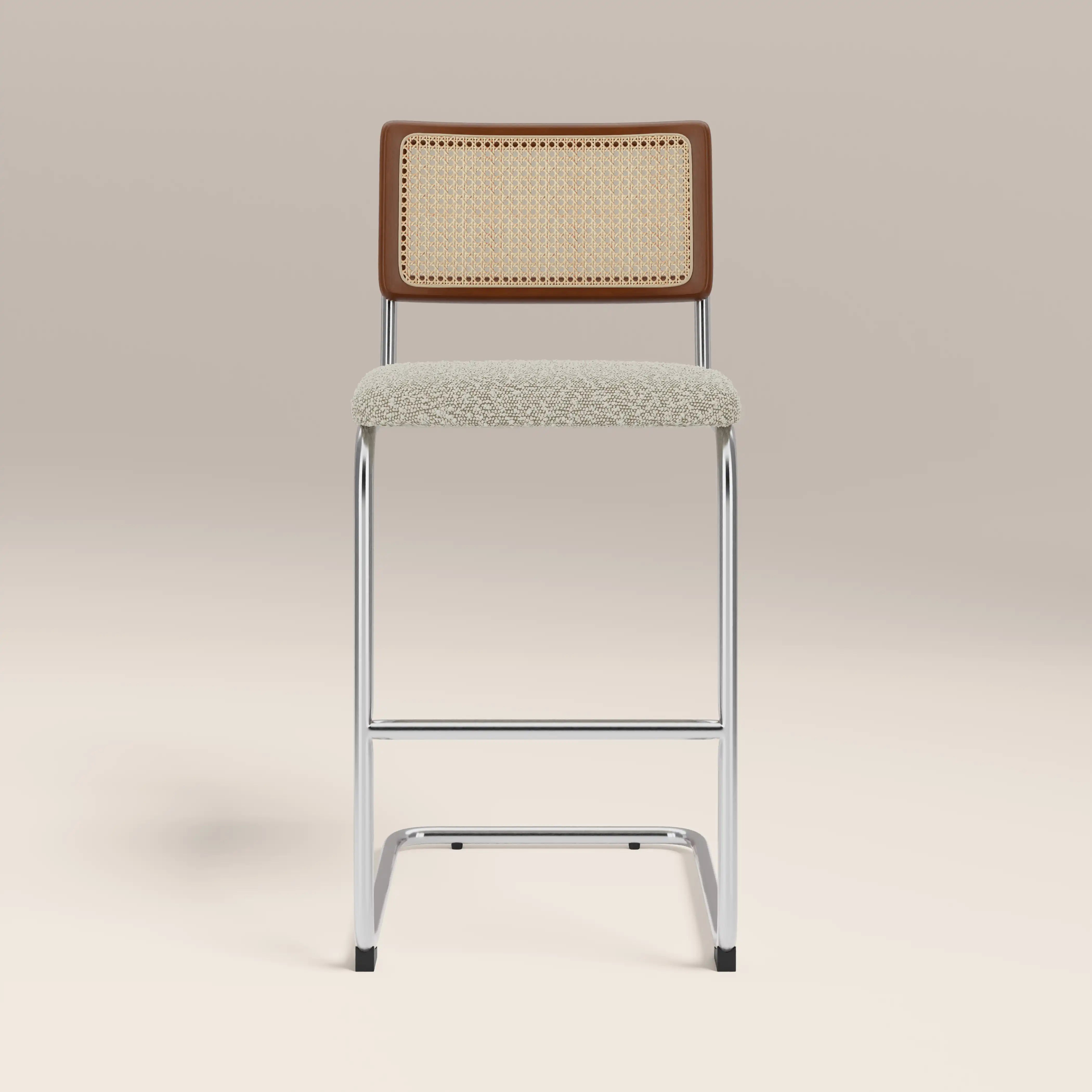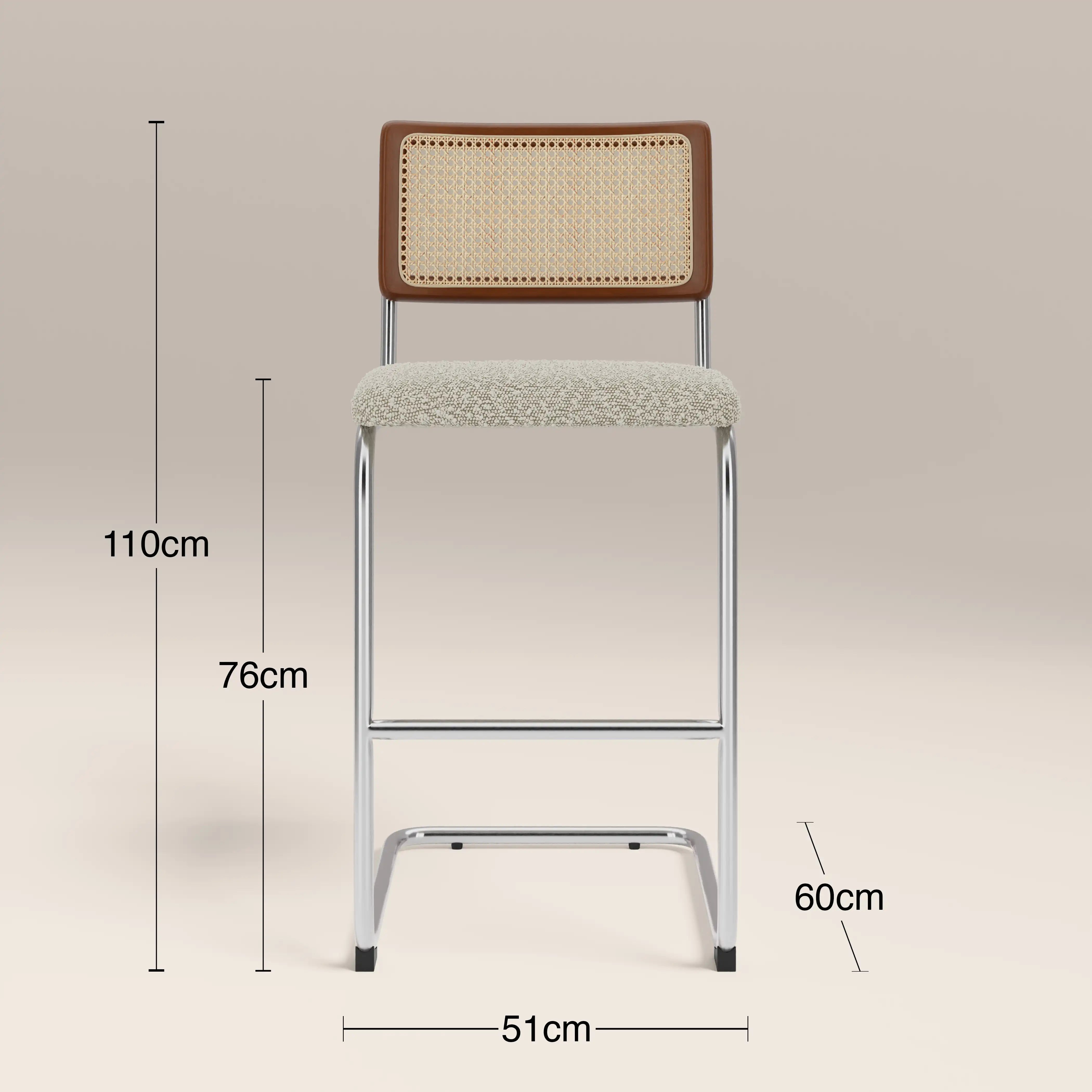 The Kenton Range is instantly recognisable for its Bauhaus roots. With an S-shaped framework and blend of modernist materials including a speckled stone boucle seat and chrome metal frame with a walnut-stained wood and cane backrest. This Kenton Cantilever Bar Stool is a staple in homes for its beautifully simple design. Considered one of the most influential designs of the 20th century, this bar stool has a timeless appeal you've just got to have in your kitchen.