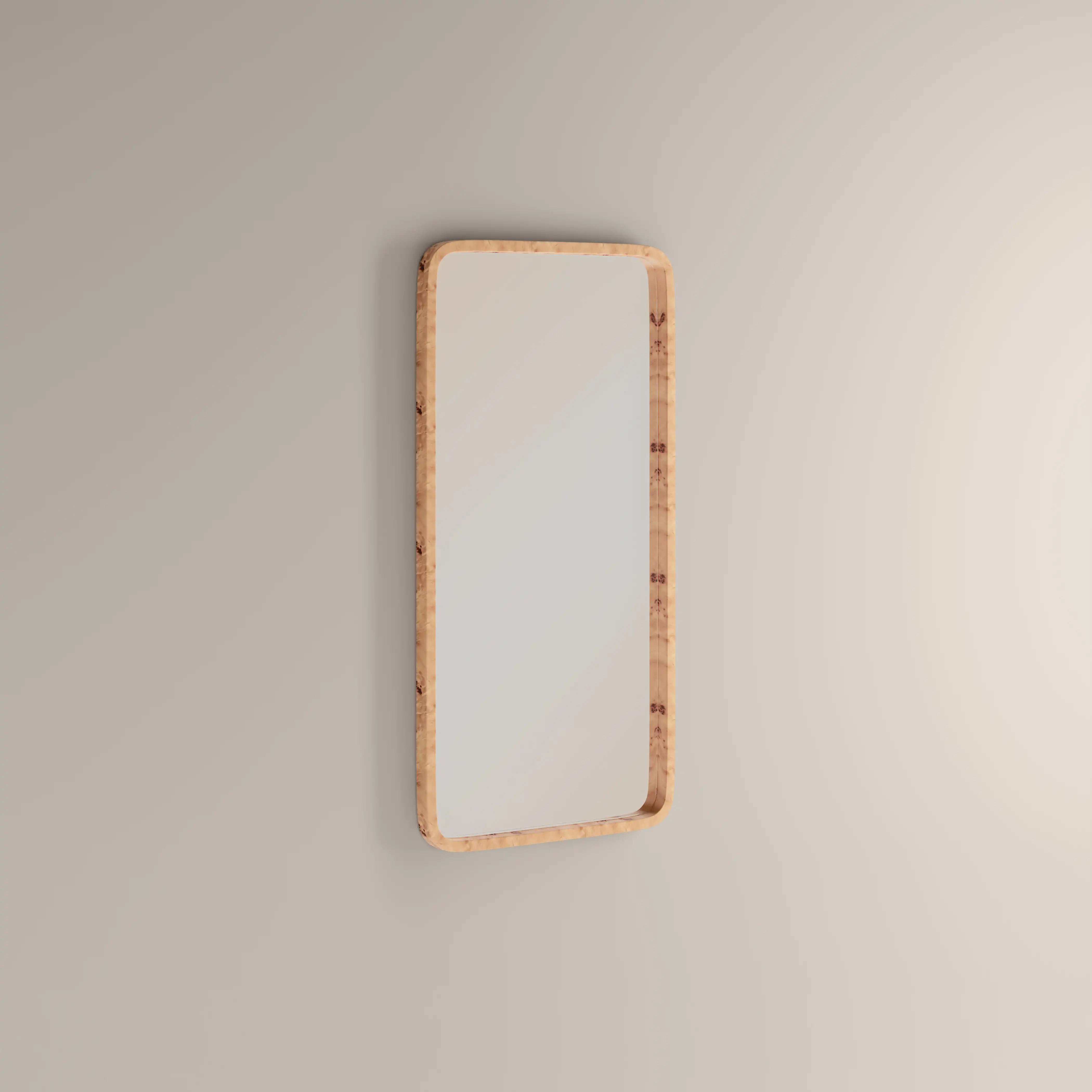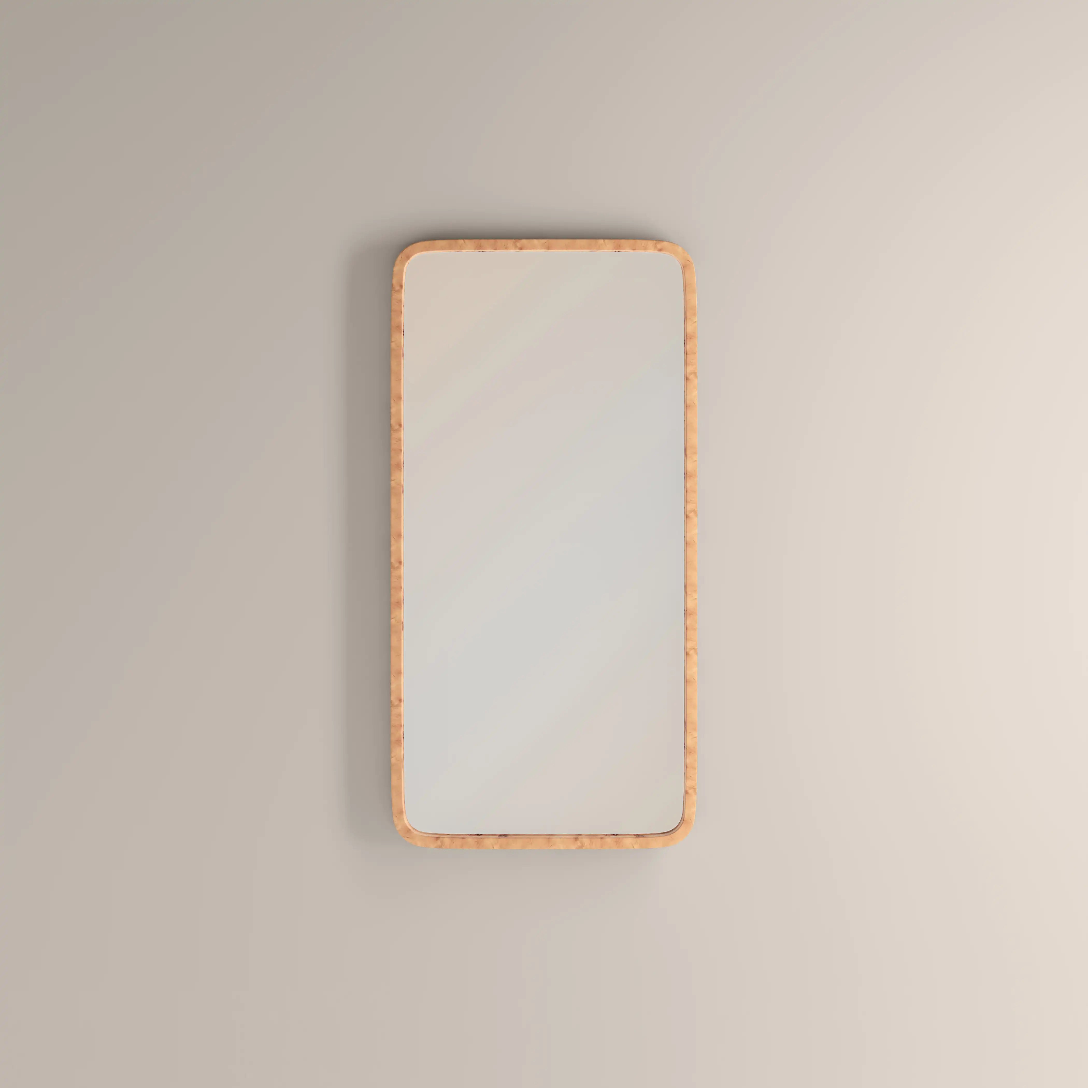 An understated shape with a luxurious burl wood frame, the Kolson Full Length Mirror is a classic mirror, ideal for opening up spaces. The elegant curved edges of the burl wood frame soften harsh interiors and complement 70s wooden pieces throughout the home. The naturally occurring knots of burl wood offer a one-of-a-kind piece with distinctive patterning. Can be hung both vertically and horizontally.