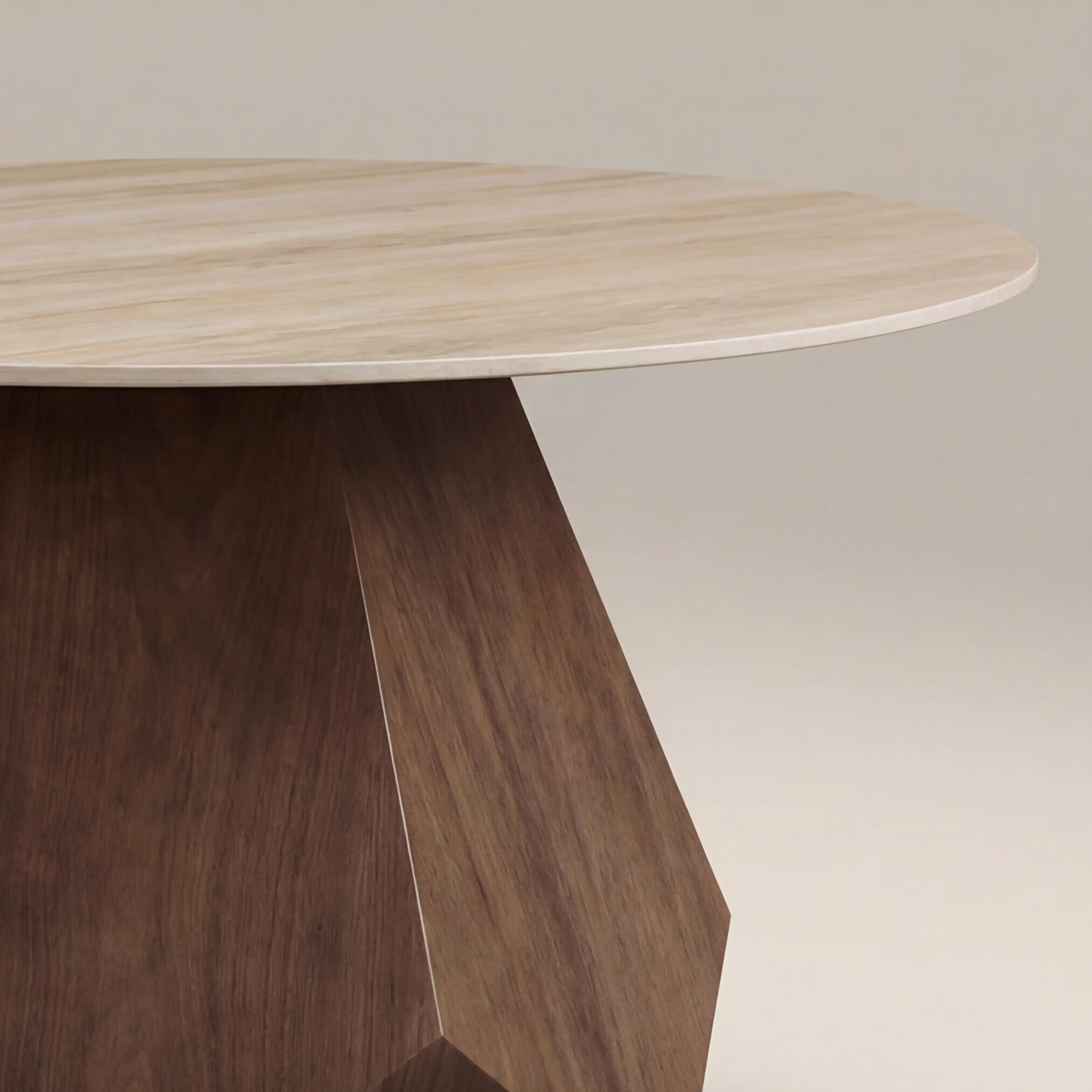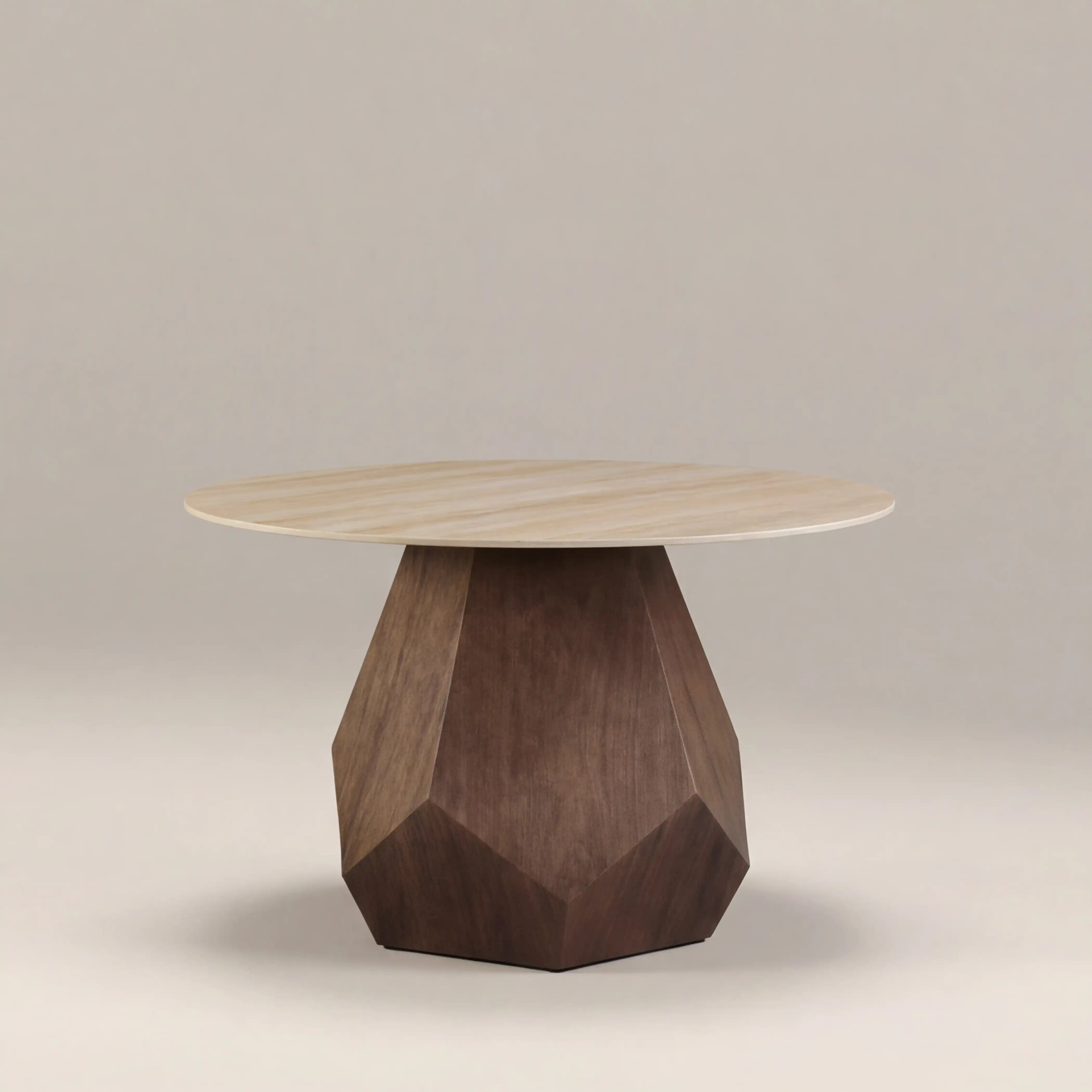 With striking lines and natural textures, meet the Lilian Dining Table. The neutral palette has the ultimate contemporary feel, perfect for minimalist lovers who value form, function, and beauty, but let's talk about that faceted base; the dynamic lines of this head turning base offer sculptural elevation to dining settings.