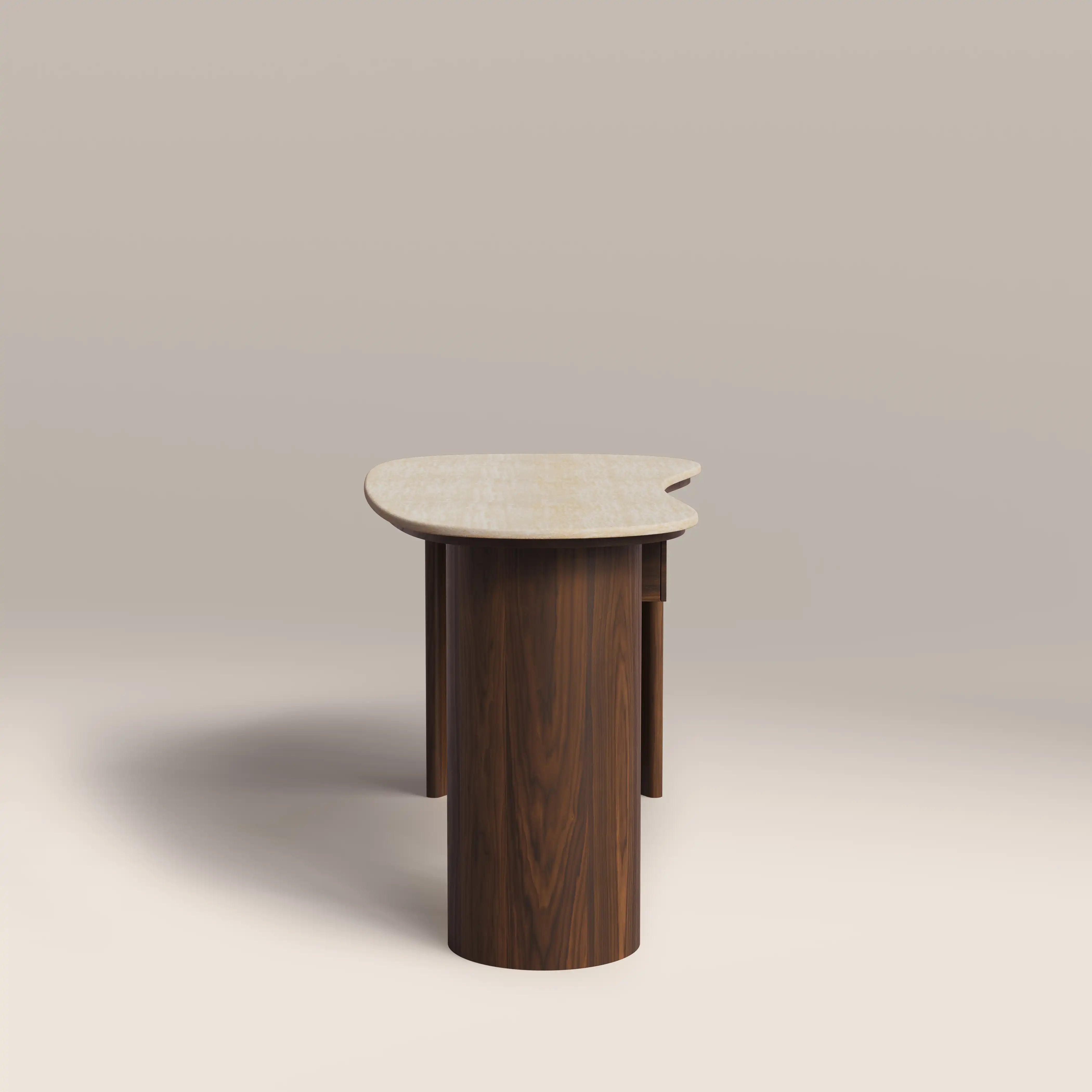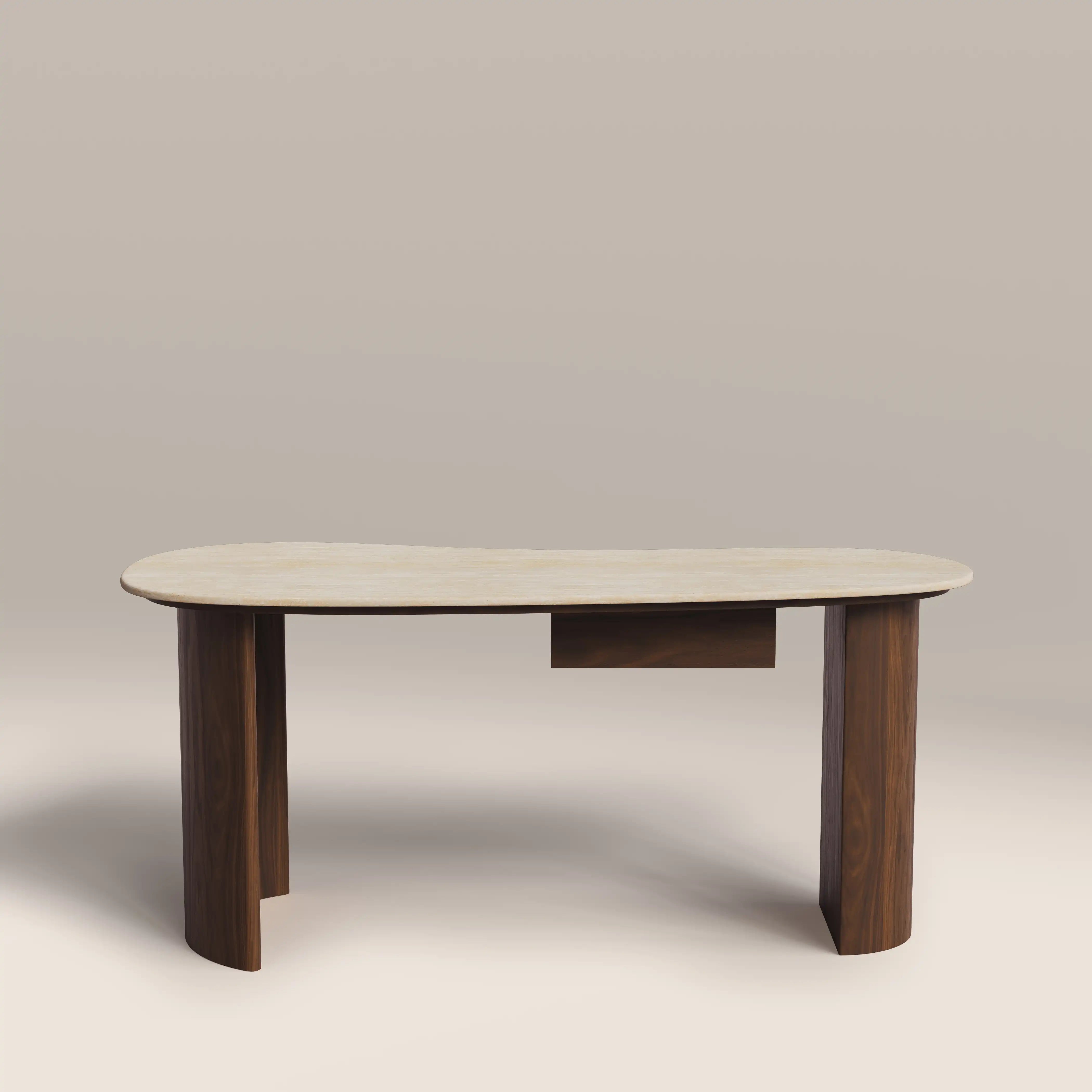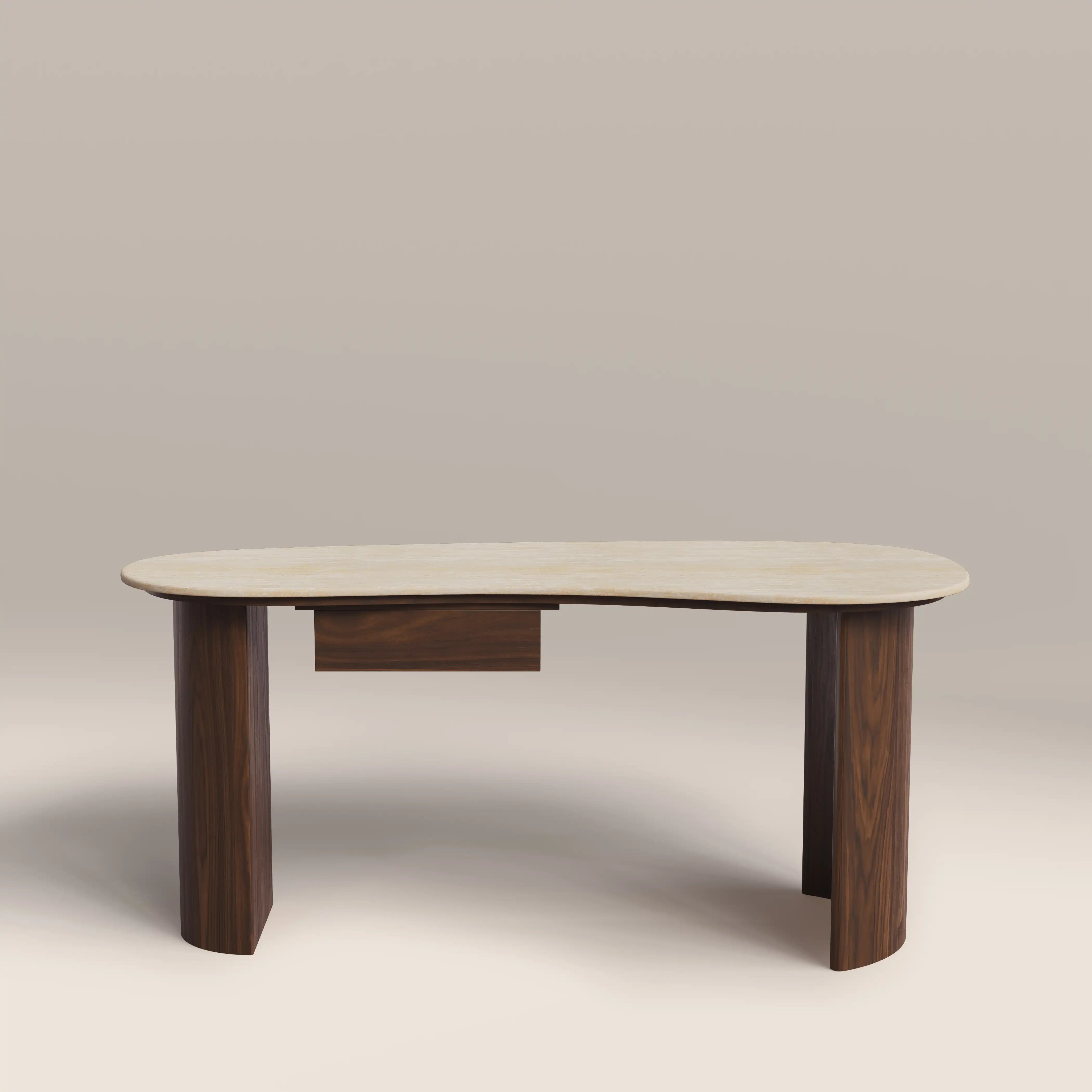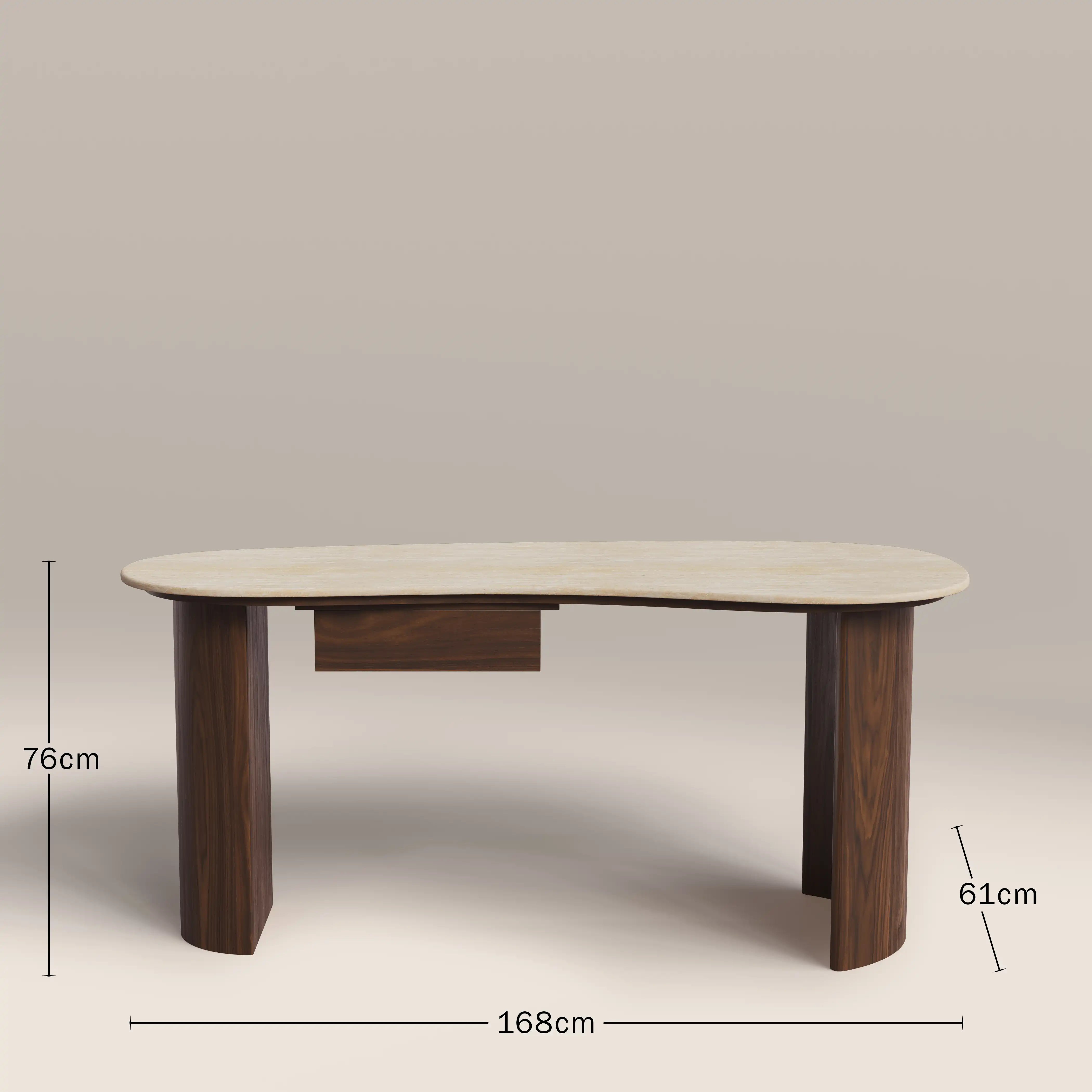 This is no ordinary home office desk. With its curved lines and distinct kidney-shaped top, the Lois Desk with drawer has a travertine effect tabletop with walnut wood effect legs. Give the same love to your WFH setup as you have done with every other room in the home, and you'll be bossing every Teams call.