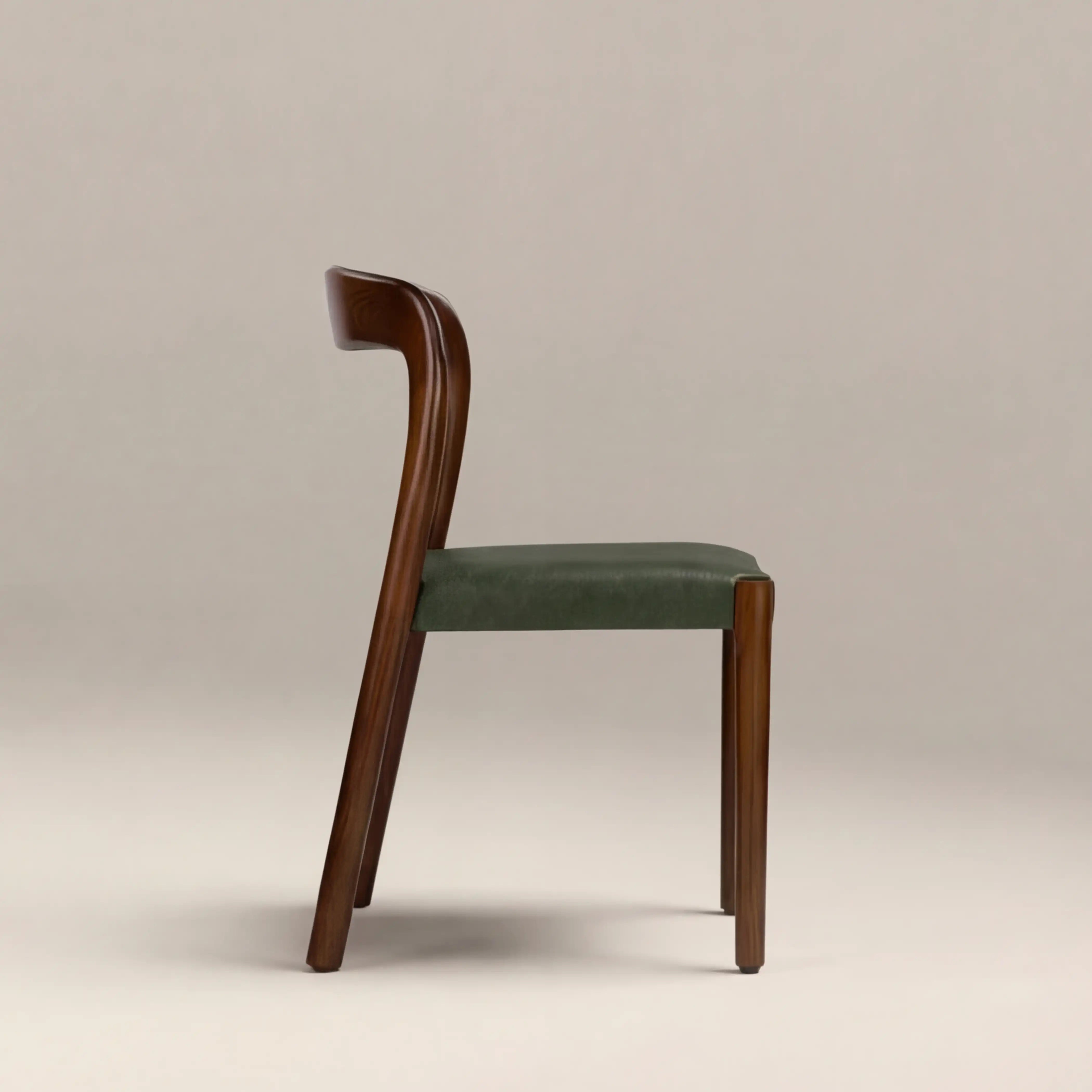 The Madeleine Wooden Dining Chair is the epitome of Mid-Century Modern Design. With a curved walnut-stained wooden backrest and vintage green faux leather seat, this earthy and rich colour palette evokes MCM instantly, upgrading your dining room from bland to envy-inducing in an instant. The Madeleine is style meets functionality with this dining space showstopper that is also stackable.