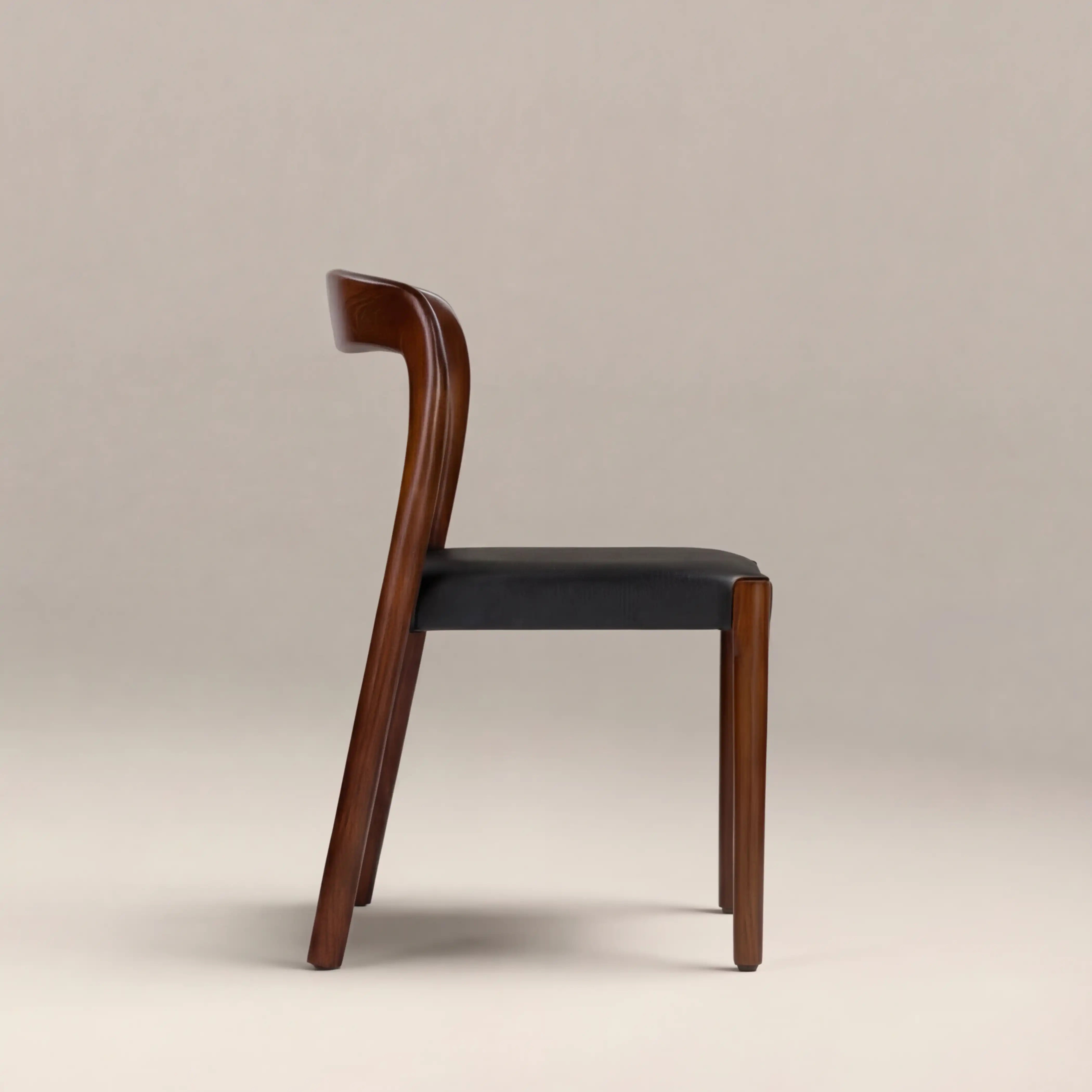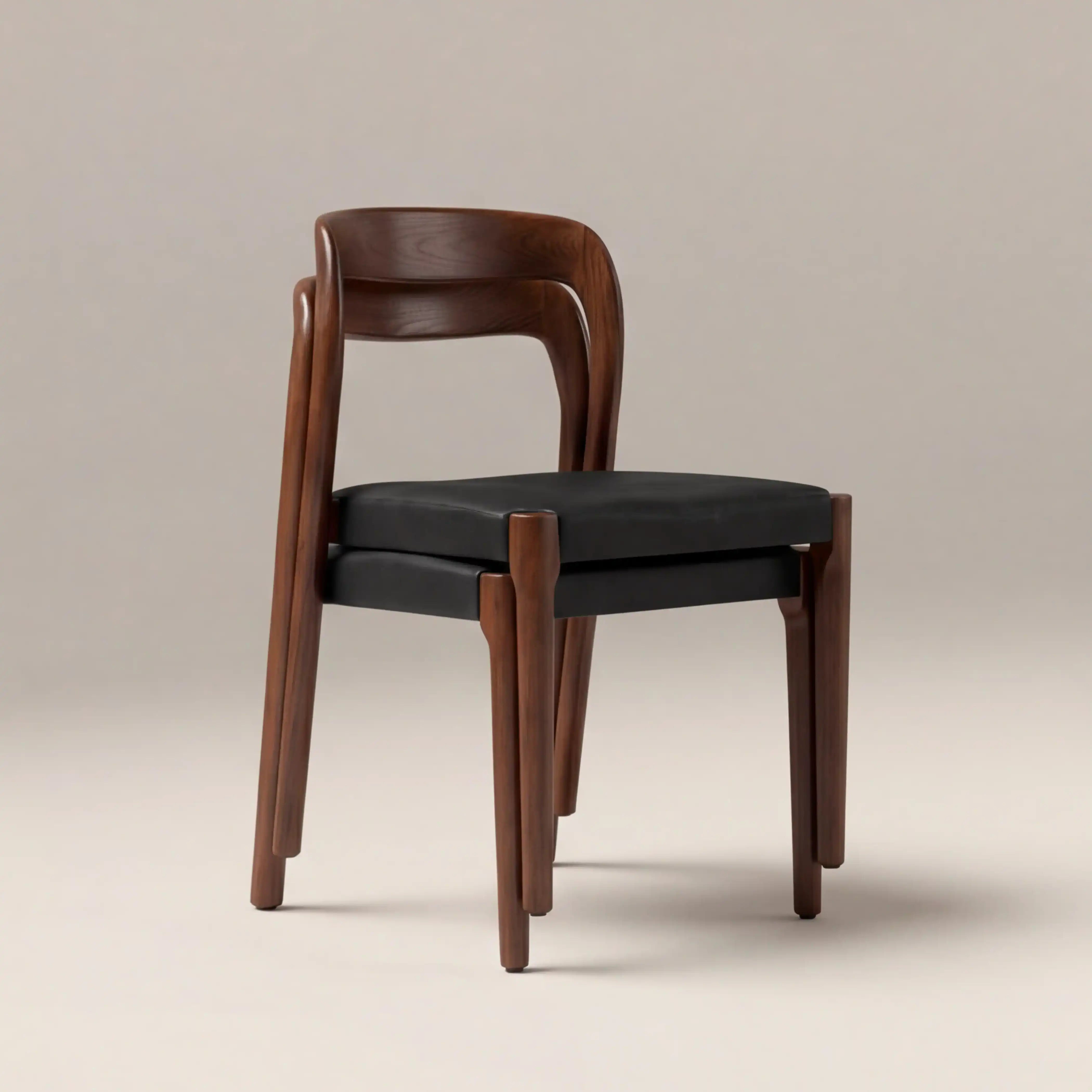 The Madeleine Wooden Dining Chair is the epitome of Mid-Century Modern Design. With a curved walnut-stained wooden backrest and vintage black faux leather seat, this earthy and rich colour palette evokes MCM instantly, upgrading your dining room from bland to envy-inducing in an instant. The Madeleine is style meets functionality with this dining space showstopper that is also stackable.