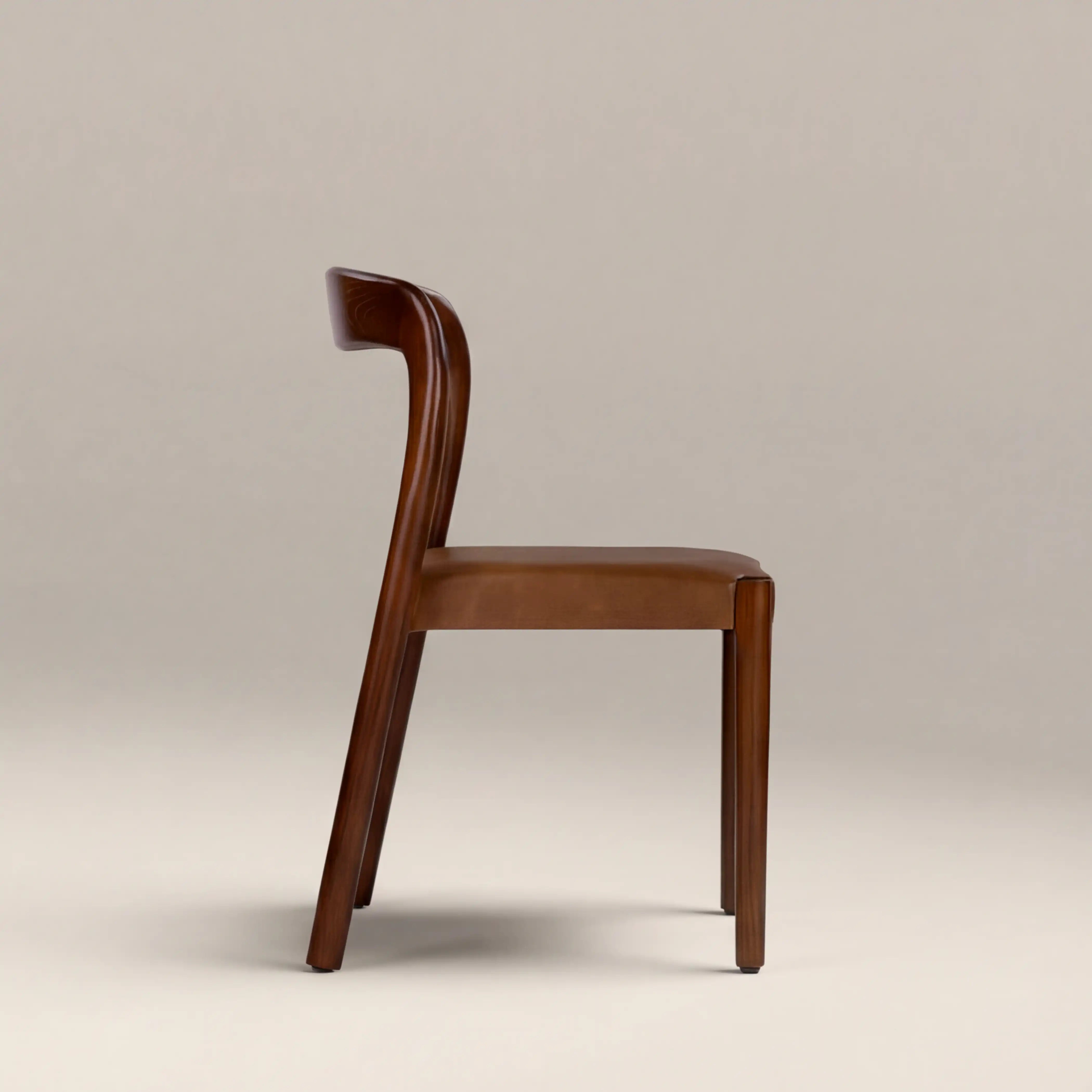 The Madeleine Wooden Dining Chair is the epitome of Mid-Century Modern Design. With a curved walnut-stained wooden backrest and vintage tan faux leather seat, this earthy and rich colour palette evokes MCM instantly, upgrading your dining room from bland to envy-inducing in an instant. The Madeleine is style meets functionality with this dining space showstopper that is also stackable.