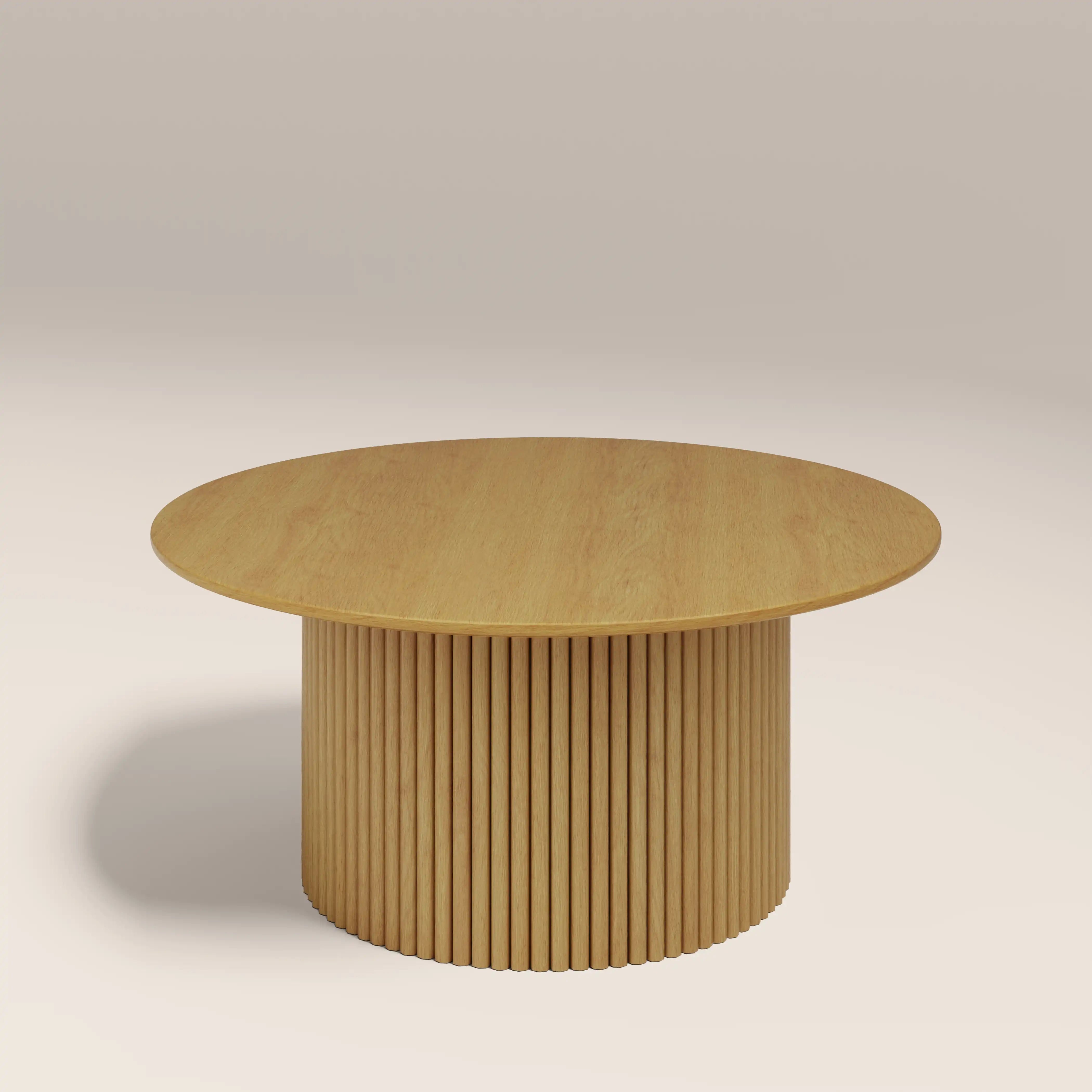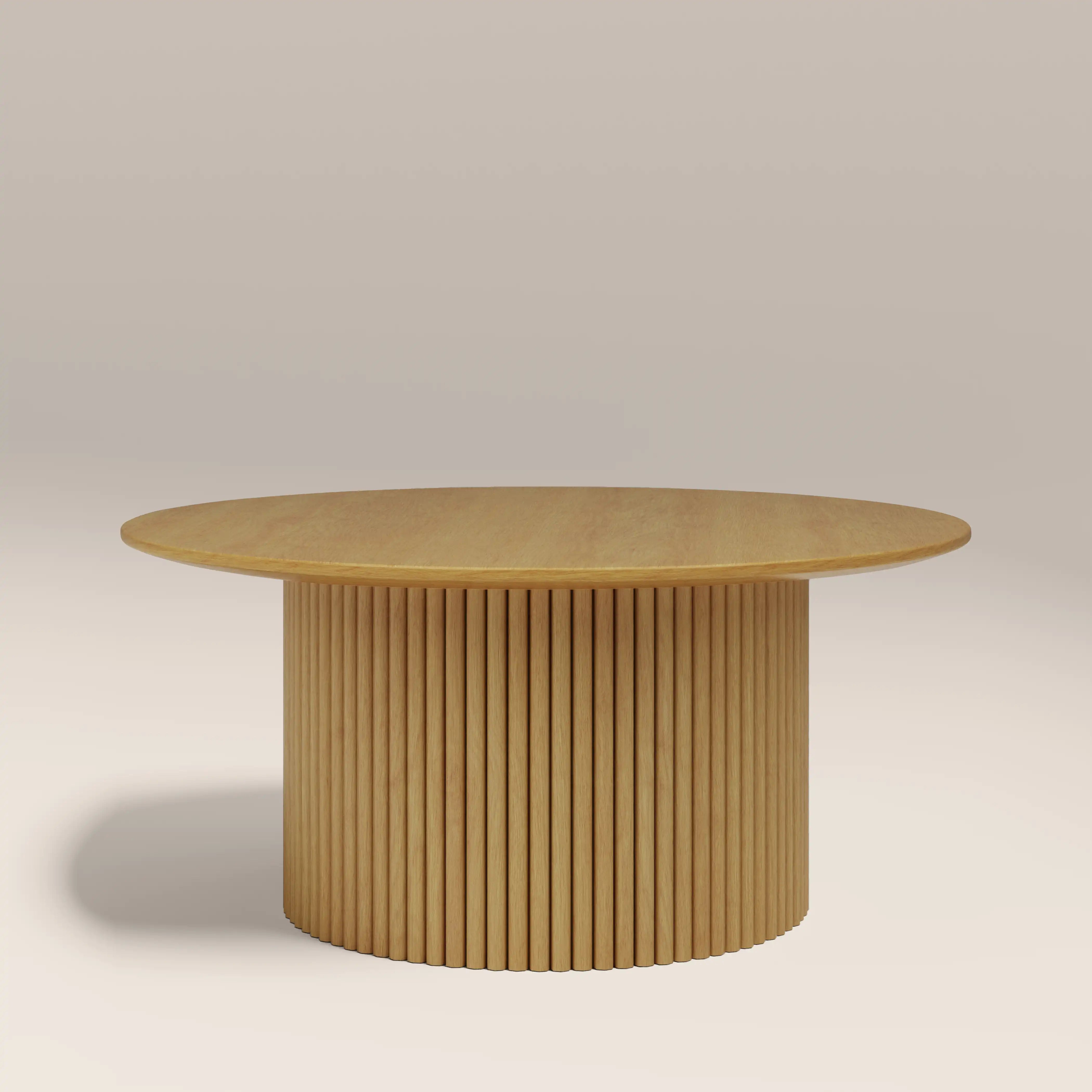 Injecting Japandi style into your living room is simple with the Marcel Coffee Table. The spacious round surface and fluted pedestal base has a light wood effect finish that is durable, long-lasting, and easy to maintain. With a smooth curve, ribbed base detailing, and an even finish, the Marcel Round Coffee Table is effortless.