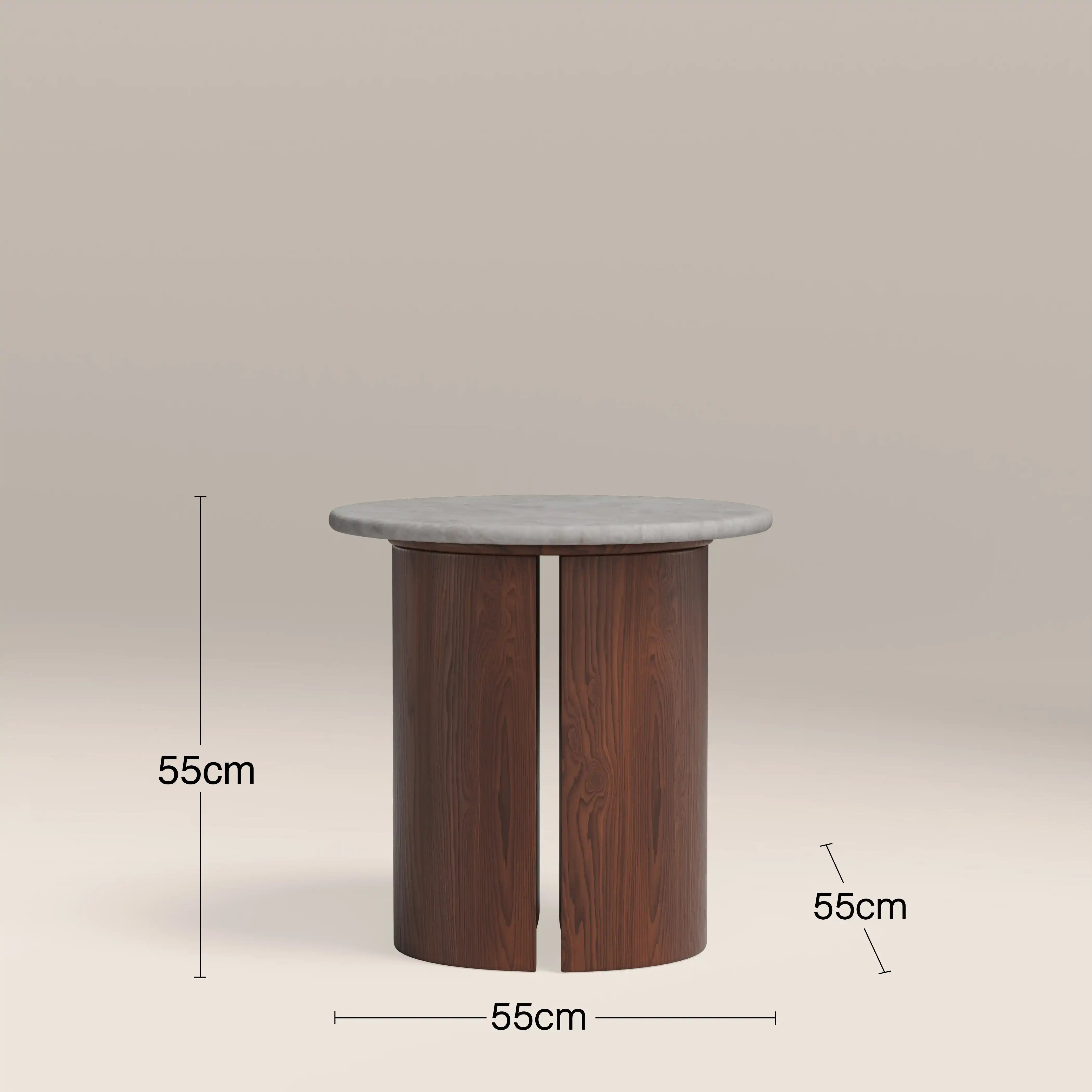 Bold, refined, and built to last - this is design, done properly. The Maui Round Side Table has a generous round top in a refined grey marble effect with a sculptural wood effect base. Capturing the beauty of natural stone, this granite surface is enhanced with a durable resin coating, making this end table highly resistant to spills, stains, and everyday wear - made for modern living without compromising on style.