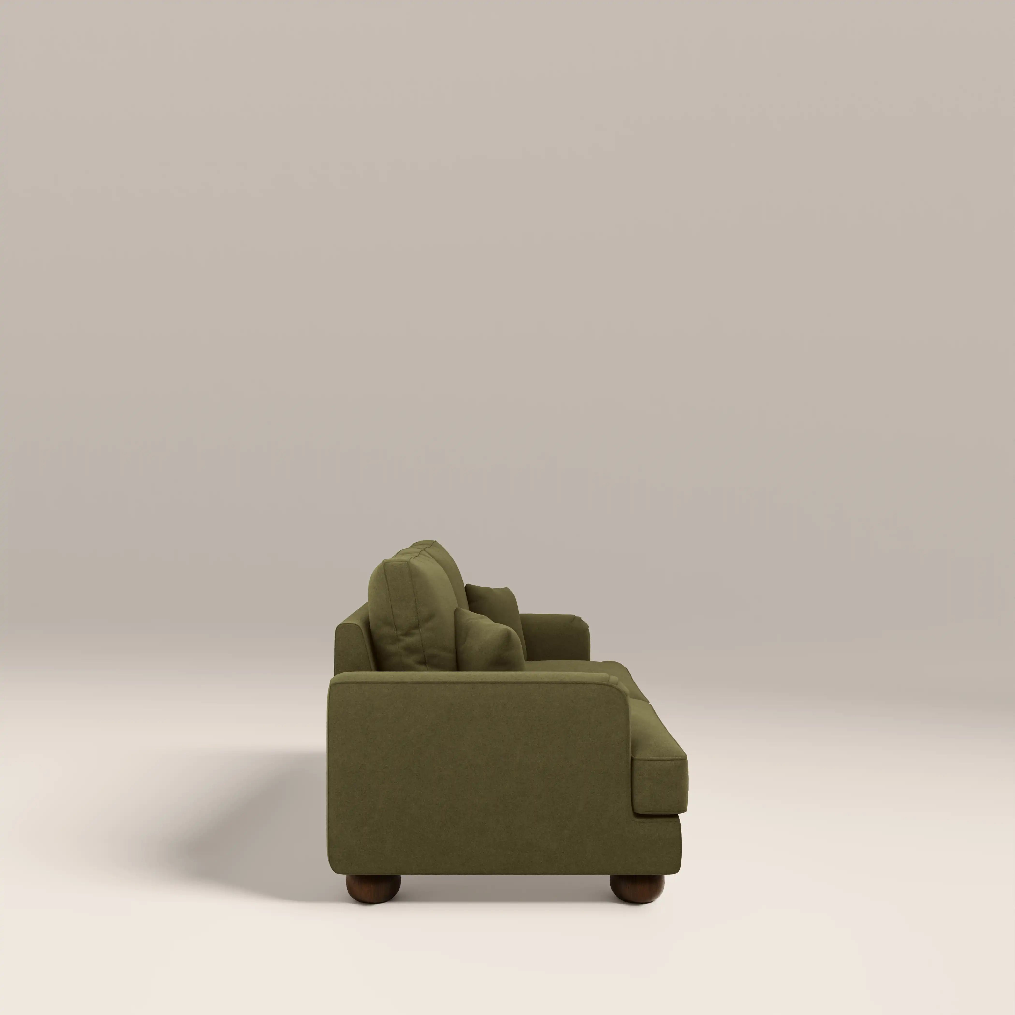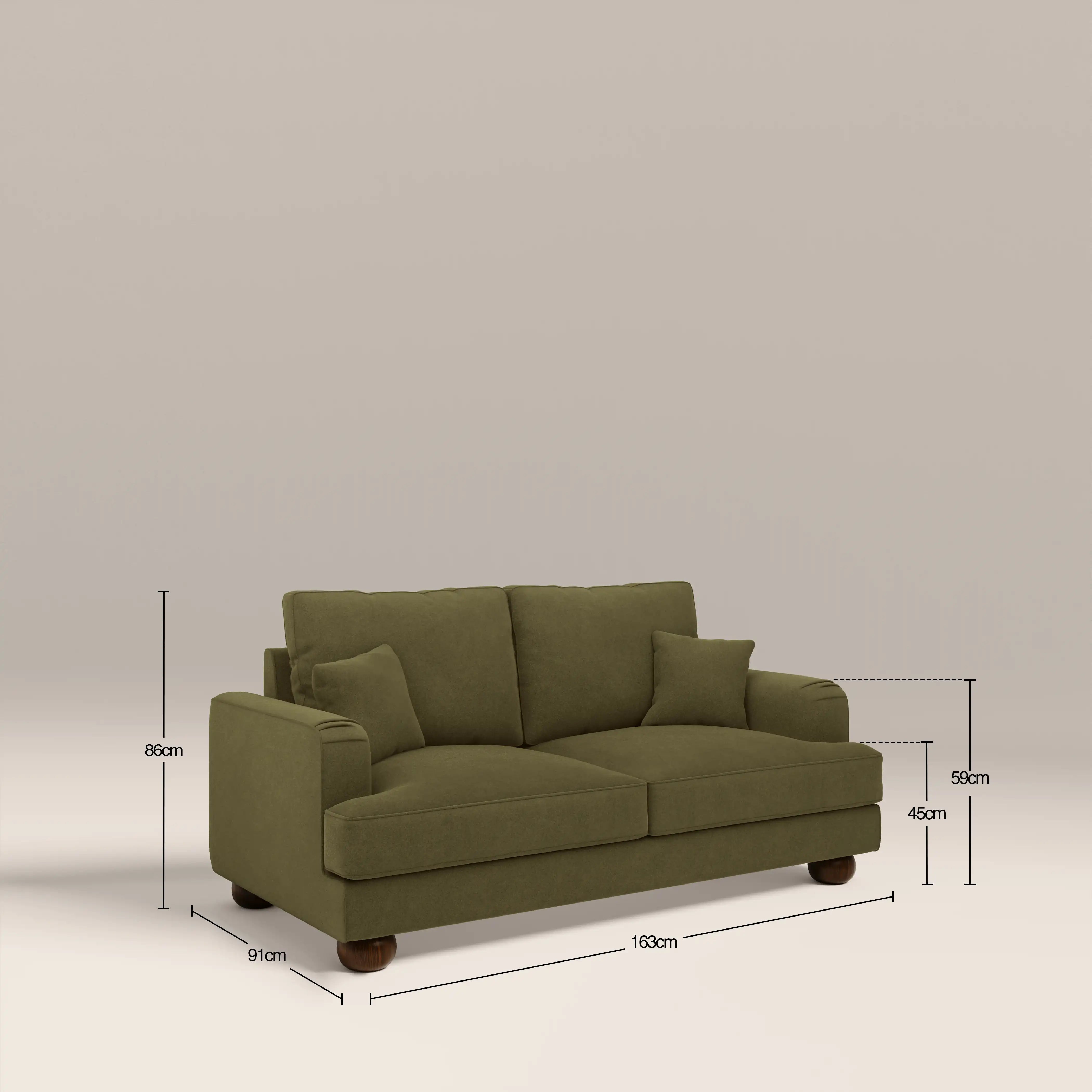 Designed for the style-savvy, the Nola 2 Seater Sofa marries contemporary form with classic influence. Upholstered in sustainable mohair-style velvet, this modern green sofa features curved soft lines, deep seat cushions, and a warm, refined silhouette. Its timeless appeal and elevated comfort make it a standout piece for interiors that value both aesthetics and sustainability. A 2 seat velvet sofa that speaks to modern living with enduring style.