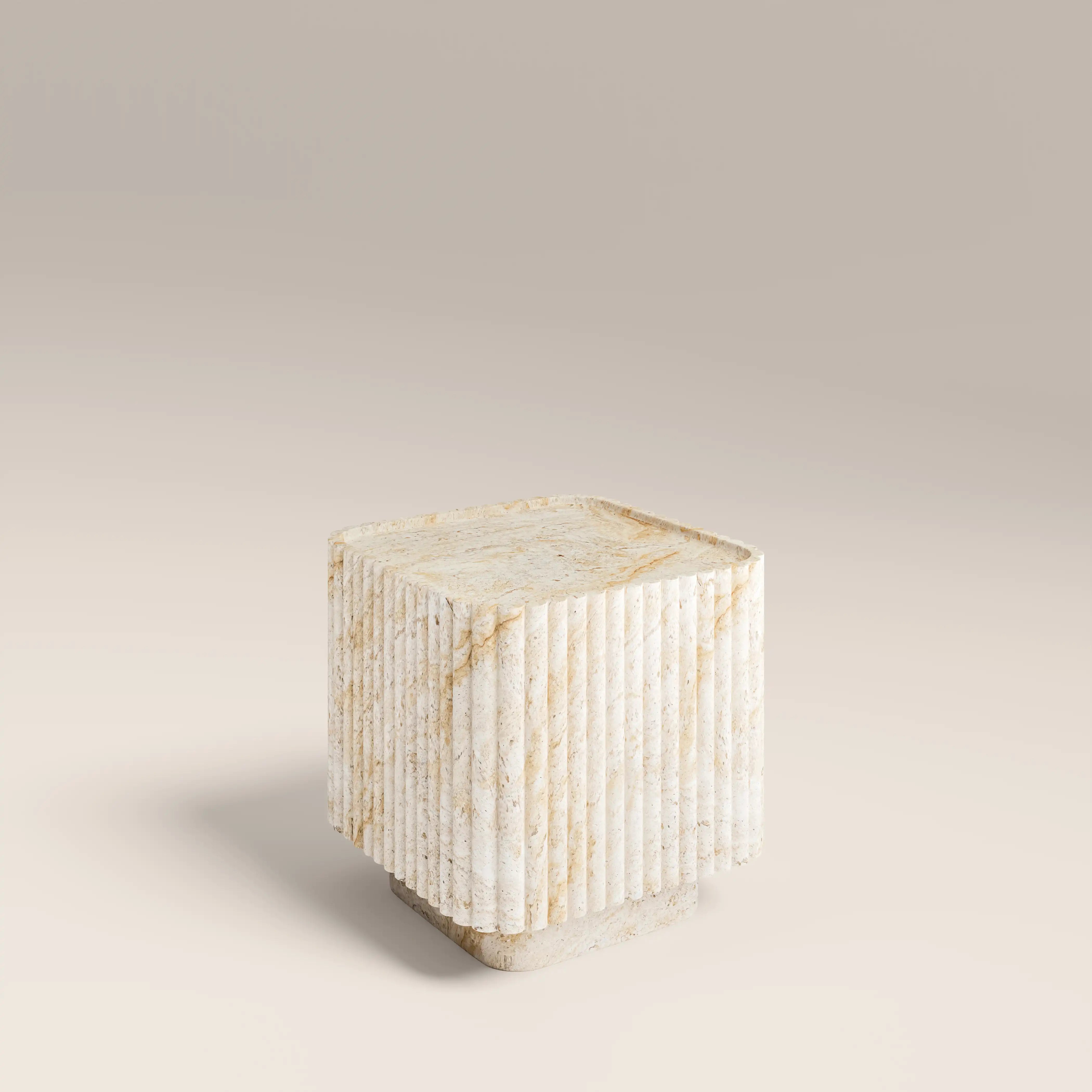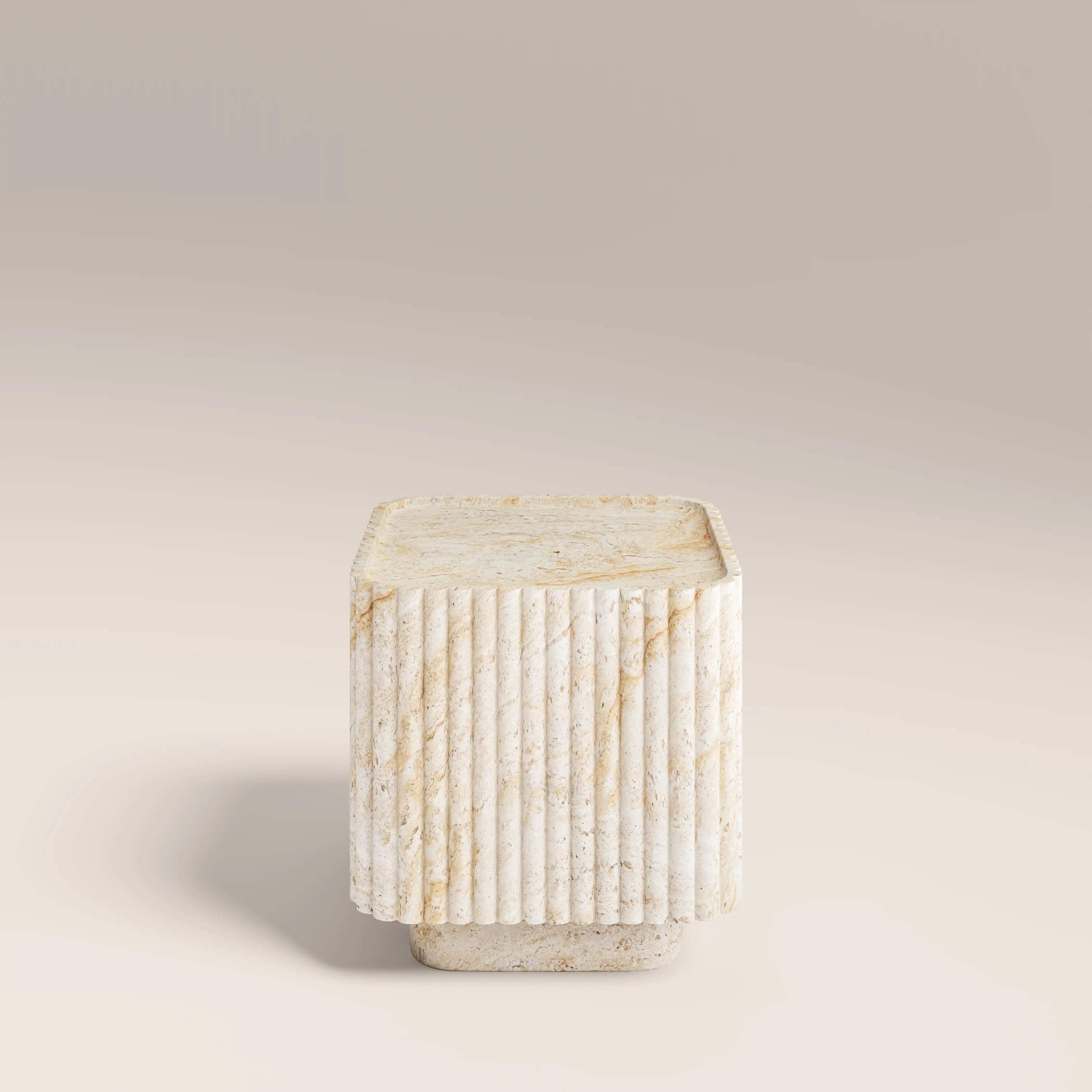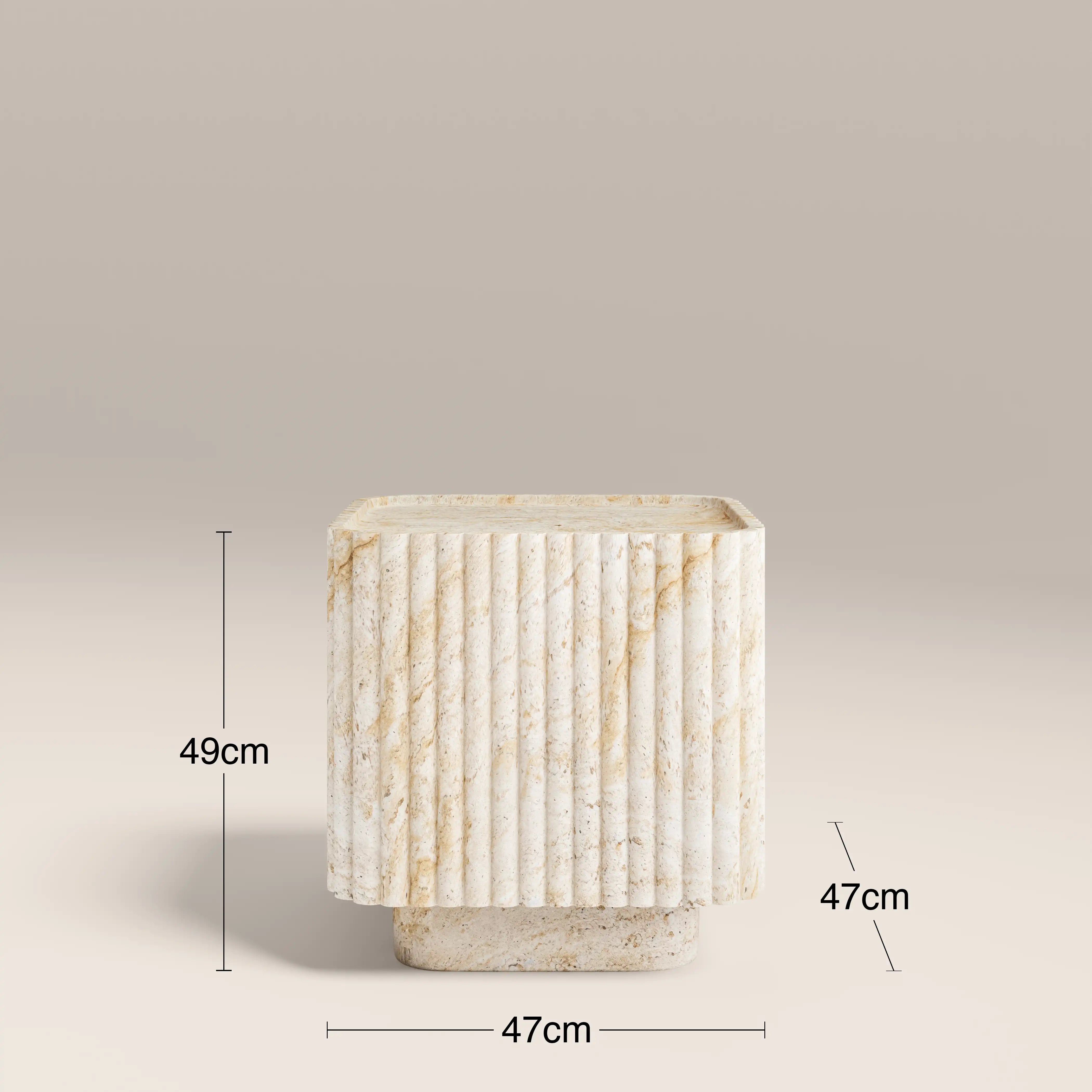 The Osmond Side Table is the ideal contemporary statement piece to accompany your favourite sofa spot. With a smooth, square design, its neutral tones complement modern minimalist and Scandi interiors, while the slightly raised edge adds style and prevents spills. Durable and effortlessly elegant, it arrives fully assembled, giving the look and feel of real travertine without the weight or upkeep—simply place and admire.