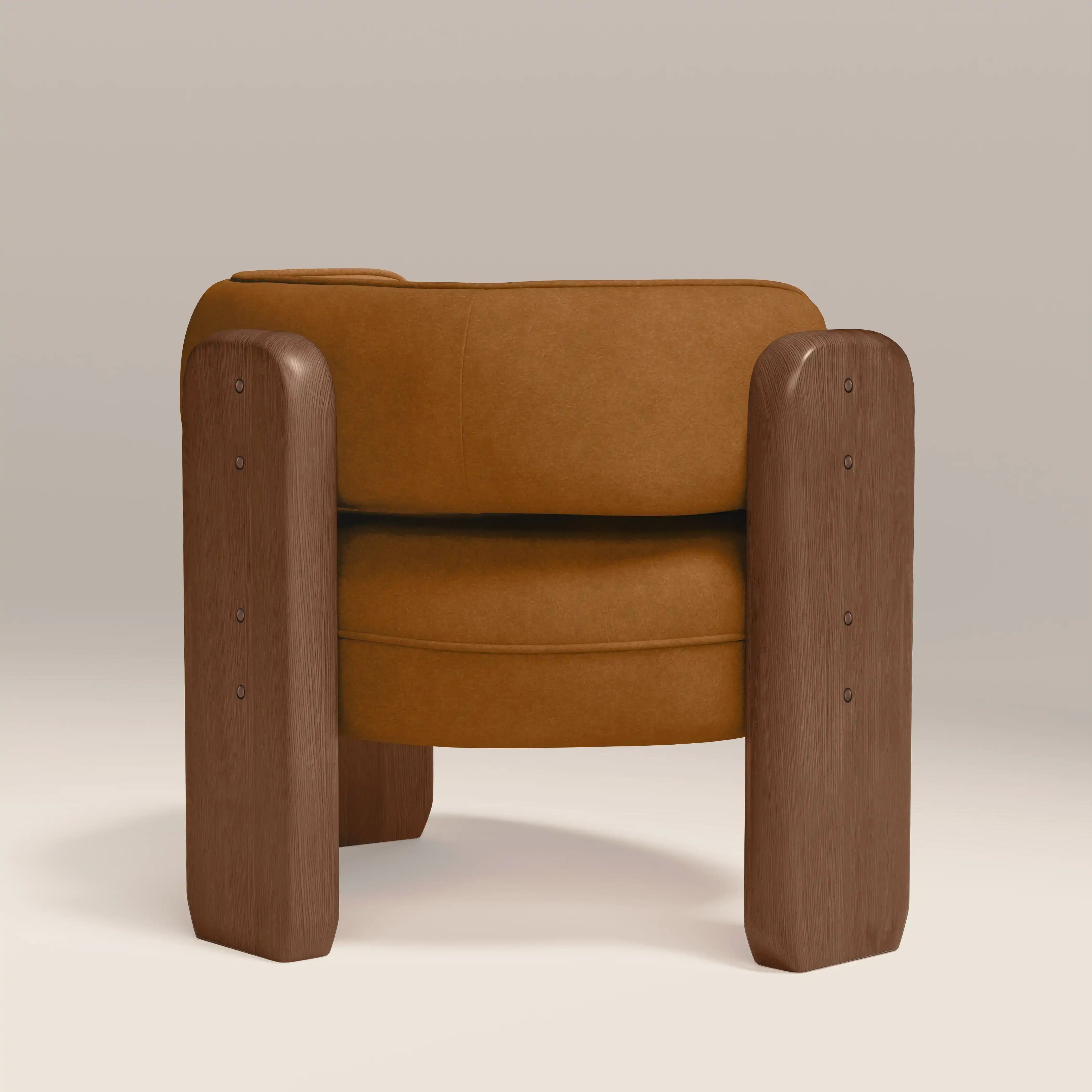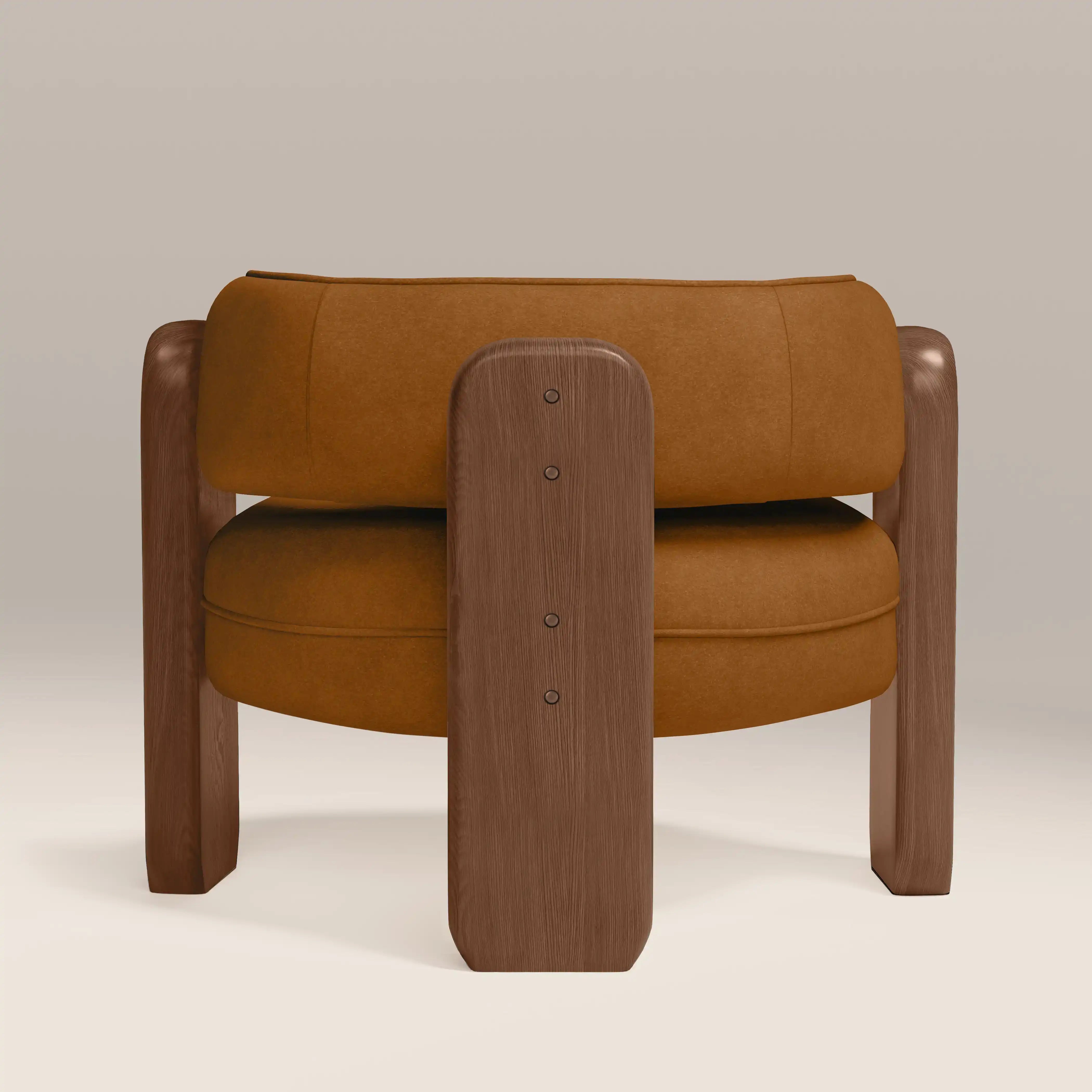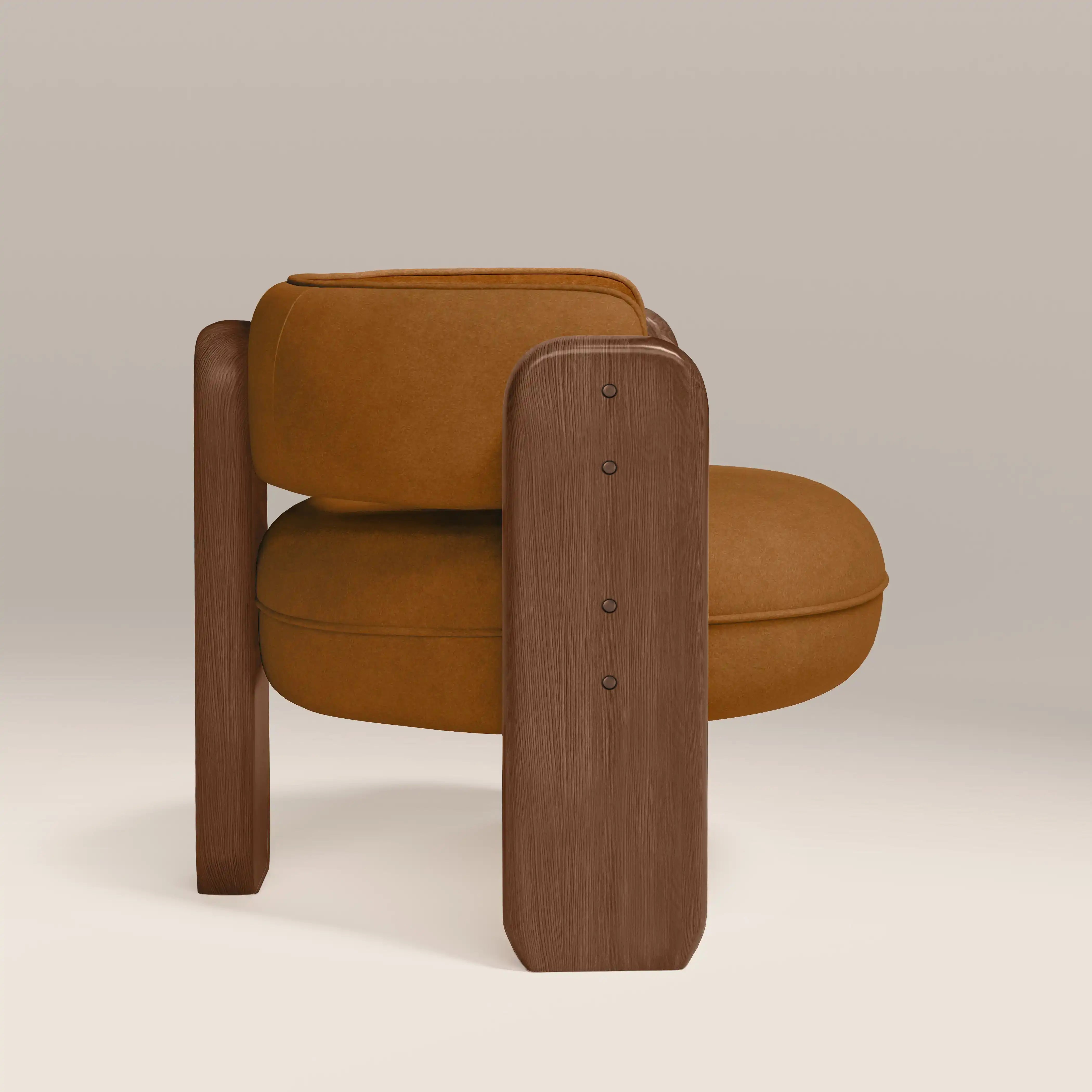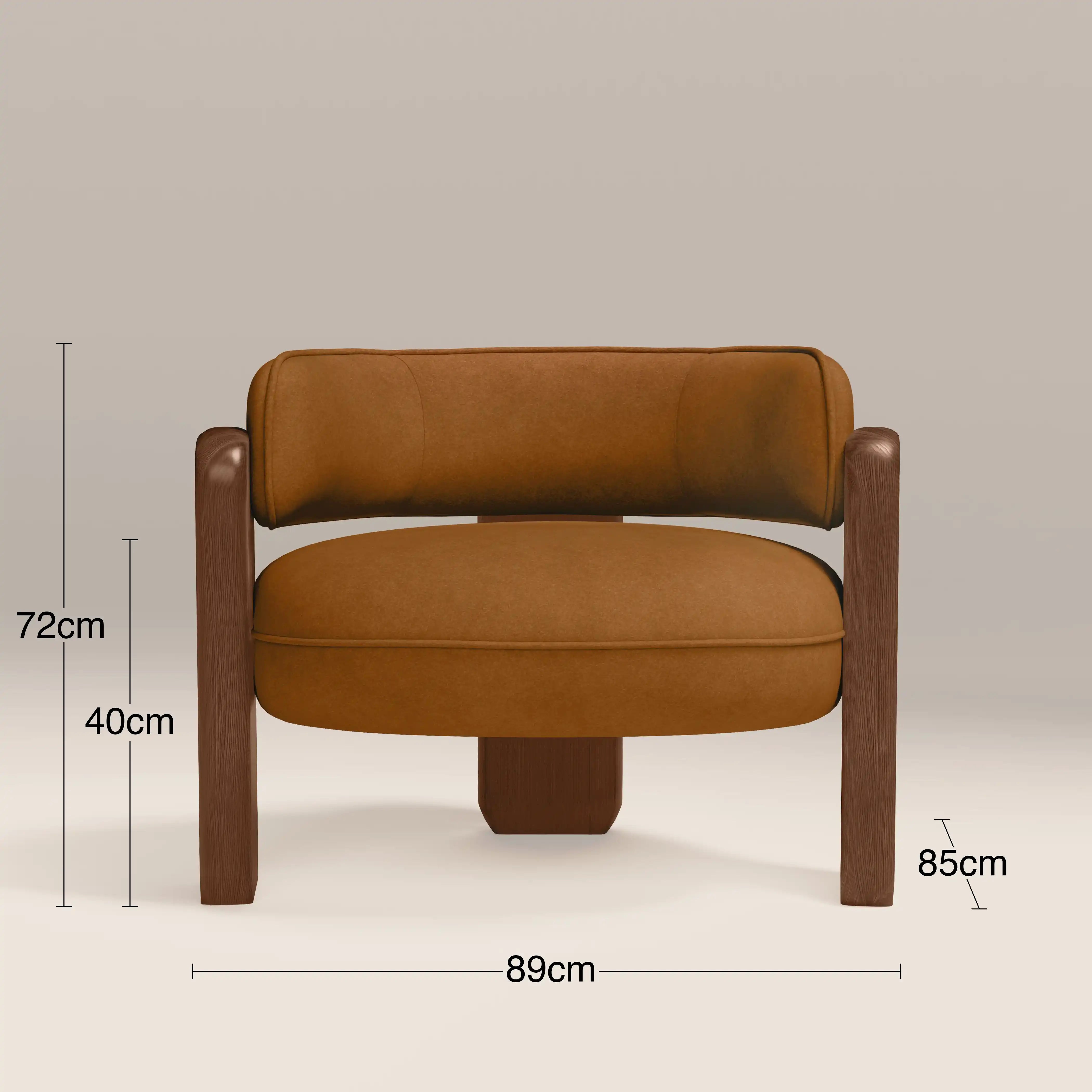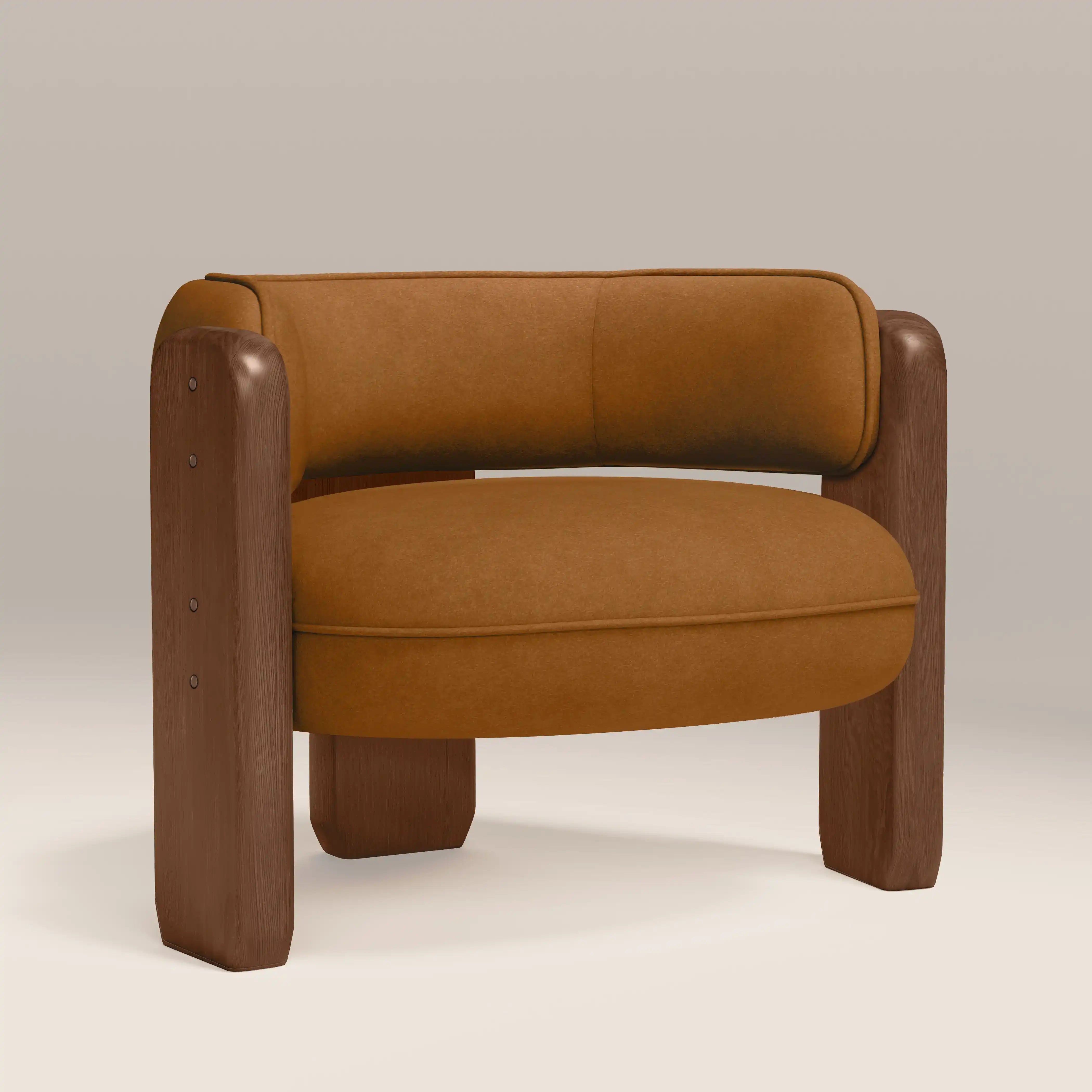 A statement piece will reinvigorate your living room. The Porter Velvet Armchair has retro styling, organic curves, and relaxed lines, whilst the contrast between the rich wood and caramel brown mohair style velvet creates a natural organic feel. The softness of the velvet adds a relaxing element to this 70s Revival-inspired design.