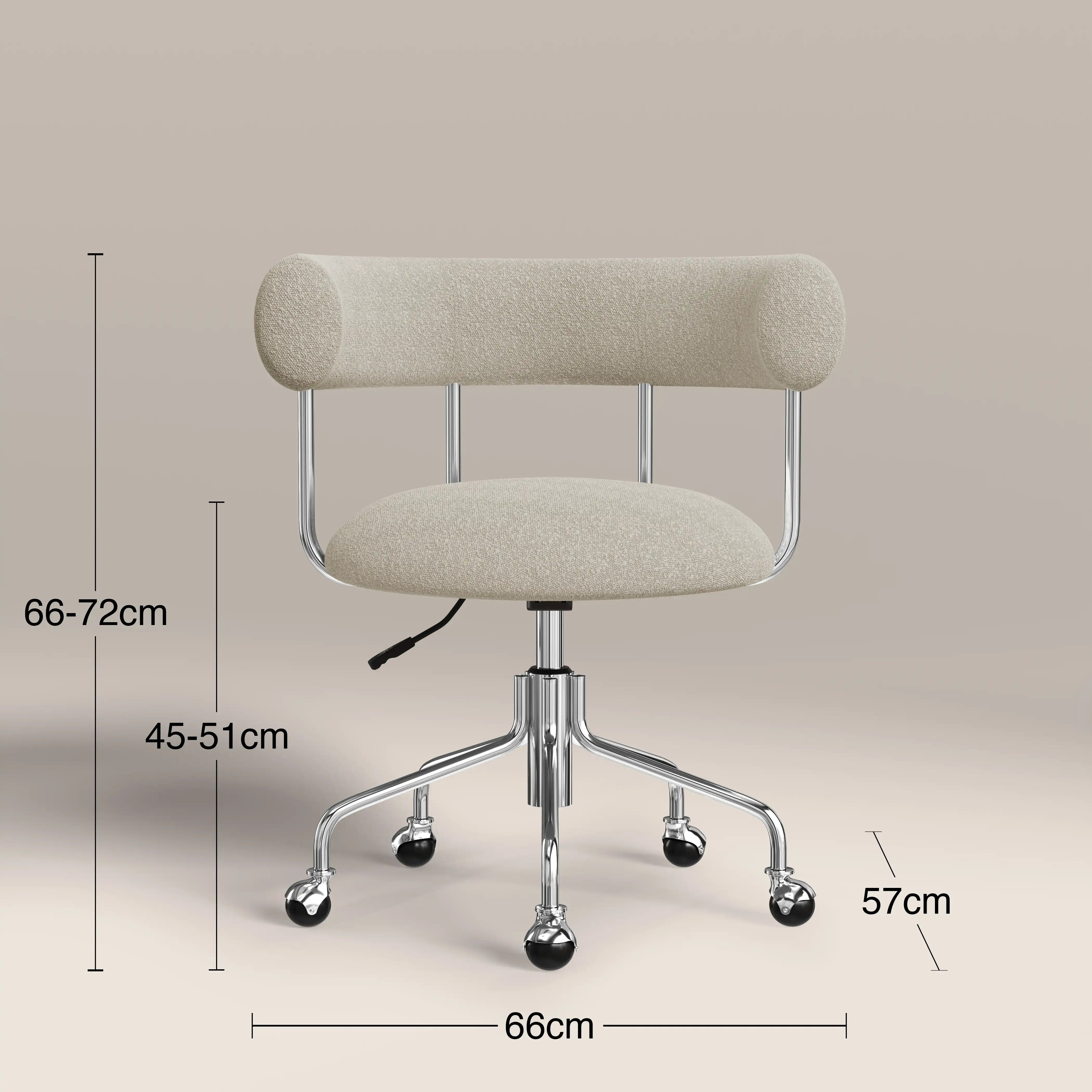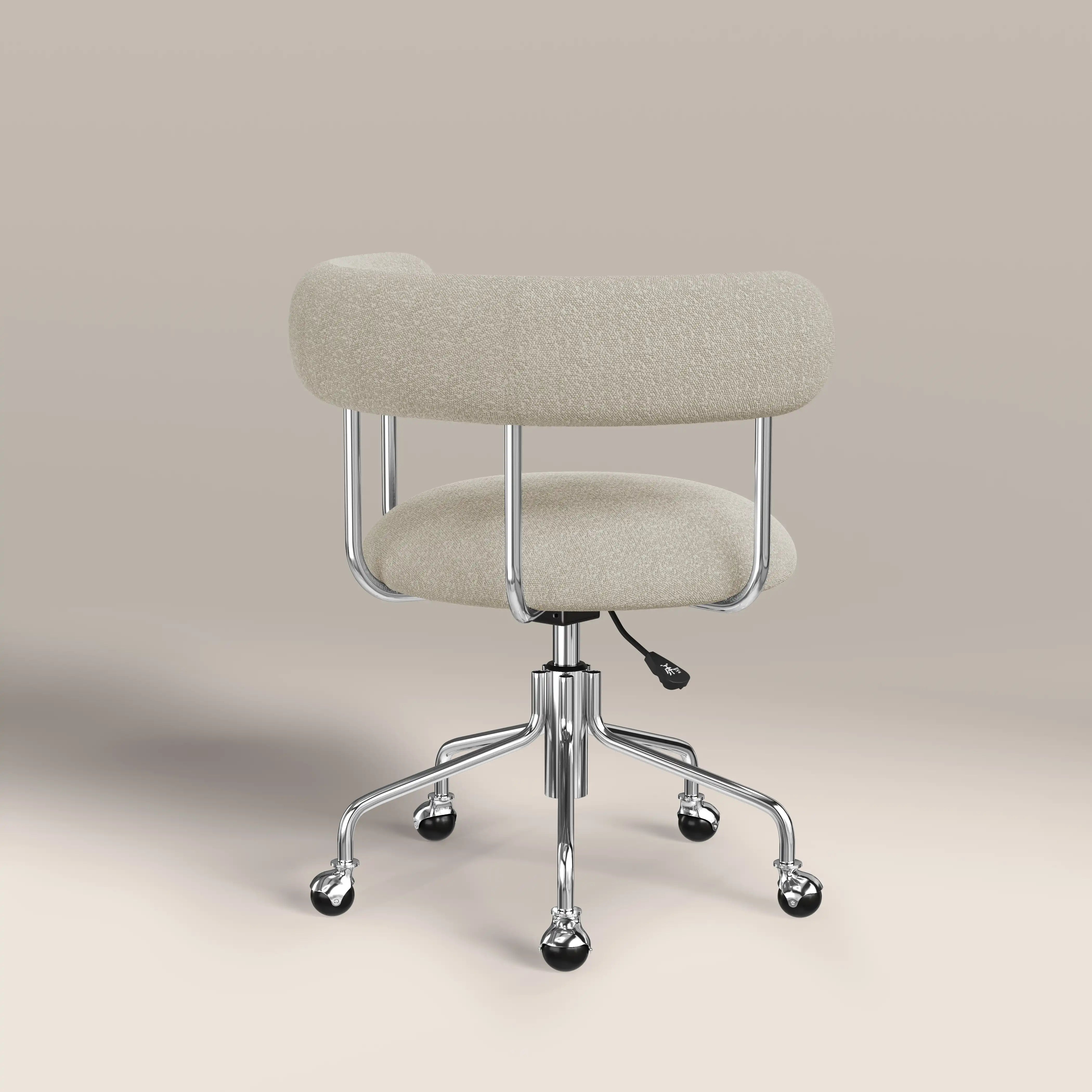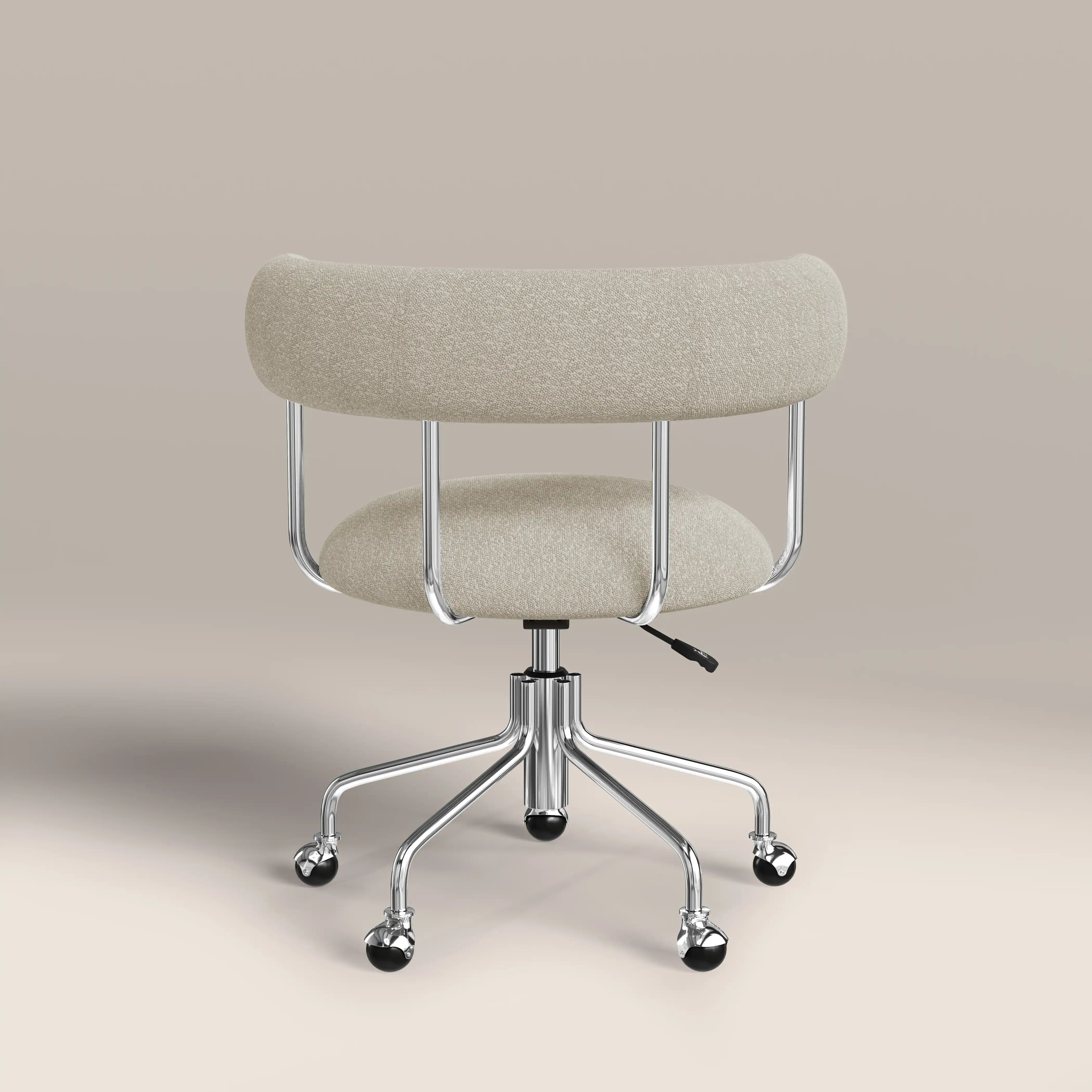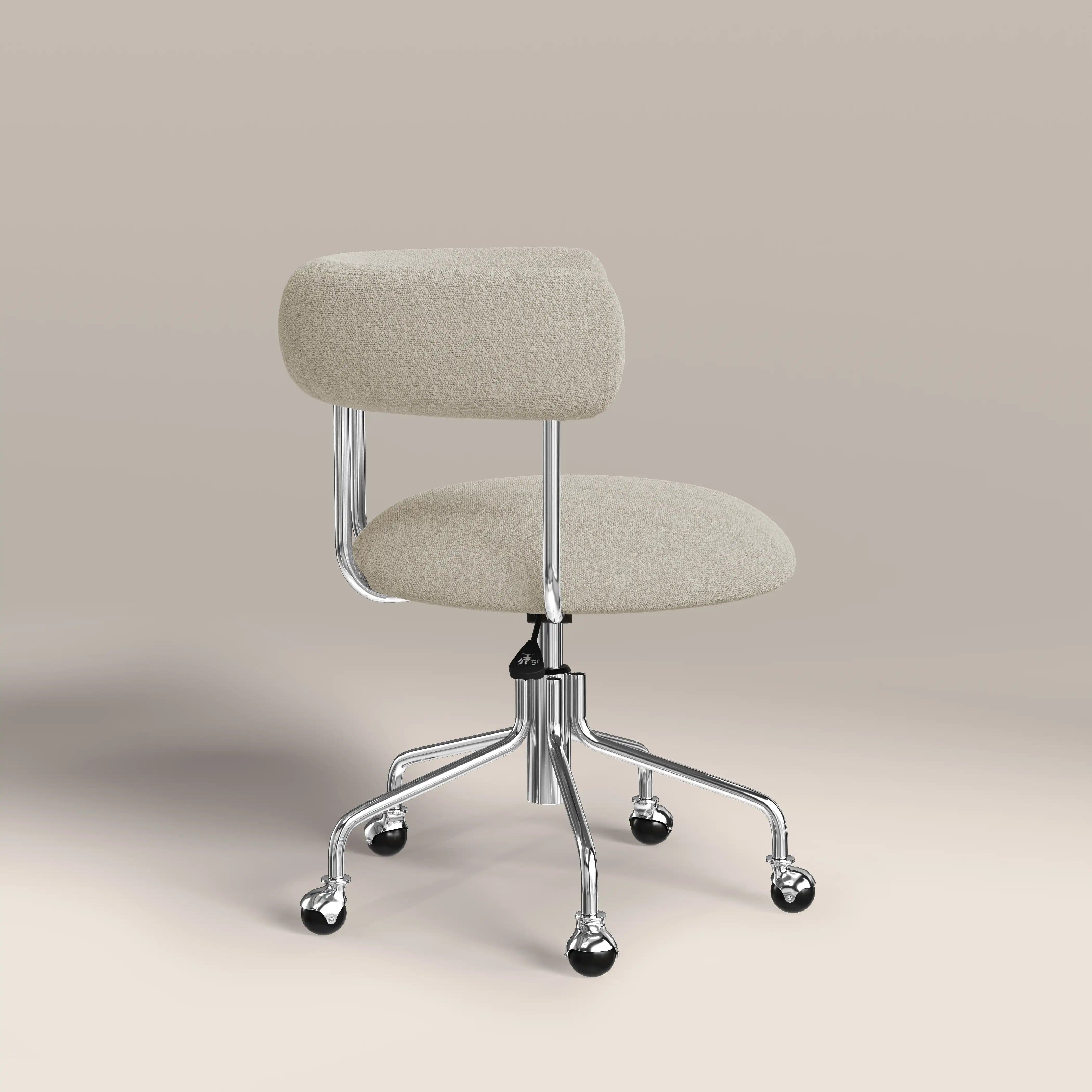 Say hello to your new favourite office chair! With its soft boucle in our signature speckled stone and sleek, curved design, the Rae Office Chair is as chic as it is functional. The chrome frame and smooth-rolling casters bring a touch of cool while making it super easy to move around. Plus, the adjustable height means it'll fit just right at your desk. Whether it's for your home office or a chic workspace, this chair is the perfect mix of comfort and modern.