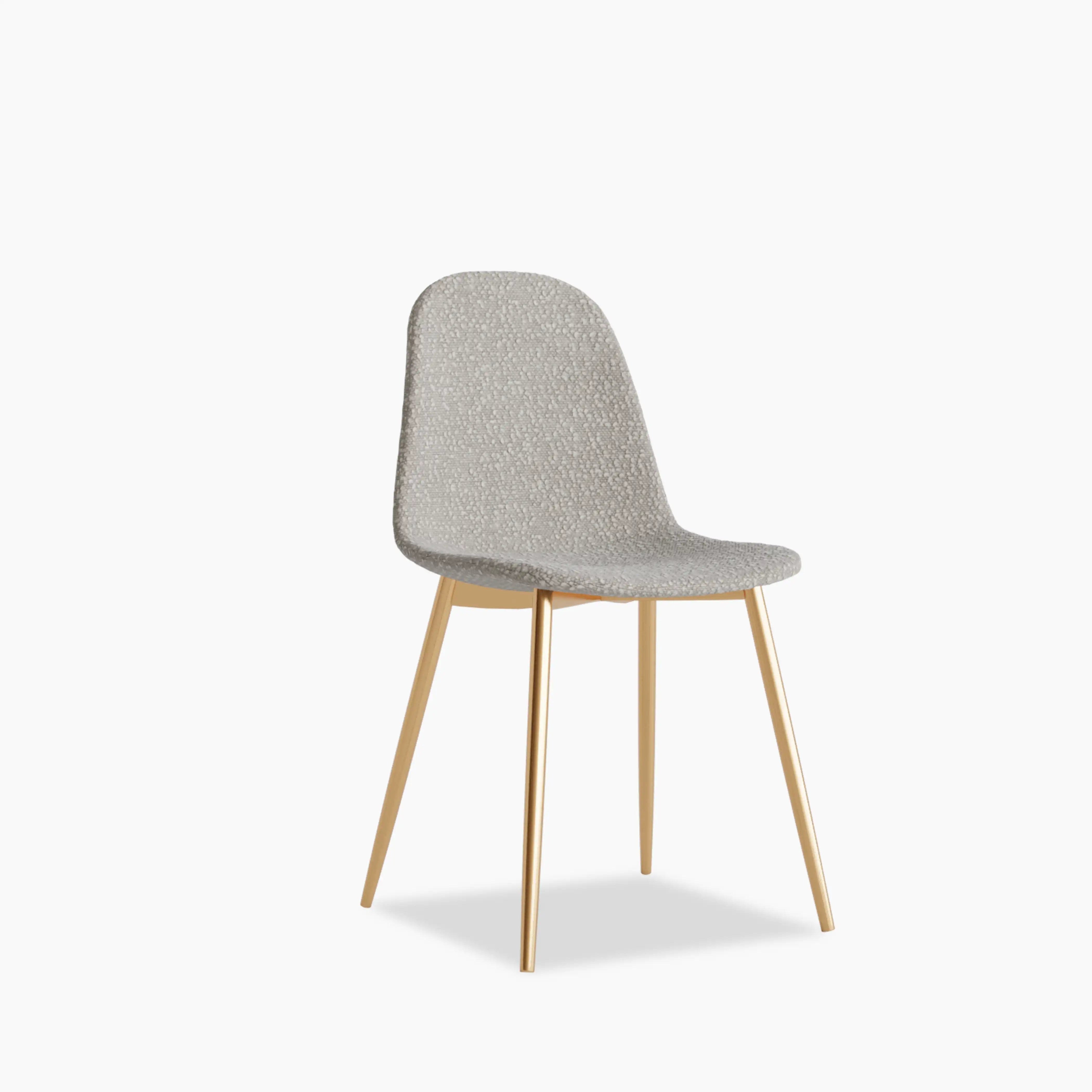 The Rayner Dining Chair in speckled stone boucle offers a smooth modernist approach to contemporary dining. The smooth, curved back hugs your body for a comfortable sit, with metal tapered legs for extra support.