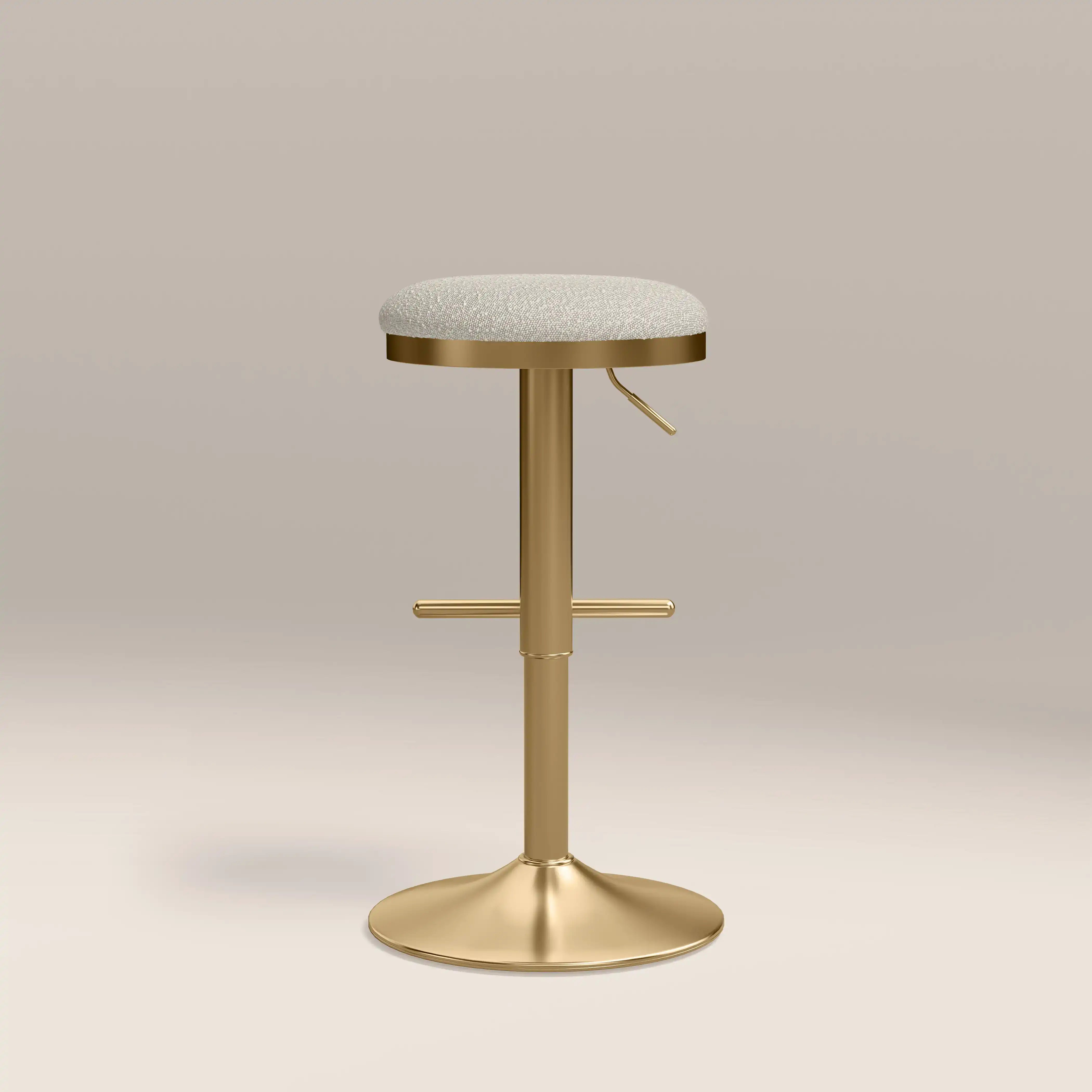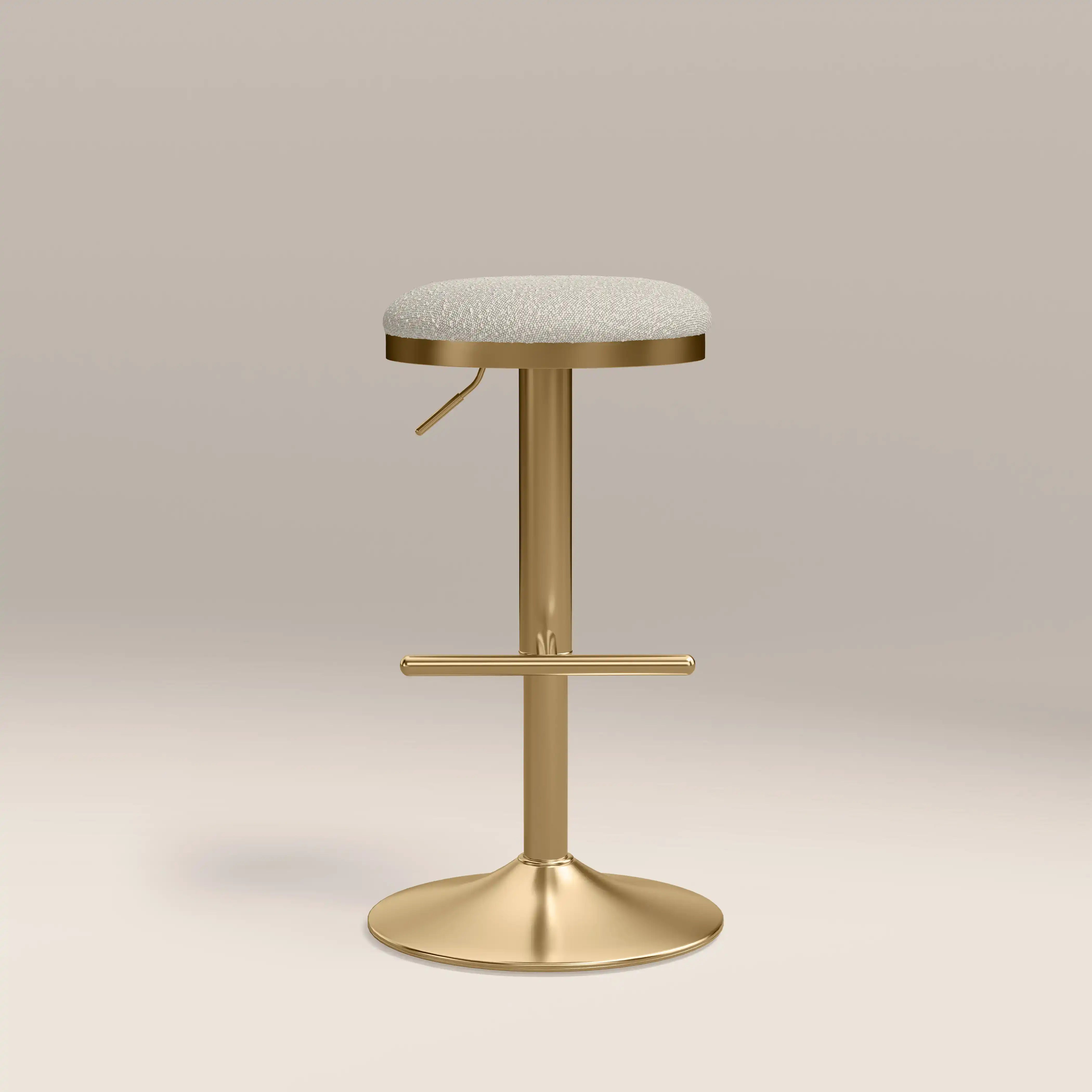 Sitting in style is easy with the Romy Boucle Stool. Its beautiful brass finish and sustainable boucle cushion offers a modern yet Art Deco chic look to kitchens. With easy height-adjustment and full 360 degree swivel function, the Romy Speckled Stone Stool with built-in footrest combines comfort and elegant style.